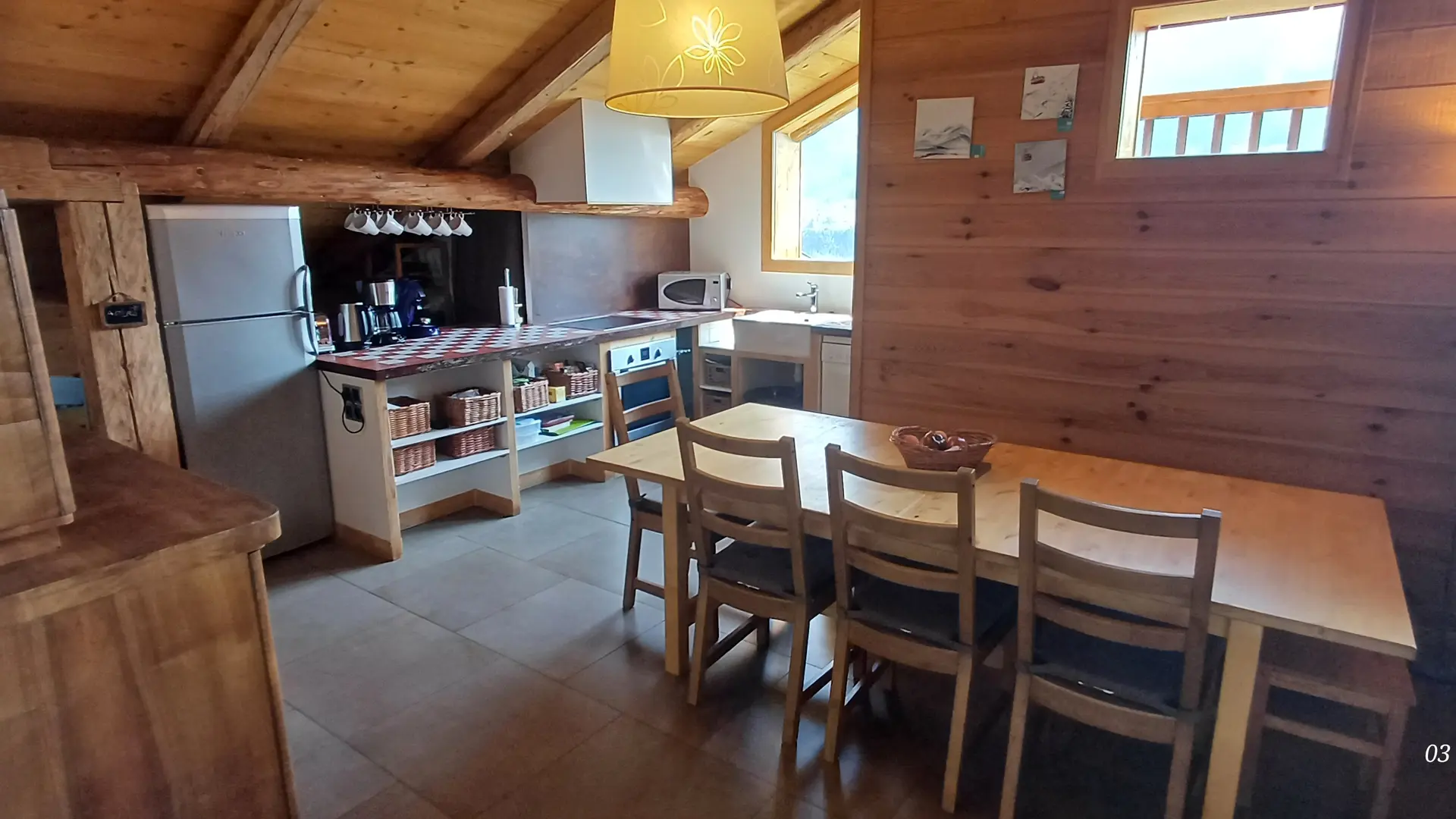 Coin repas , Cuisine entièrement équipée : réfrigérateur, compartiment congélateur, plaque vitro céramique , four pyrolyse , micro-ondes , lave vaisselle, bouilloire électrique, cafetières Senseo et électrique.