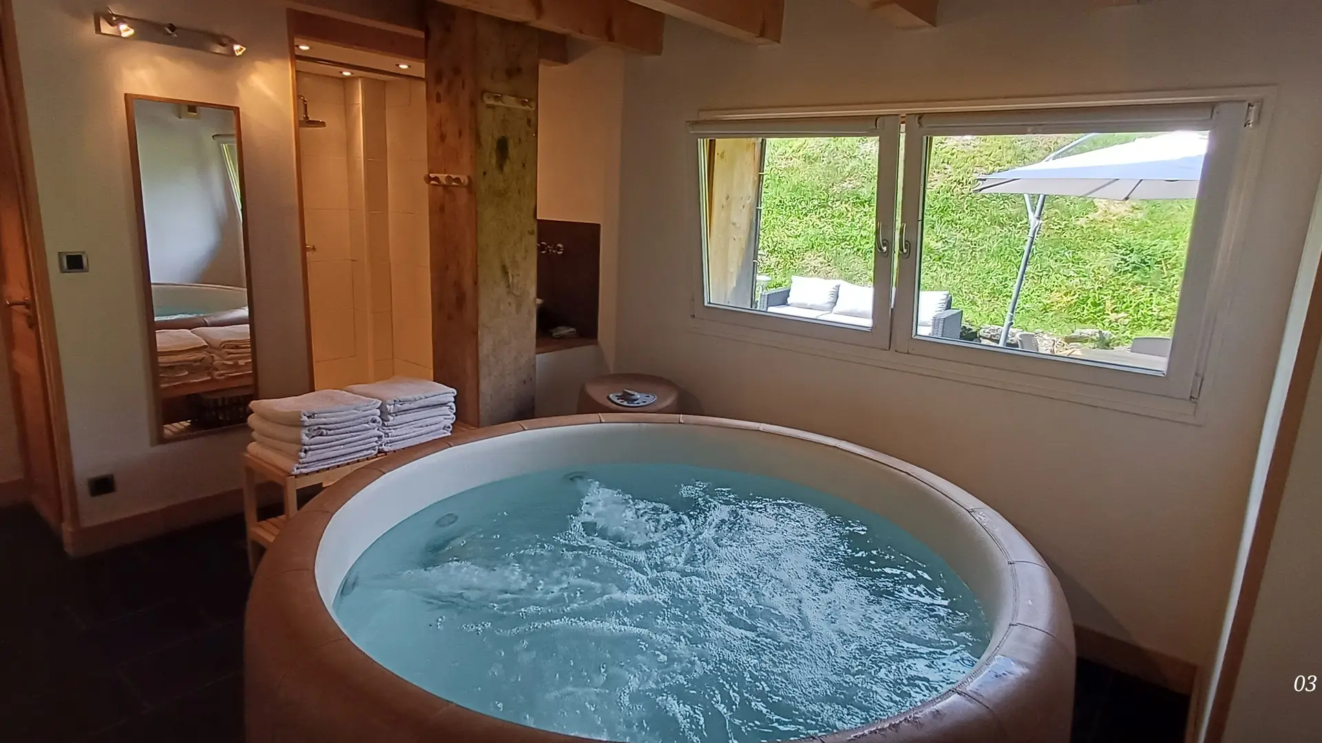 Pièce d’eau et SPA , douche à l’italienne et WC .