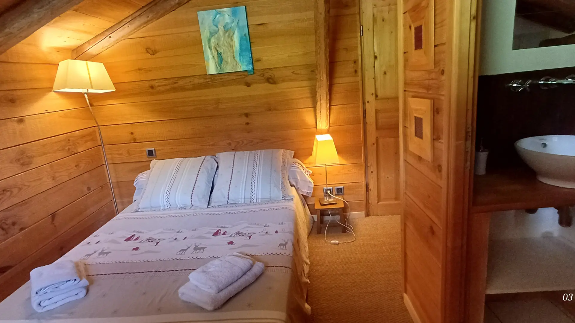 Chambre n°3 : 1 lit double , salle de bain équipée d’une baignoire , WC .