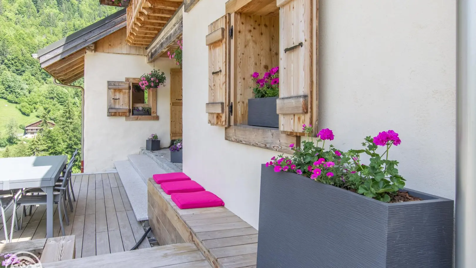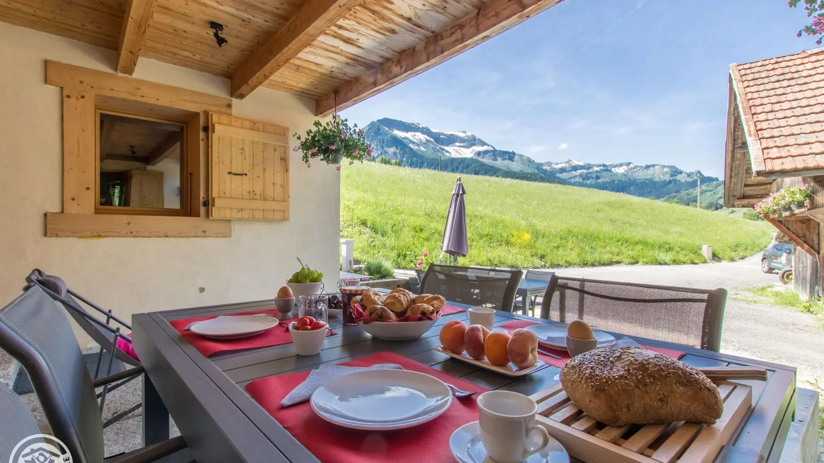 Le gîte dispose d'une belle terrasse exposée Ouest dont une partie est abritée : double mobilier de jardin, coin lecture, transat, barbecue. Centre village du Reposoir à 800m : épicerie, dépôt de pain, restaurant. Tous commerces à Scionzier à 9km (15 minutes en voiture).
