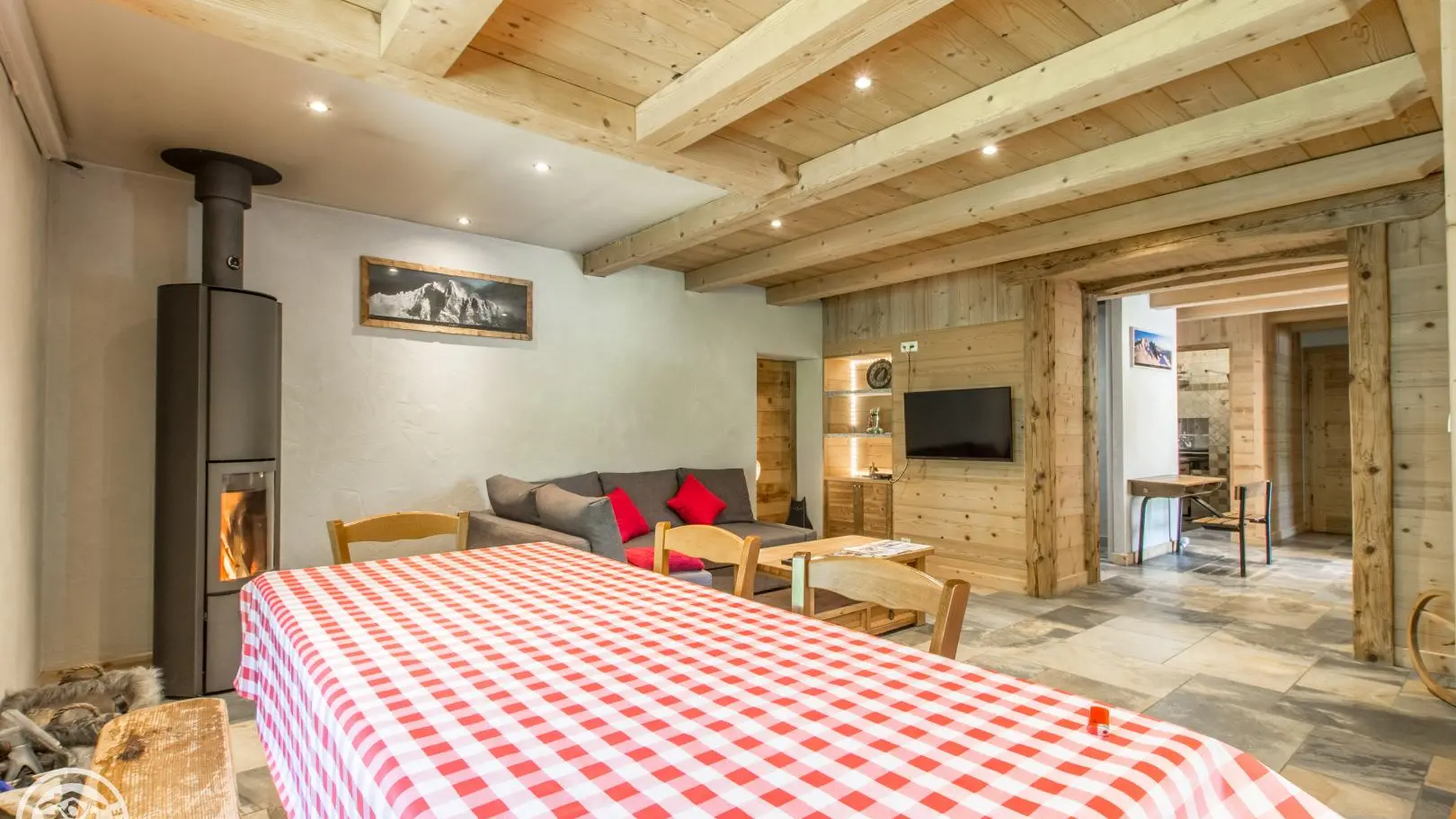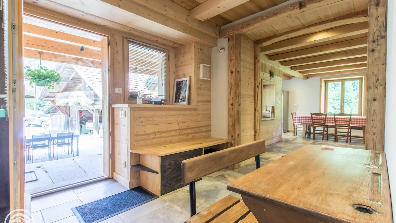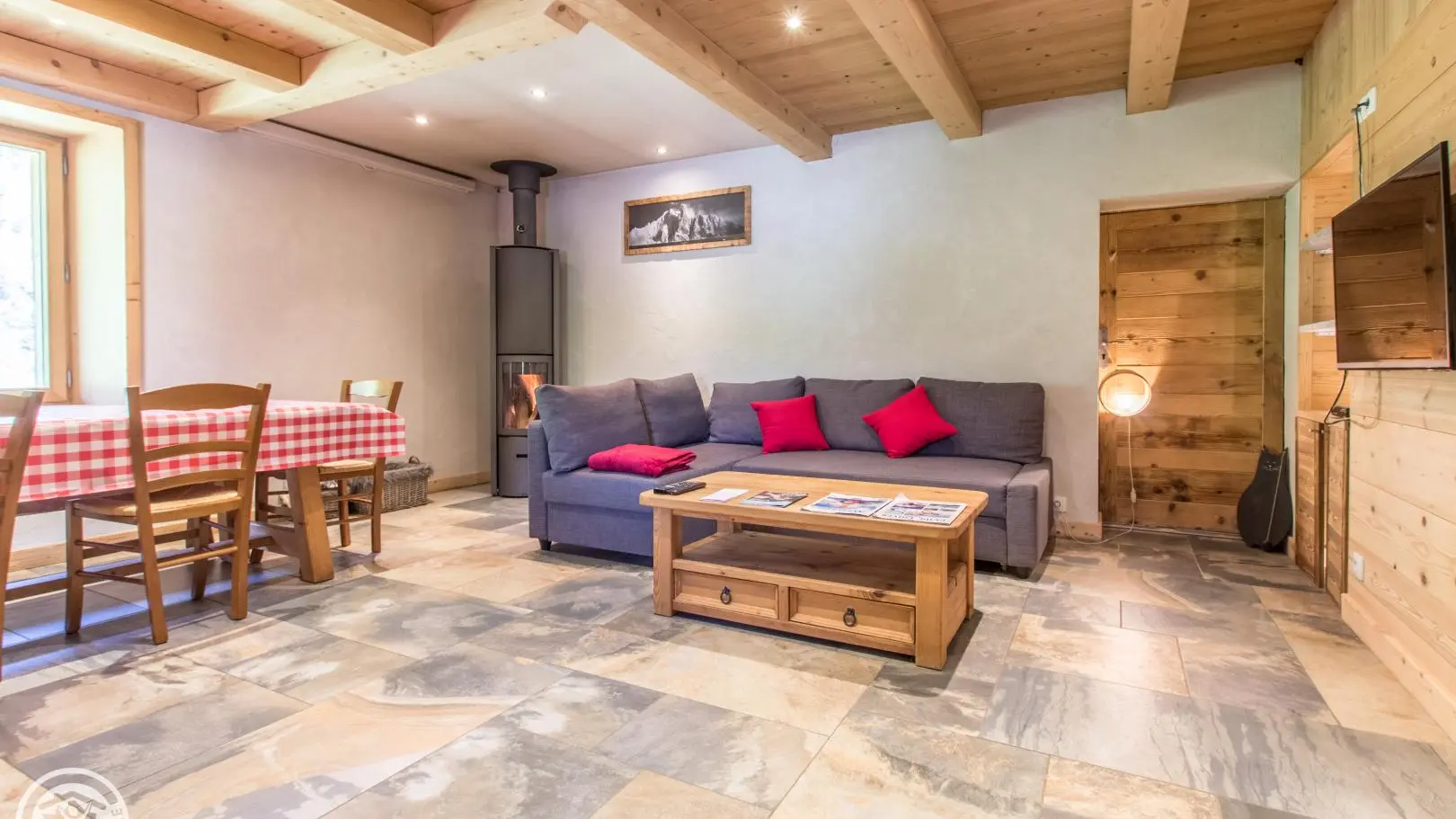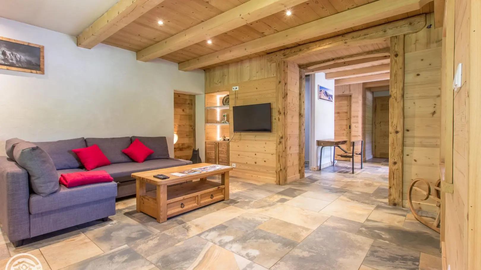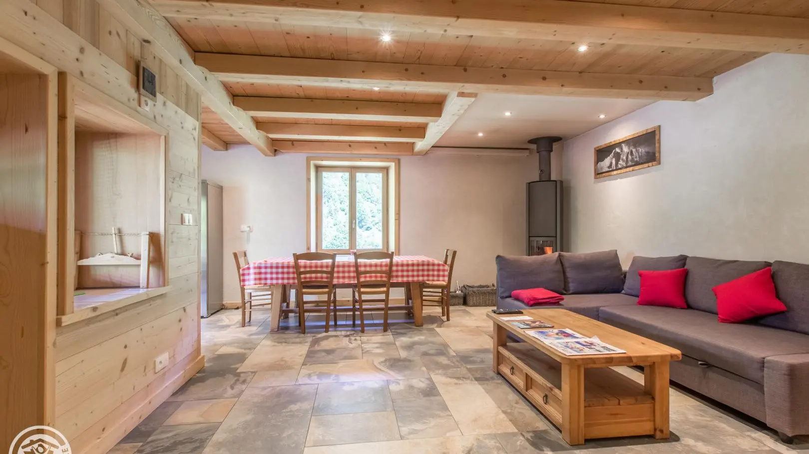 Gîte de 80m2 aménagé au rez-de-chaussée d'une ancienne ferme savoyarde rénovée dans un très bel esprit chalet.