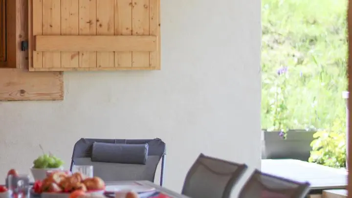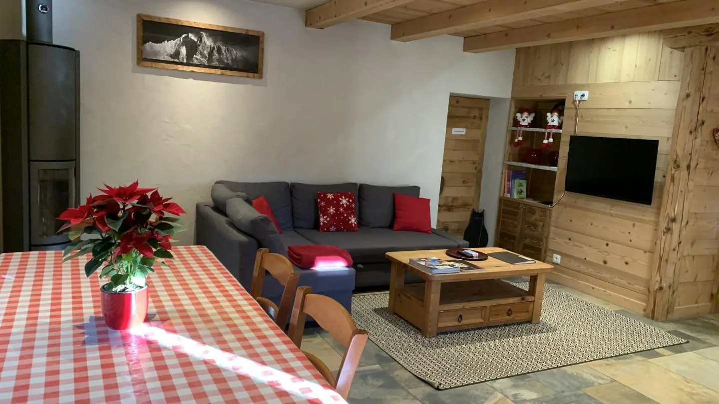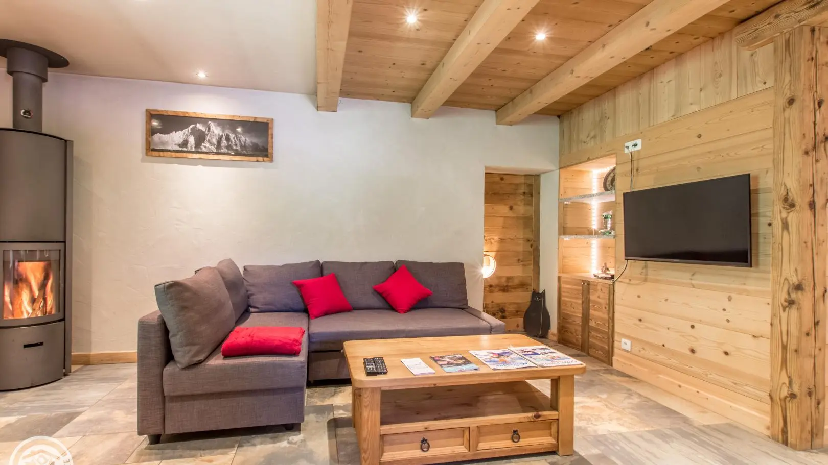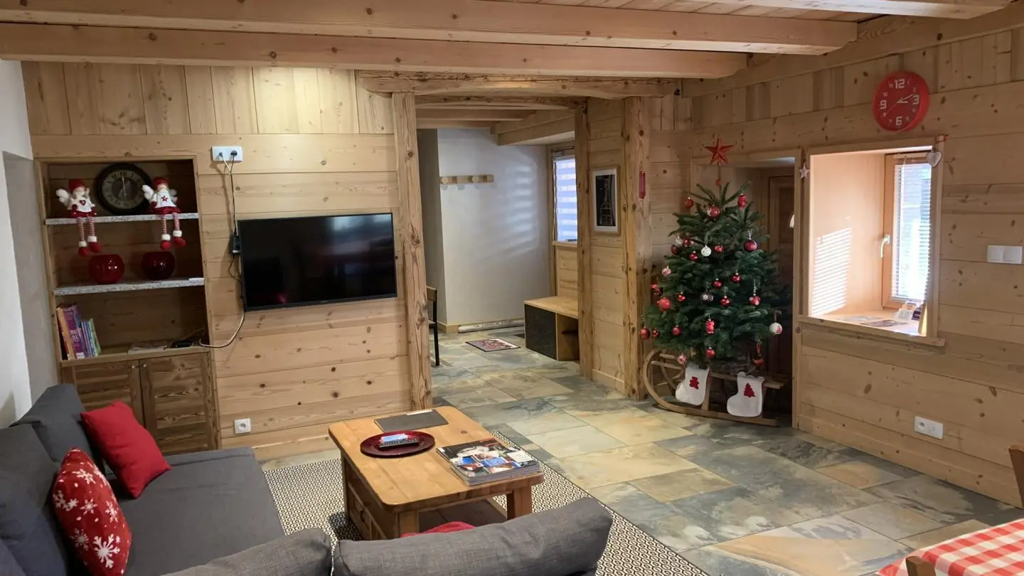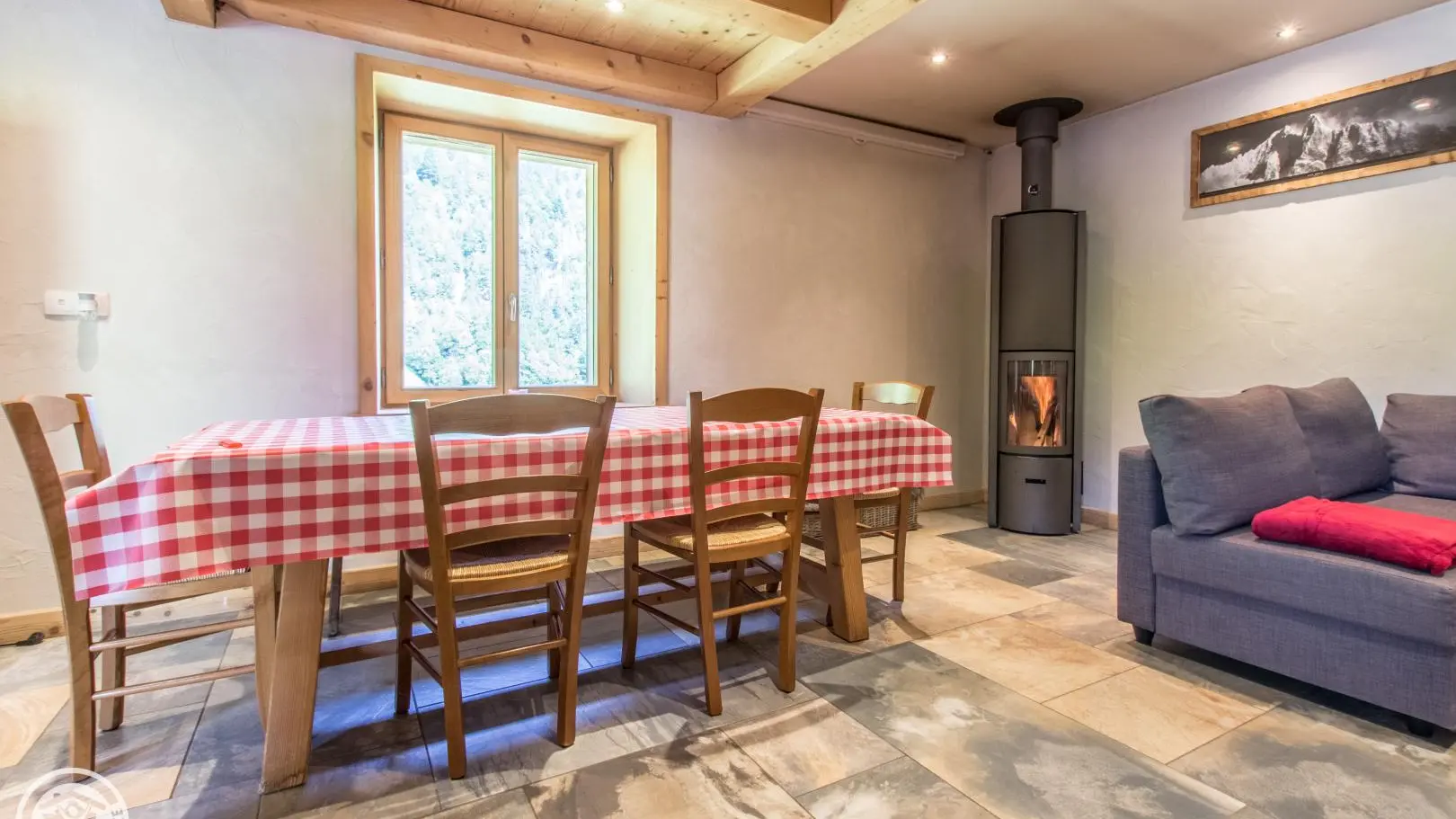Gîte de 80m2 aménagé au rez-de-chaussée d'une ancienne ferme savoyarde rénovée dans un très bel esprit chalet.