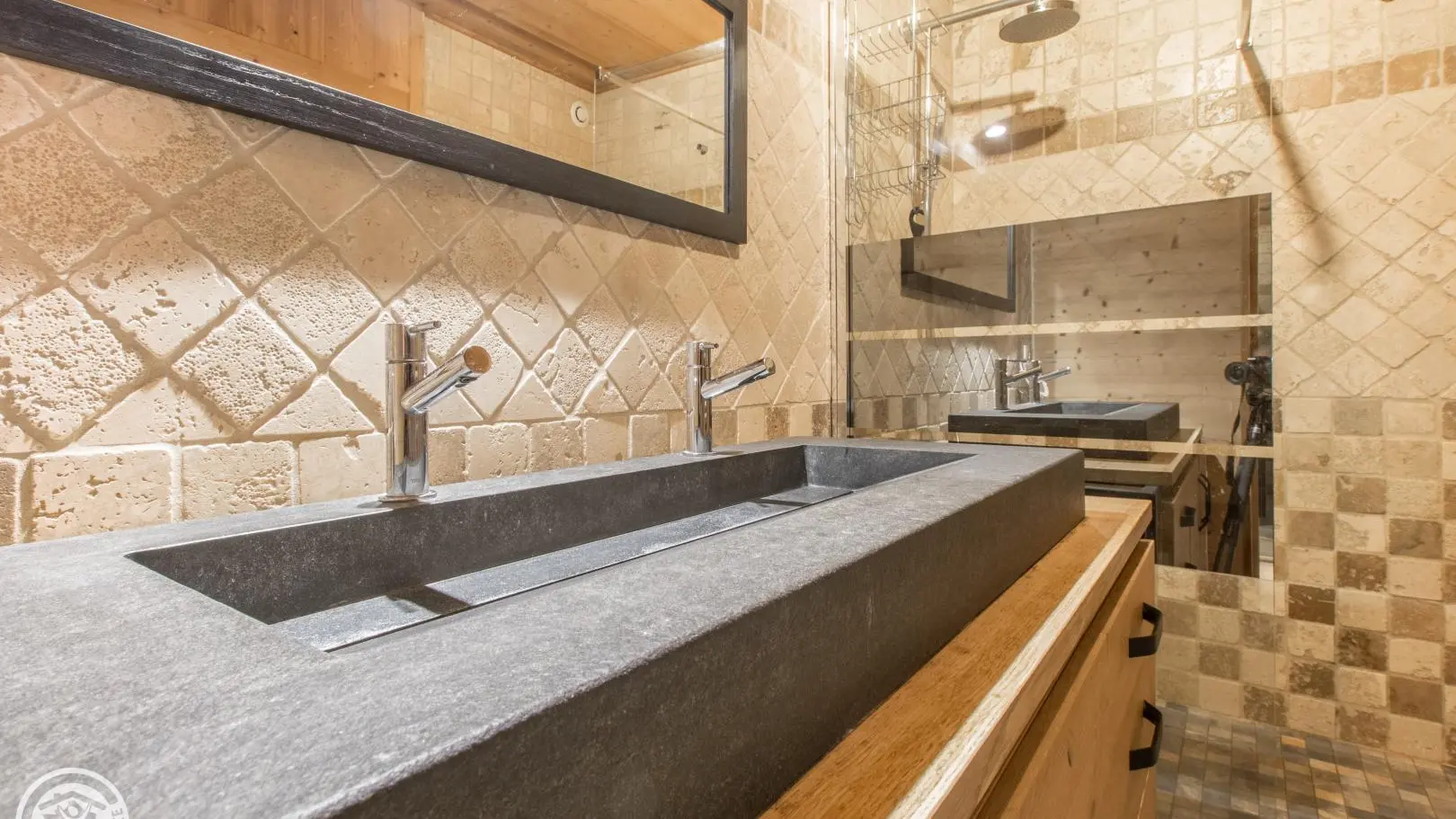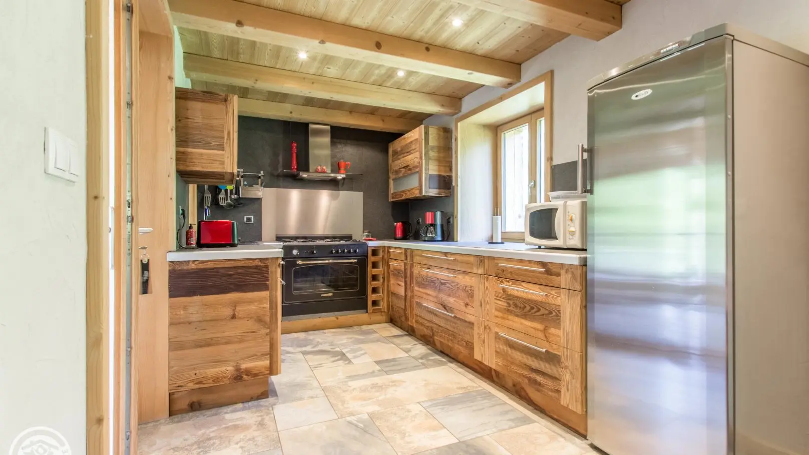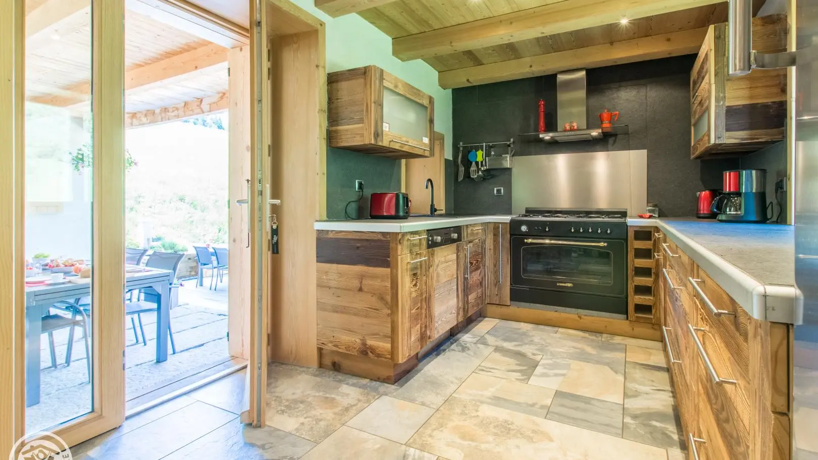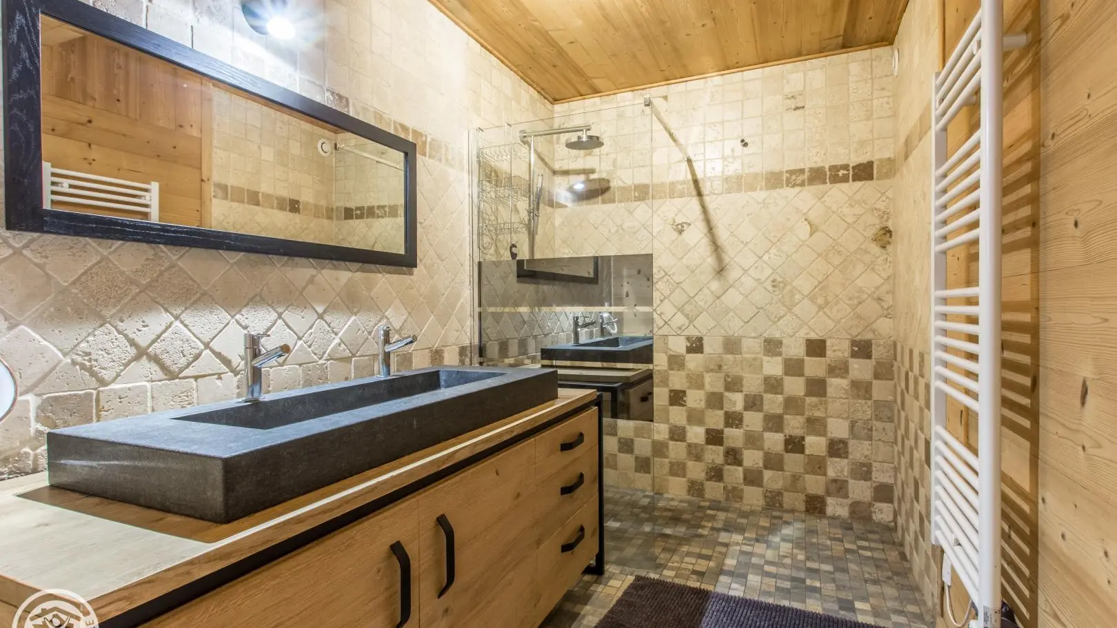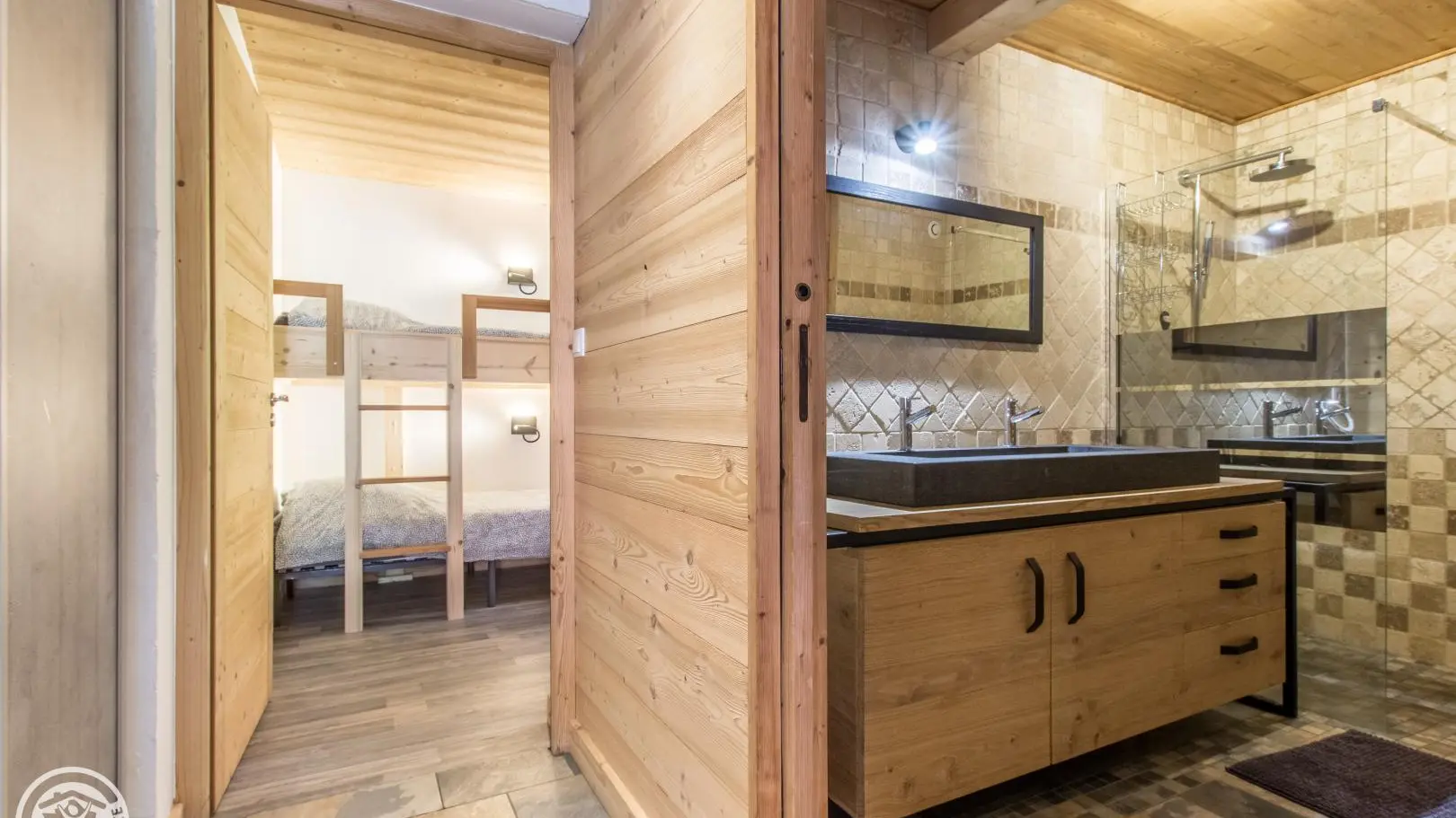 Gîte de 80m2 aménagé au rez-de-chaussée d'une ancienne ferme savoyarde rénovée dans un très bel esprit chalet.