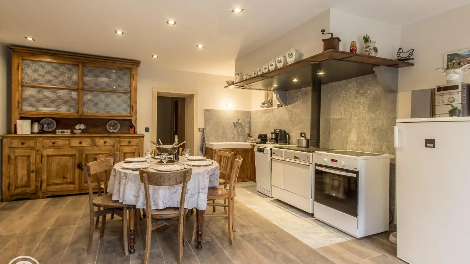 Gîte de 53m2 aménagé au rez-de-chaussée surélevé d'une ancienne ferme de pays rénovée comprenant également un autre gîte, ainsi que le logement du propriétaire.