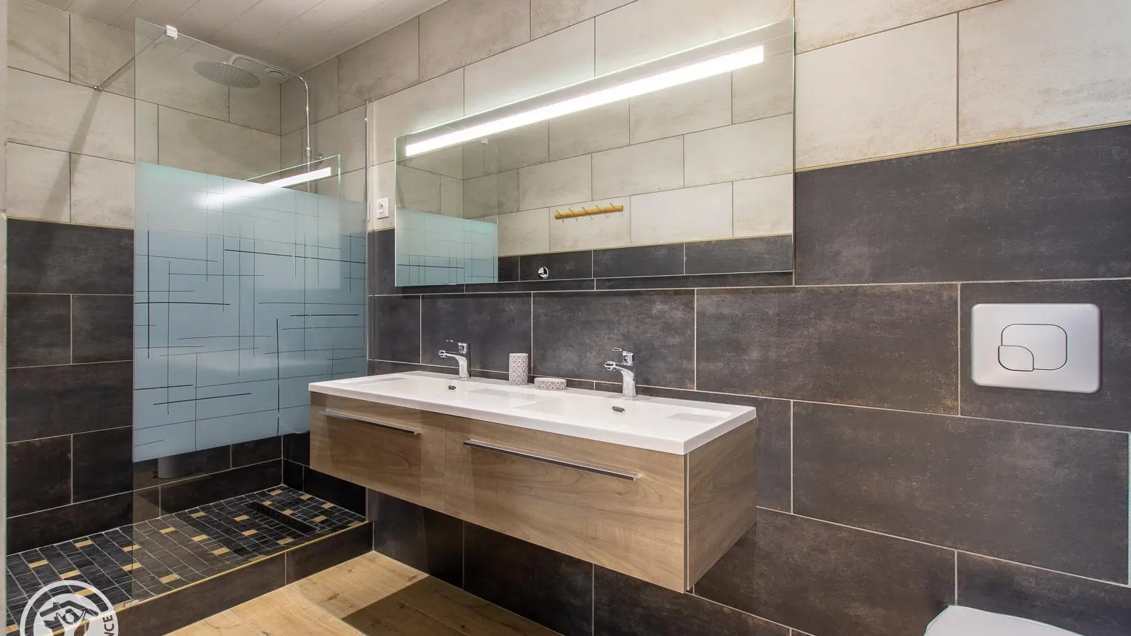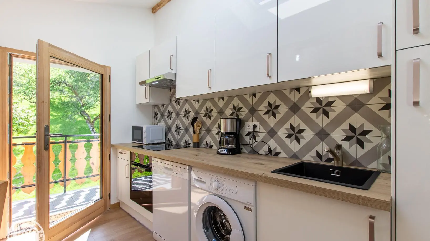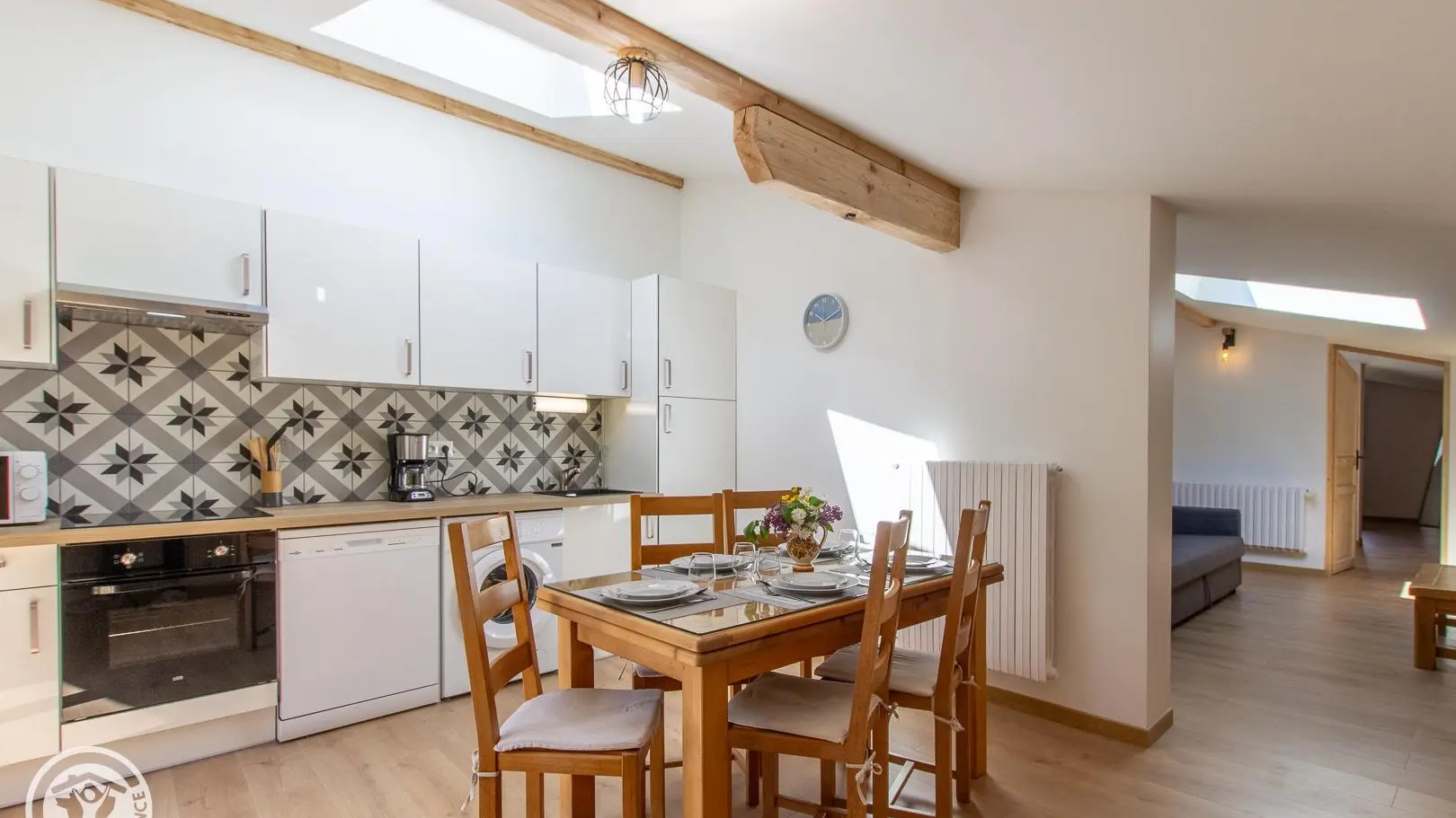 L'hébergement se compose : d'une cuisine intégrée avec espace repas, salon indépendant (Tv, canapé), vaste chambre séparée en 2 espaces couchages (1 lit 160x200cm, 2 lits 90x190cm, lit bébé), salle d'eau avec douche et wc. Internet wifi.