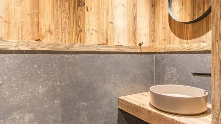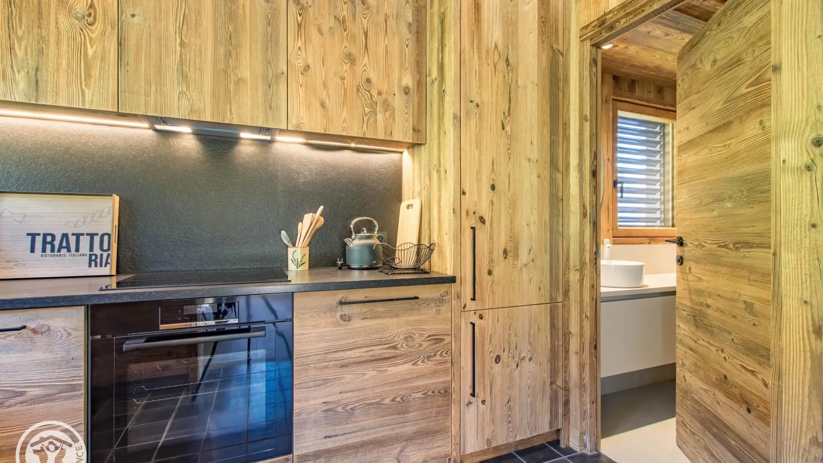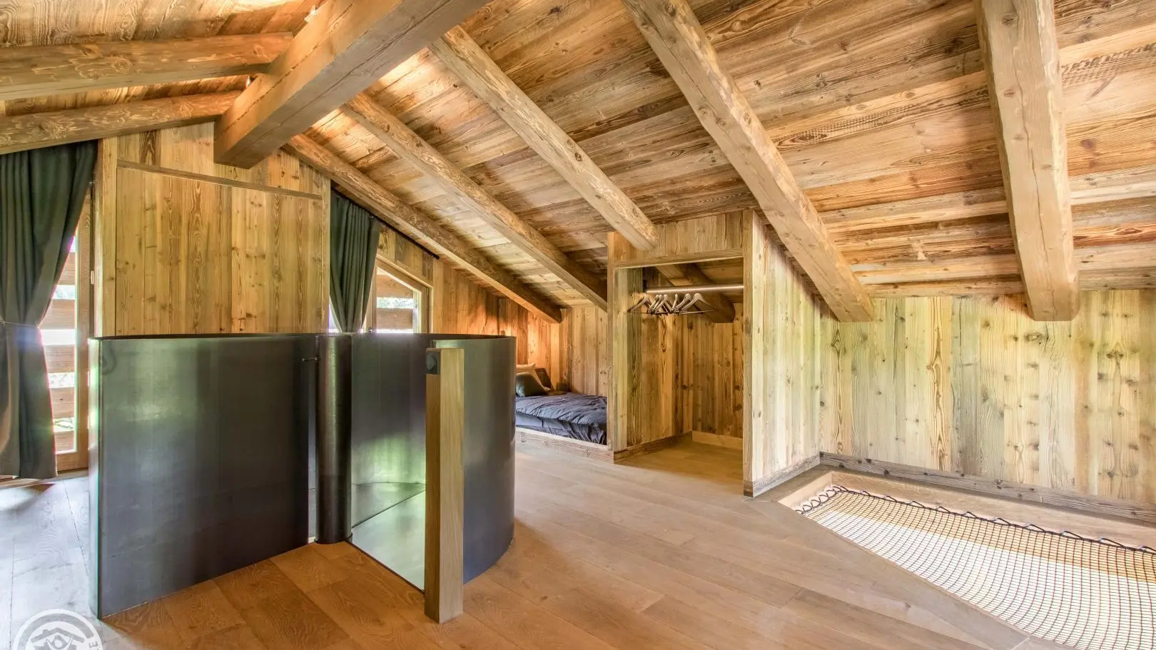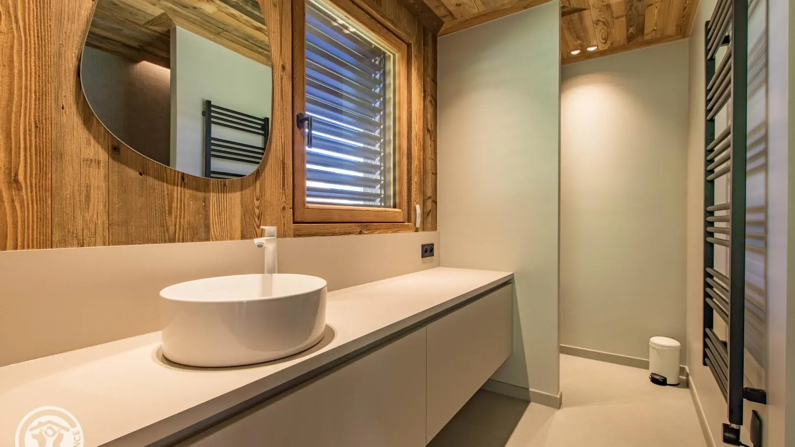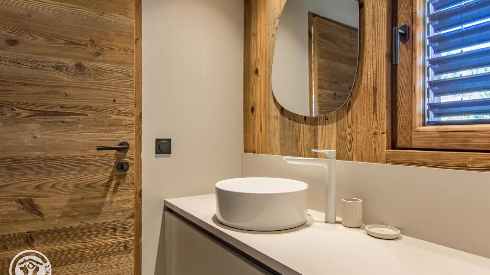 Rez-de-chaussée : hall d'entrée / skiroom, chambre 1 avec 1 lit 160x200cm, salle d'eau (douche à l'italienne), buanderie avec lave-linge et sèche-linge. 1 wc indépendant.