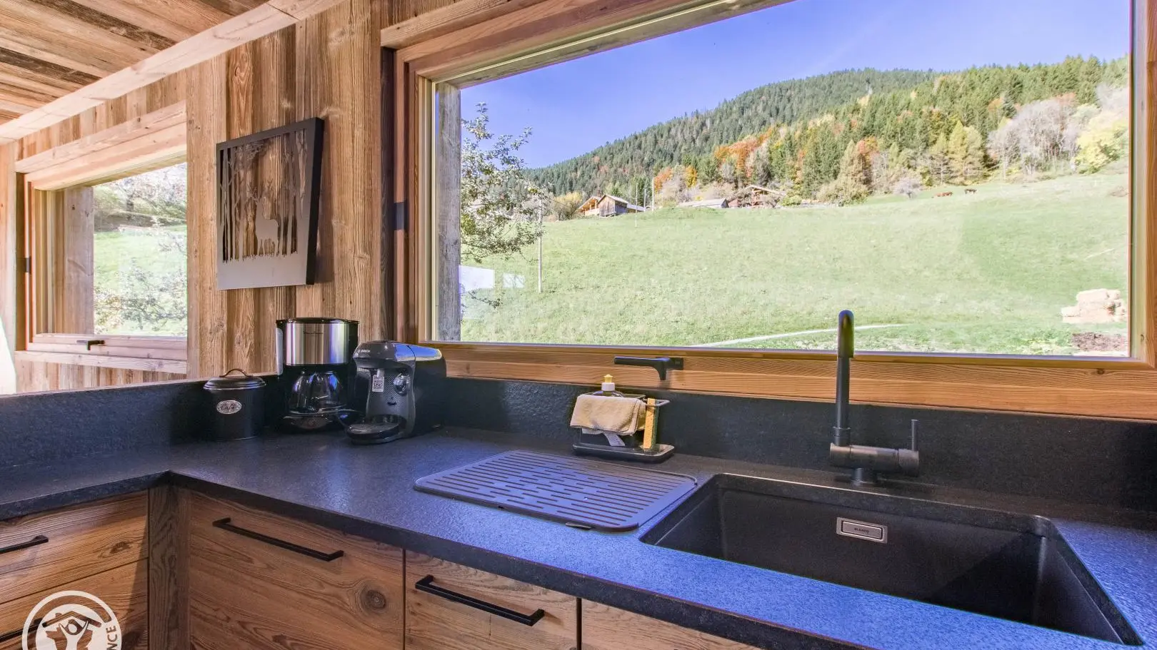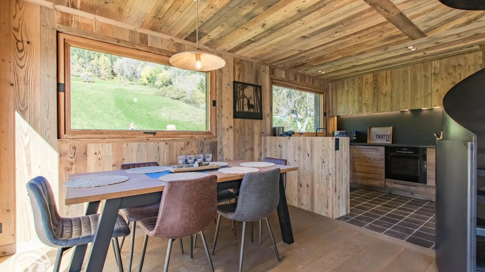 Chalet indépendant de 98m² (+14m² mansardés) aménagé sur 3 niveaux, prestations de qualité, secteur calme et magnifique panorama sur les montagnes. Les propriétaires habitent dans le chalet voisin.