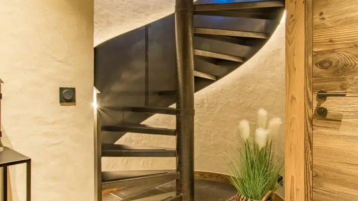 Accès par le garage. Magnifique escalier central permettant de relier les différents niveaux.