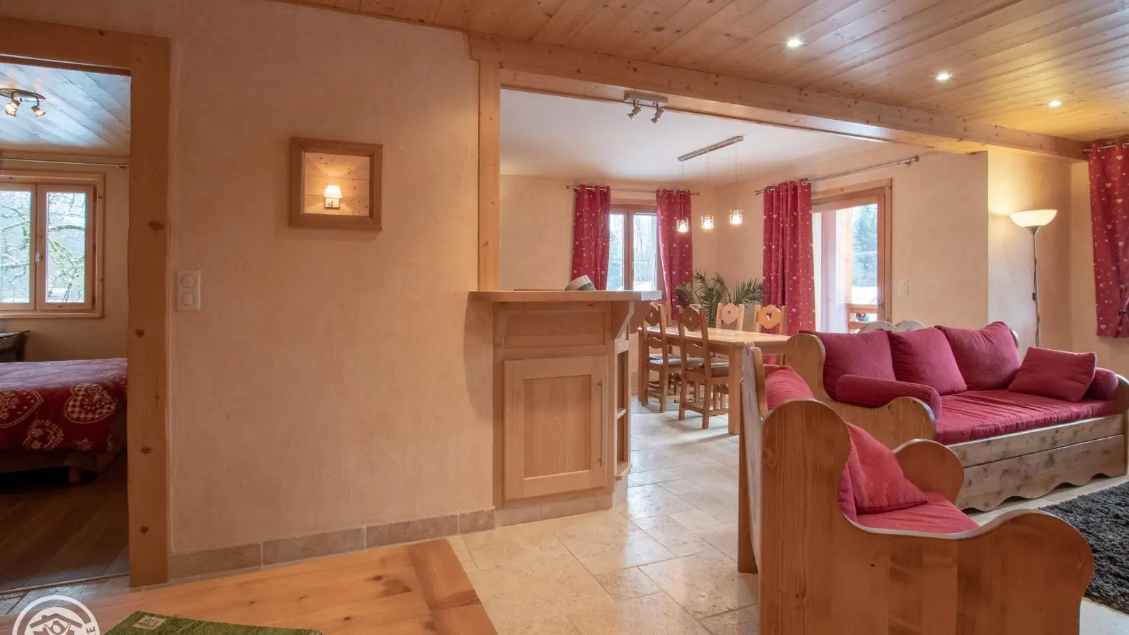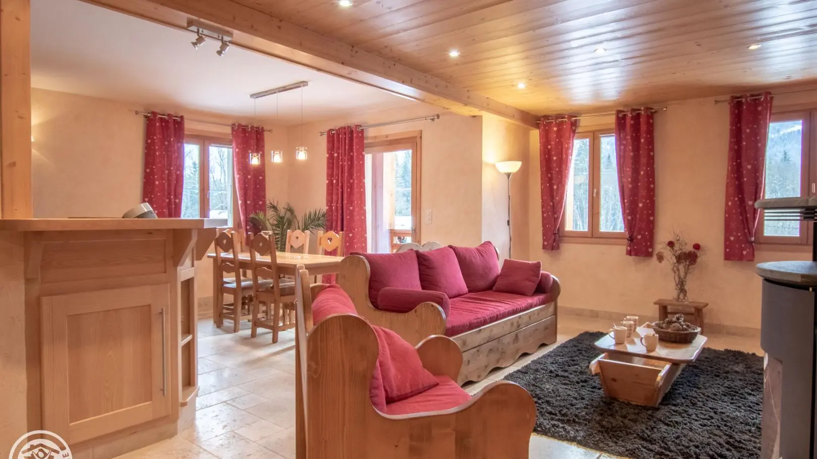Dans une ambiance chaleureuse, à proximité des domaines skiables du Grand Massif, Portes du Soleil et Pras de Lys-Sommand, gite spacieux et lumineux de 80 m² situé au 1er étage d'une ancienne ferme entièrement restaurée comprenant également 1 autre gite.