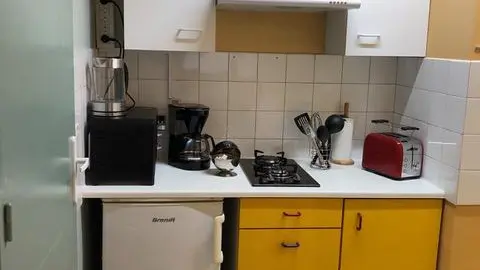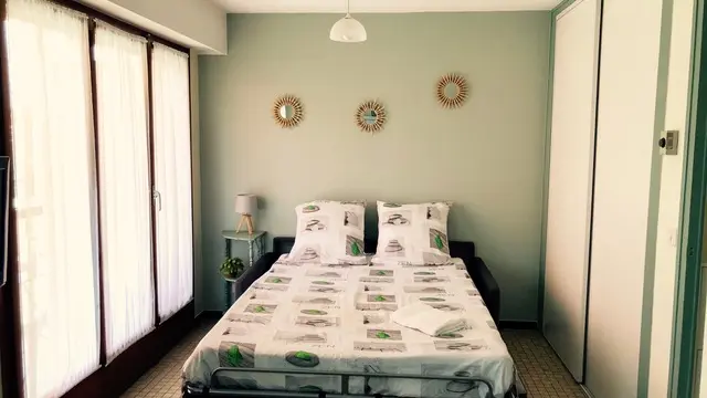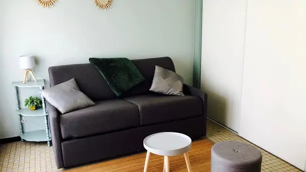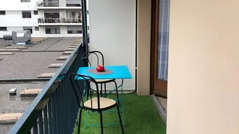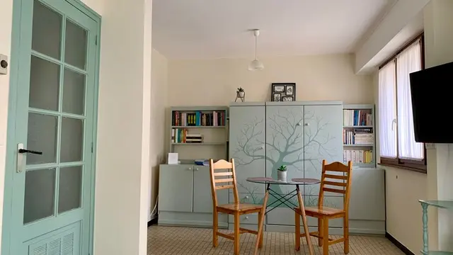 Ce studio vintage de 29m2 est au 1er étage, sans ascenseur. Il est particulièrement équipé pour les longs séjours. Le balcon exposé S/O est le salon/chambre donne sur une cour calme.