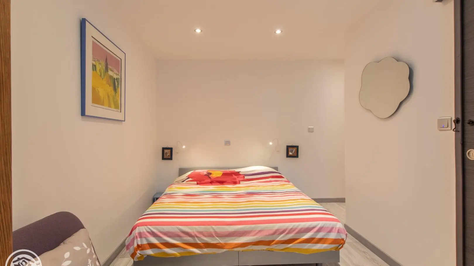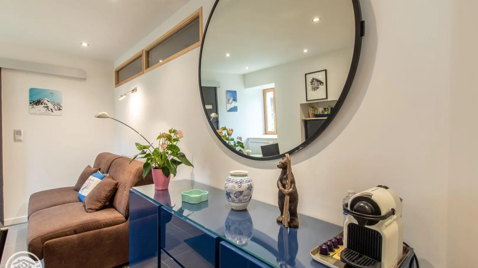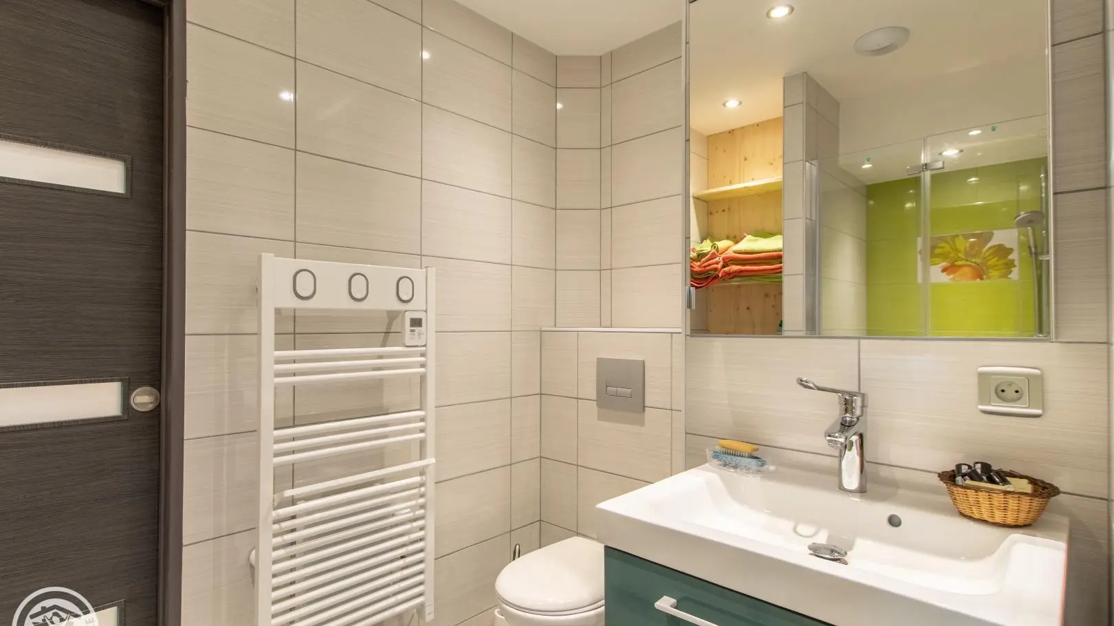 1 Salle de bain avec douche à l'italienne, WC. Sèche-cheveux et sèche-serviettes.