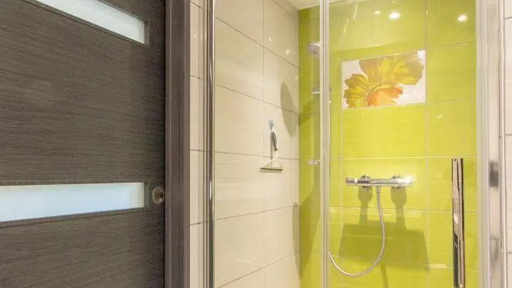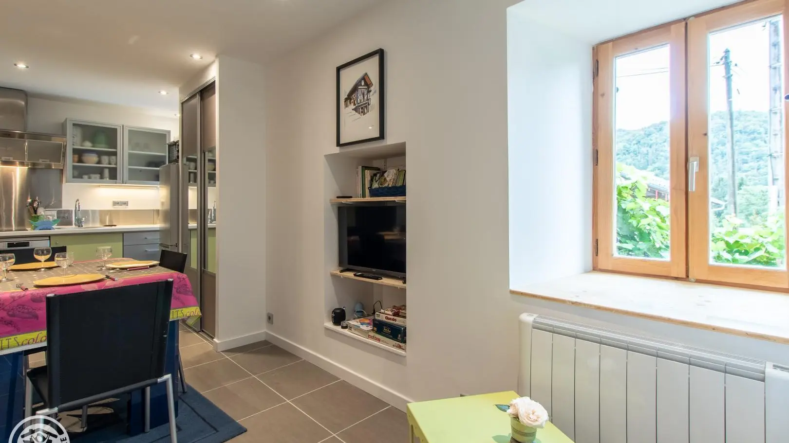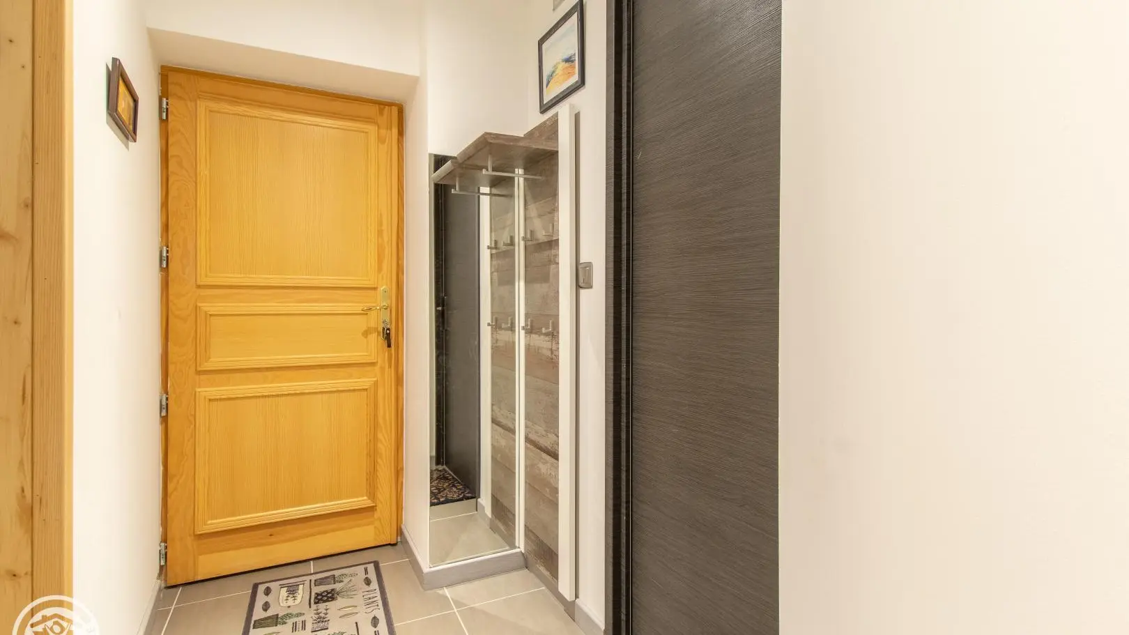 1 Salle de bain avec douche à l'italienne, WC. Sèche-cheveux et sèche-serviettes.