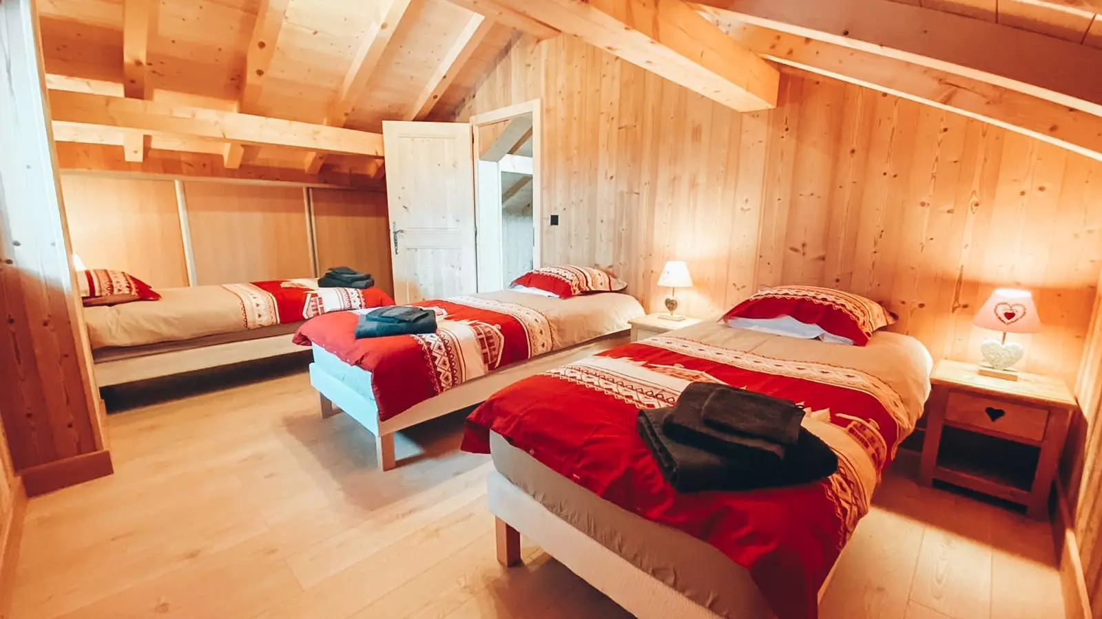 Chambres 3 et 4 au 1er étage : 3 lits simples chacune.