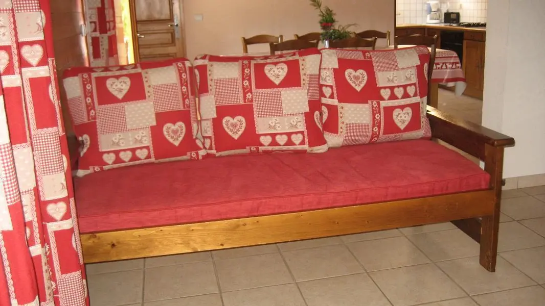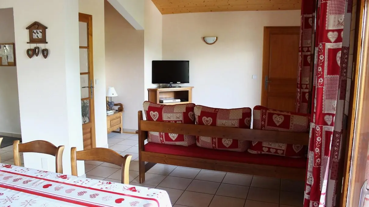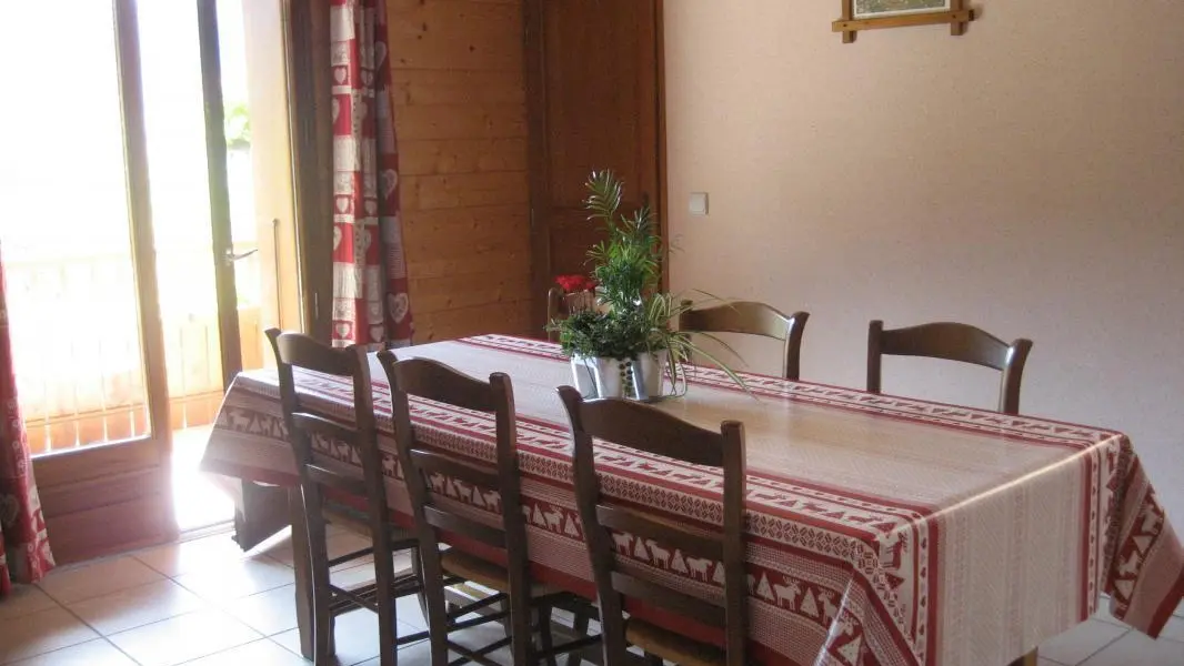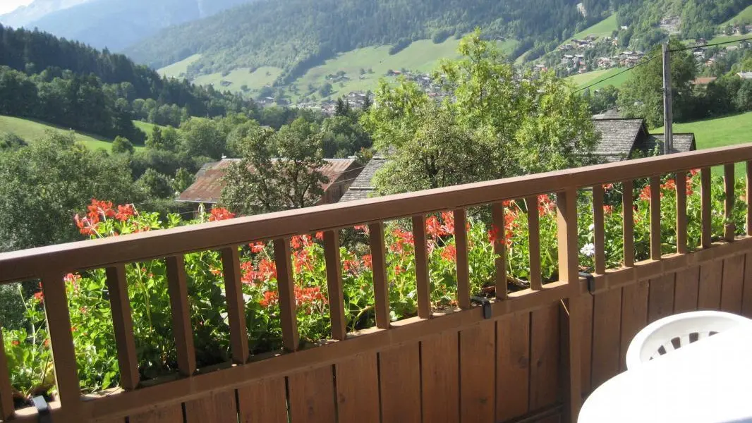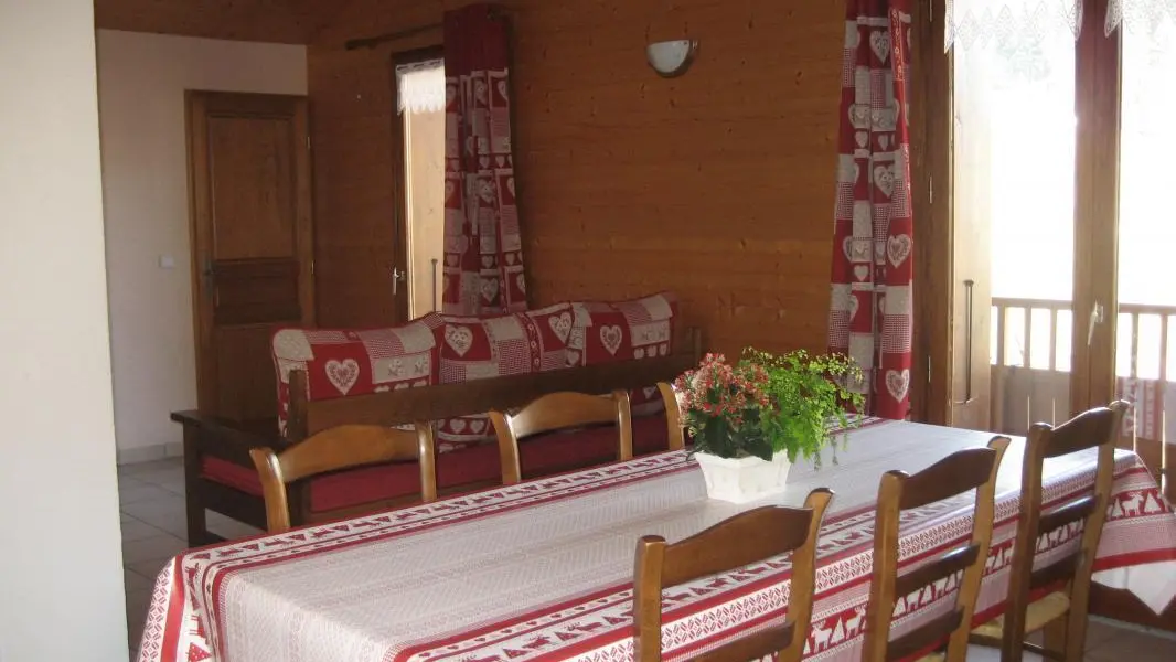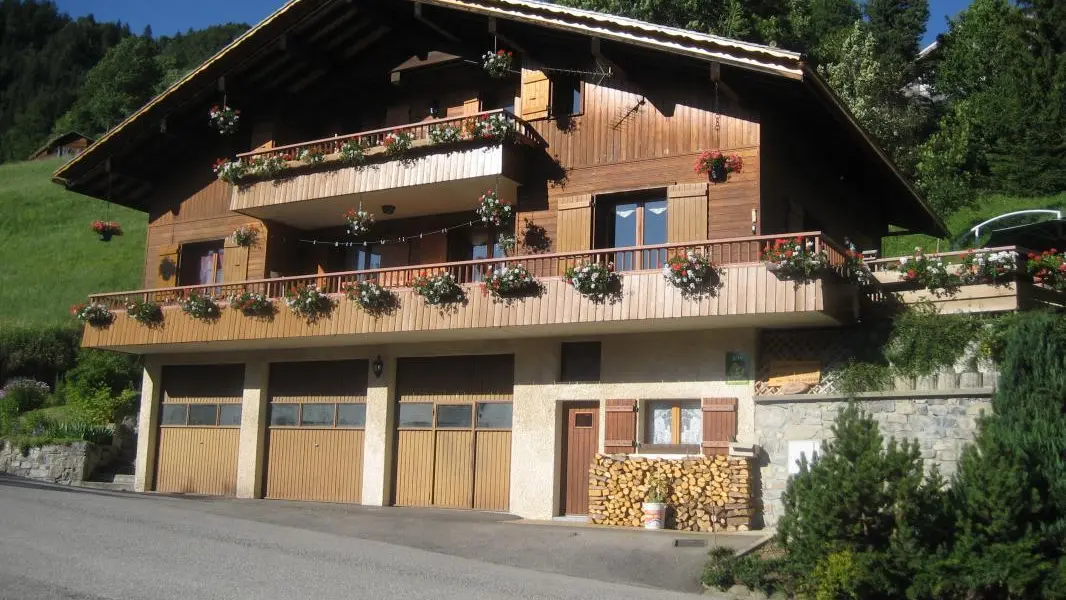 Vue sur les Aravis, le Lachat et le village, chalet comprenant 1 gîte de 67 m2 au 1er étage (accès indépendant) et le logement des propriétaires au rez-de-chaussée. Grand séjour/cuisine, chambre 1 (1 lit 140), chambre 2 mansardée (2 lits 90), chambre 3 mansardée (1 lit 140). Salle d'eau, wc indépendant. Chauffage central (au sol). Balcon-terrasse. Lit bébé à disposition. Possibilité de lit supplémentaire. Jardin commun, salon de jardin sur balcon exposition plein sud. Barbecue, local à ski. Possibilité de location de draps et linge de toilette. Domaine skiable Grand-Bornand / Chinaillon à 800 m. Promenades au départ du gîte. Base de loisirs à proximité. Navette à 100m.
