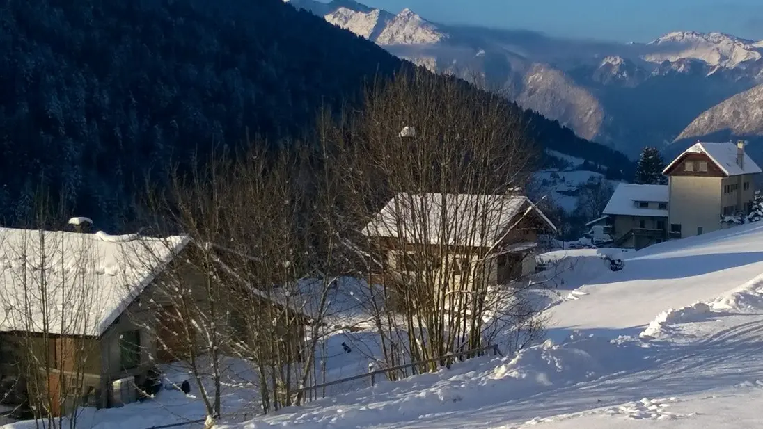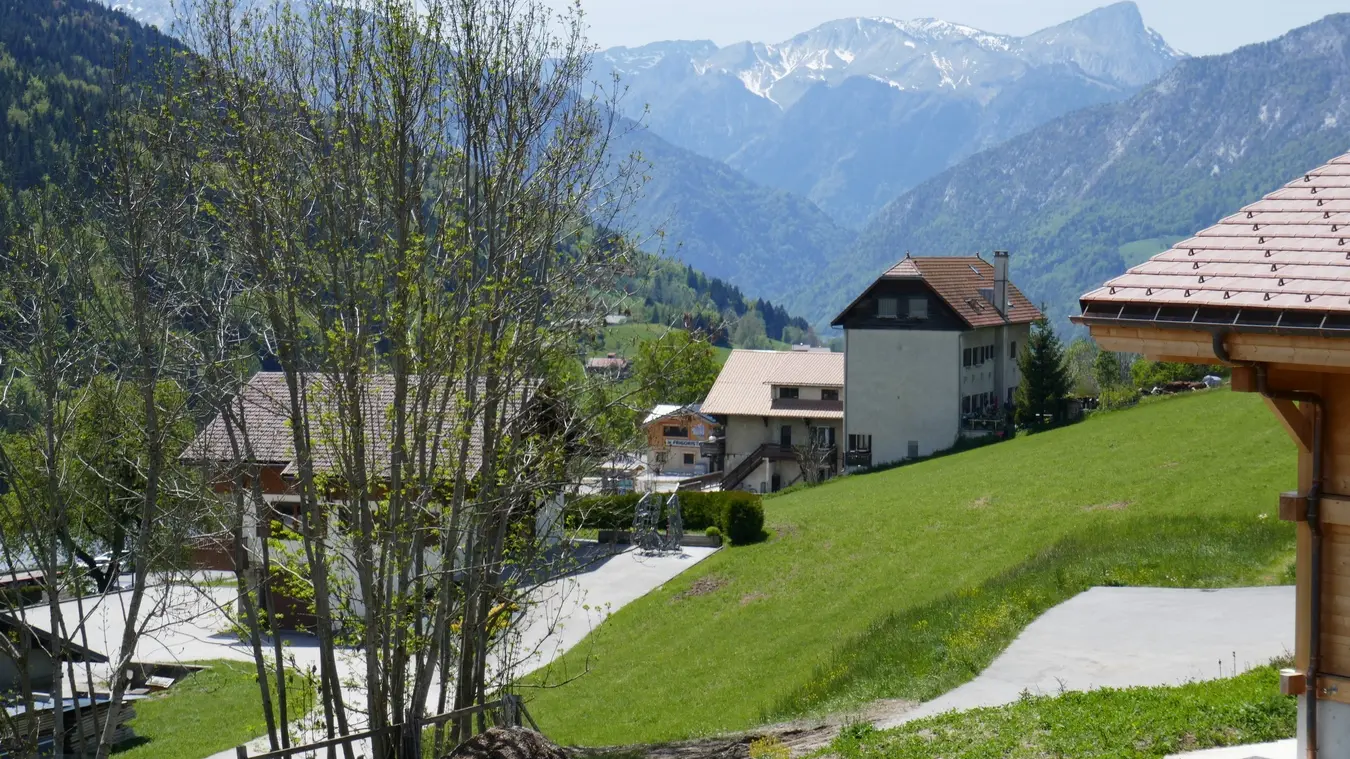 A 300 m du centre village, bénéficiant d'une jolie vue sur la Vallée de Thônes, le massif des Bornes avec la Tournette, et sur les Aravis.