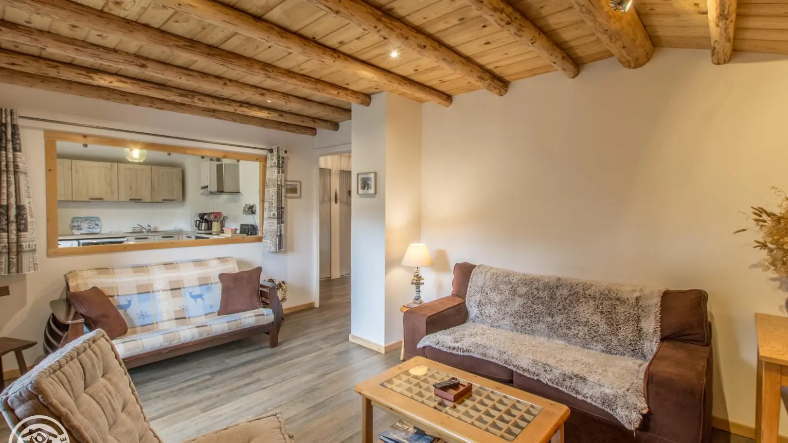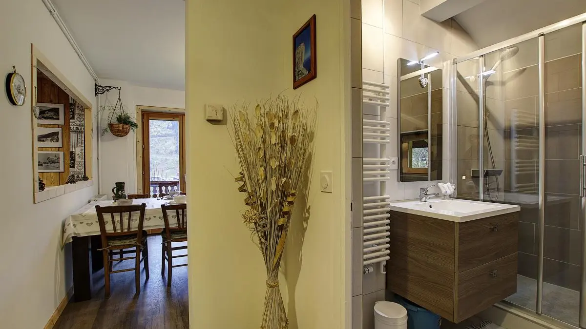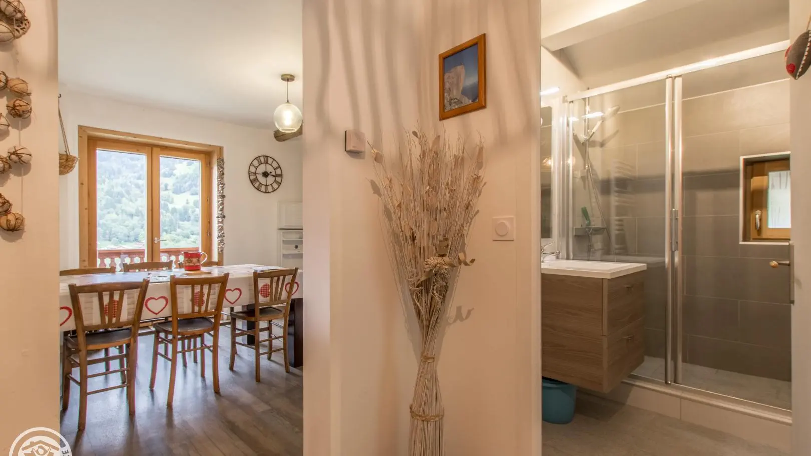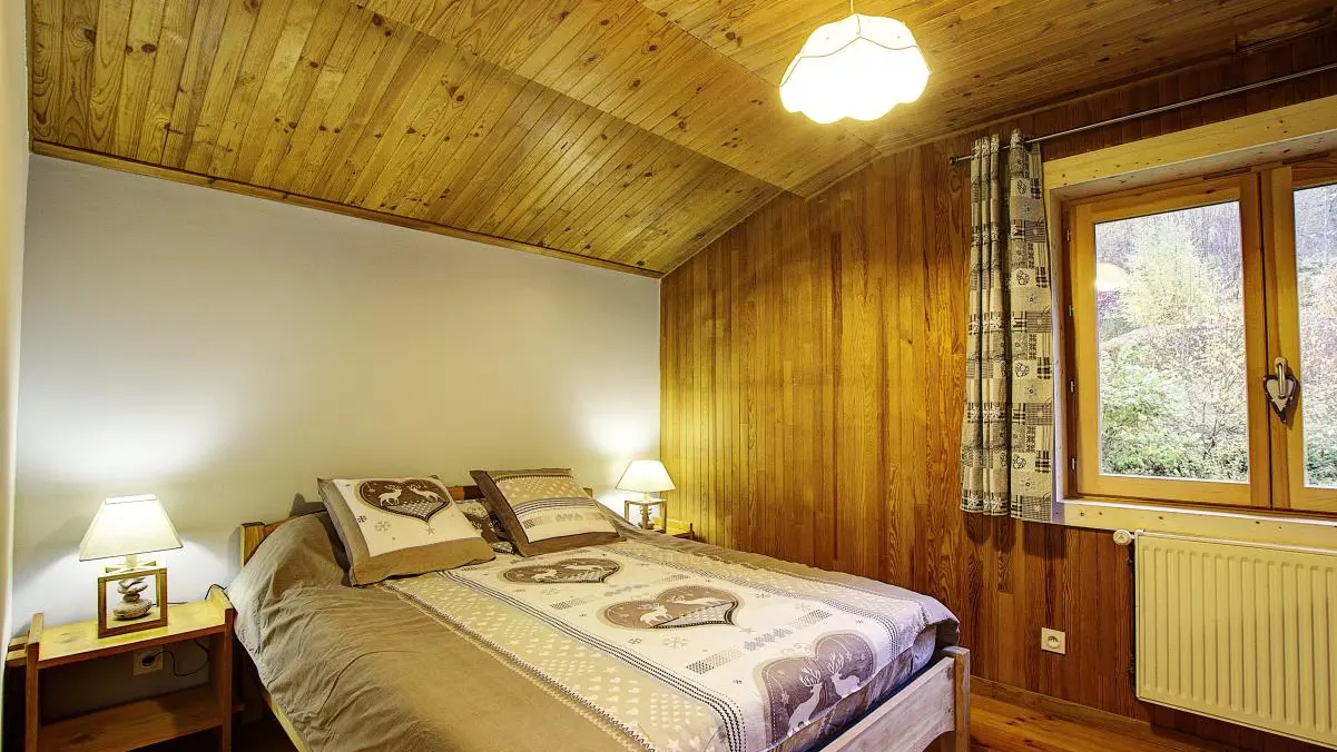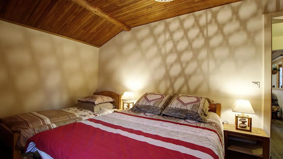 Gîte de 67m2 aménagé au 2ème étage d'un chalet comprenant également un autre gîte au rez-de-chaussée. Entrée commune au 1er niveau depuis le jardin.