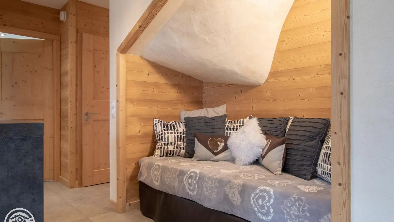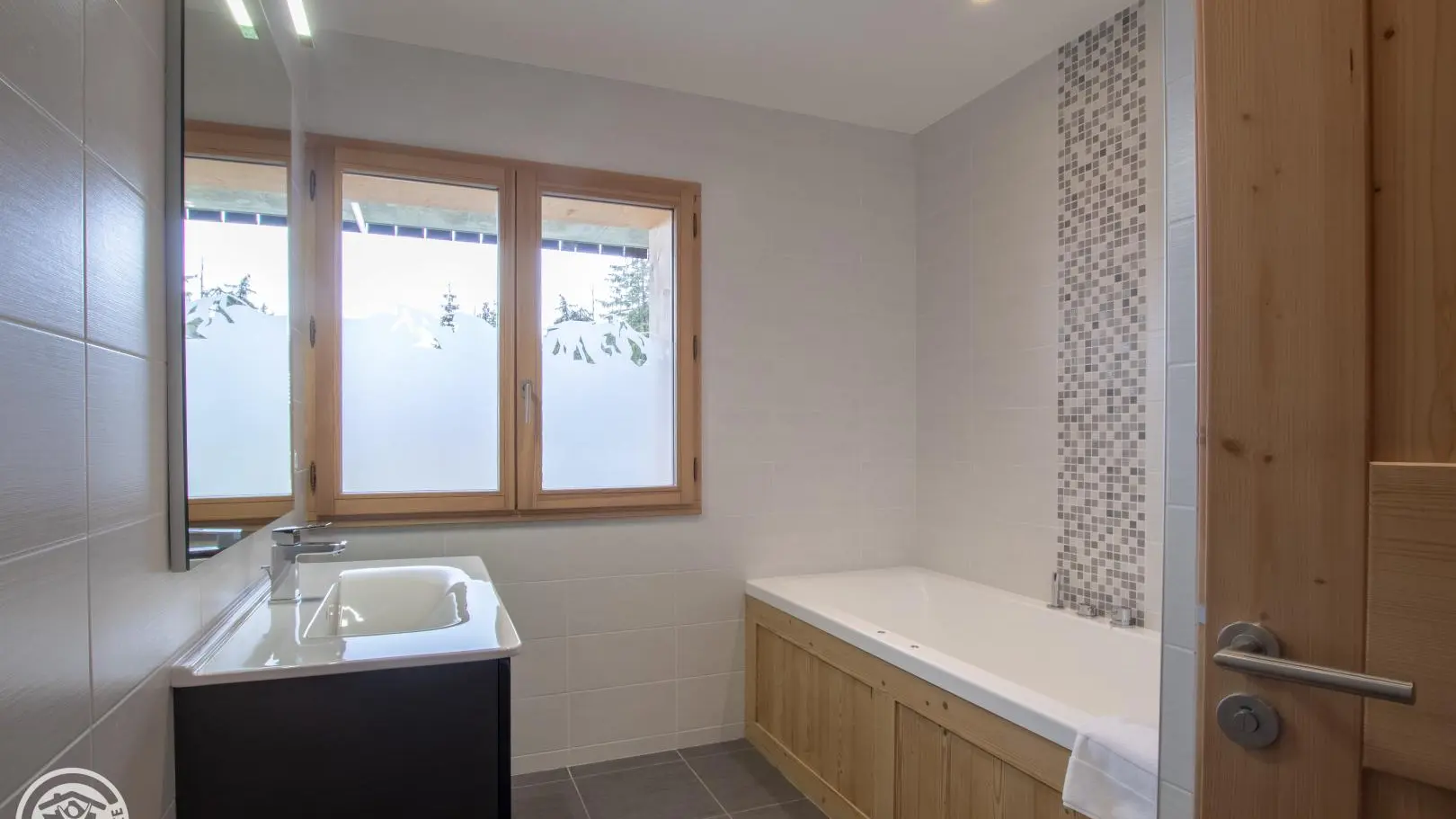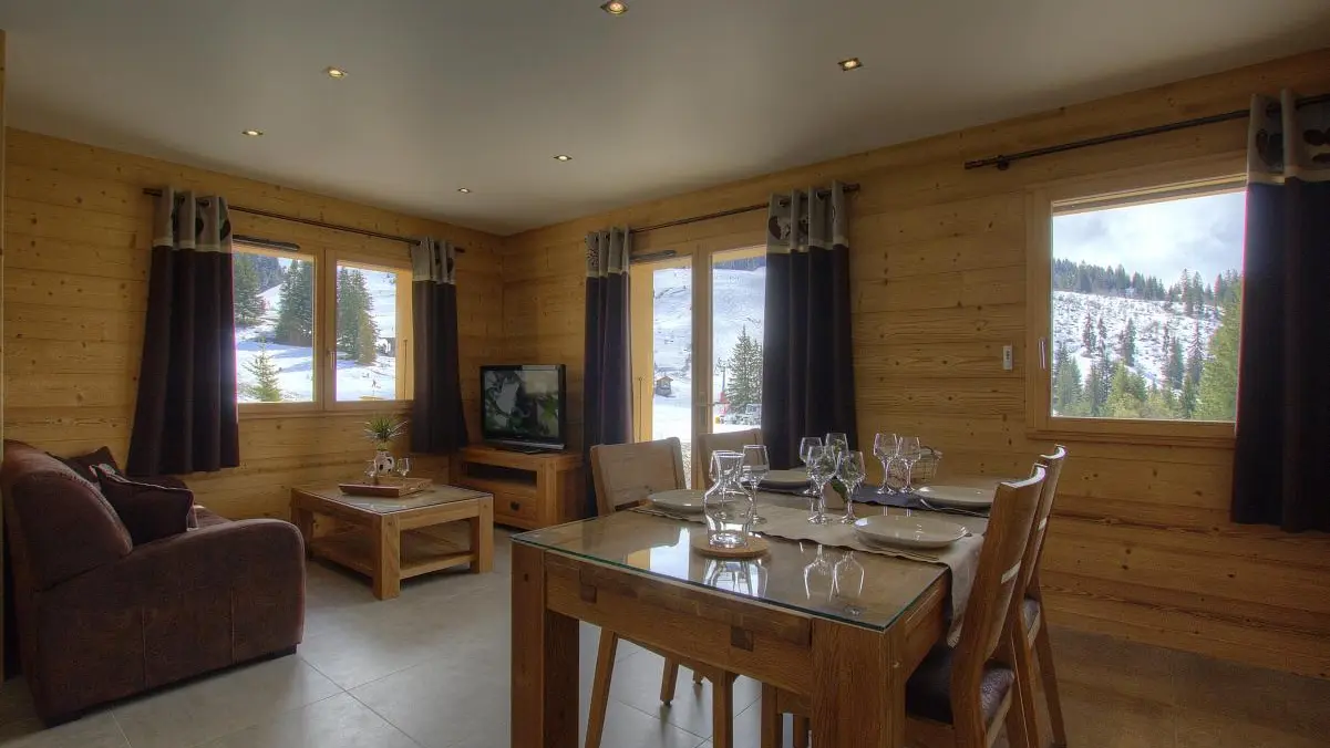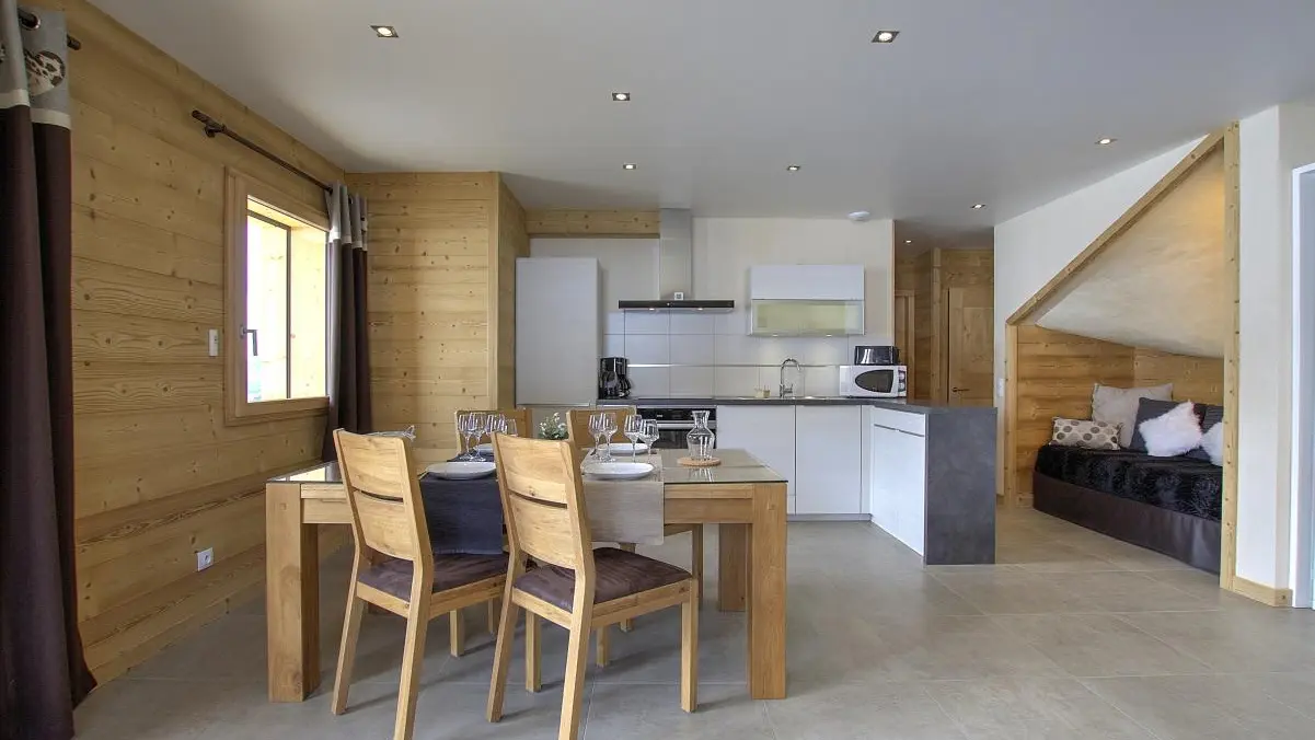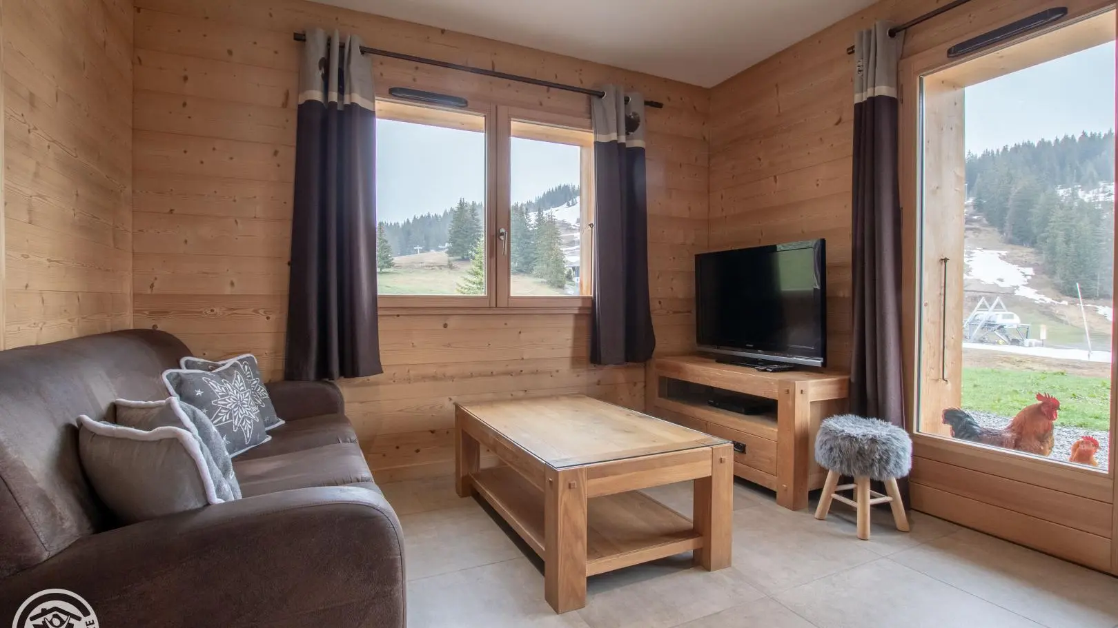Ambiance mêlant bois et modernité ou encore prestations et matériaux de grande qualité qualifient ce gite de 76m² aménagé au rez-de-jardin du chalet des propriétaires. Entrée indépendante (accès par escalier extérieur depuis le parking). Cuisine ouverte sur séjour : TV 102cm, canapé, 1 lit 90 en alcôve, accès à la terrasse avec vue panoramique sur les montagnes... 2 chambres : chambre 1 (1 lit 160x200cm), chambre 2 (2 lits 90x200cm jumelables), 1 salle de bains (baignoire balnéo) et 1 salle d'eau (douche, WC), 1 WC indépendant, buanderie à côté du gite (lave et sèche-linge, rangement skis, vélos). Les draps et serviettes sont fournis. Terrasse avec mobilier de jardin, barbecue. Parking. Accès illimité à l'espace bien-être avec piscine intérieure de l'hôtel-restaurant des propriétaires situé à côté du chalet (selon dates et horaires d'ouverture). Activités : Ski (La Croix Fry-Merdassier relié au domaine La Clusaz) sur place, Lac Annecy, plages à 27km, Annecy à 33km. Nombreuses randos été/hiver au départ du chalet. Tous commerces à La Clusaz à 8km.