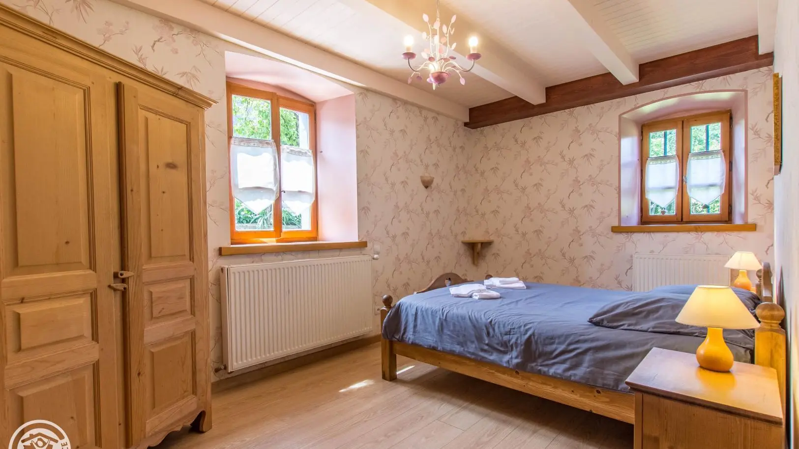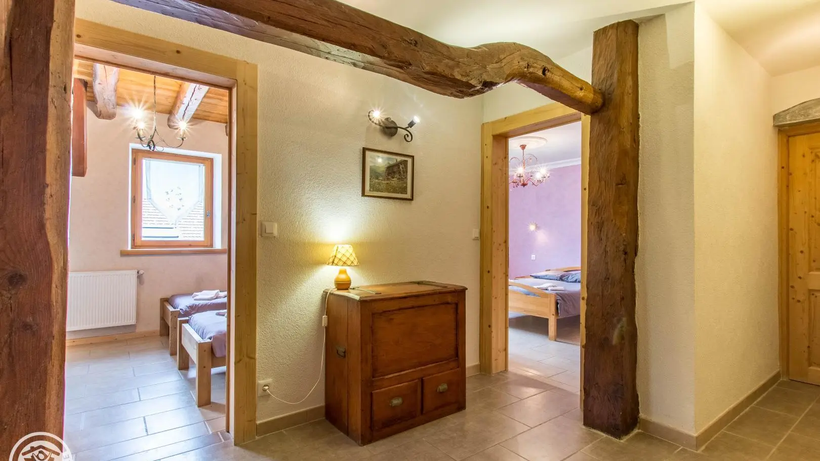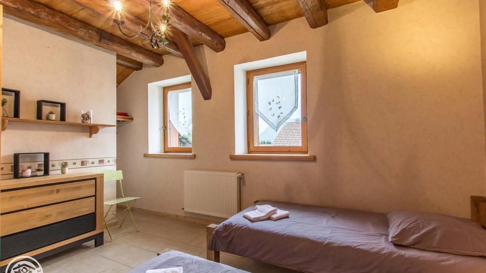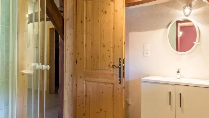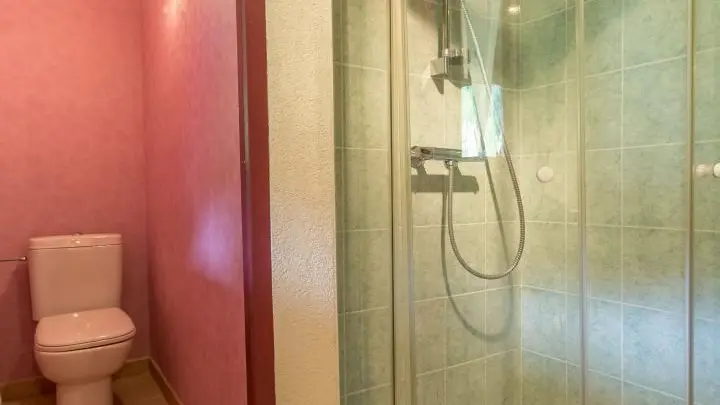 A l'étage : chambre 2 (1 lit 140x190cm), chambre 3 (2 lits 90x190cm), chambre 4 (2 lits 90x190cm), salle d'eau (cabine douche, wc indépendant).