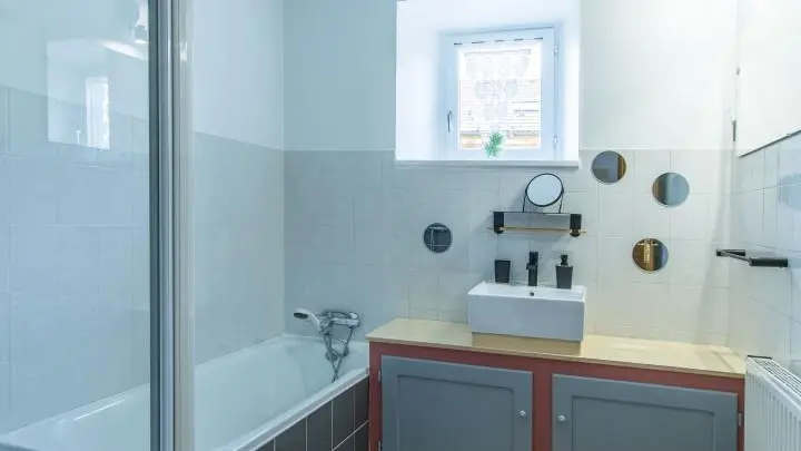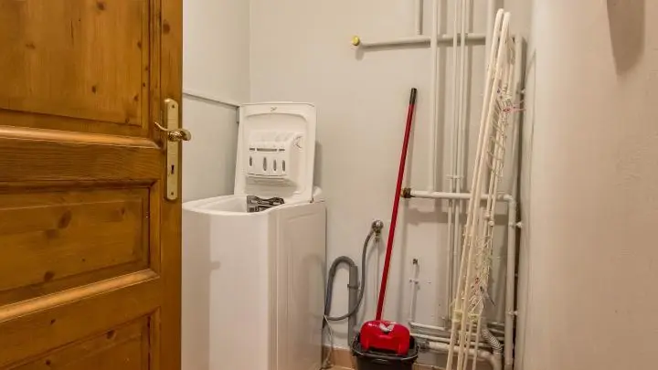 Au rez-de-chaussée : salle skiroom/espace de rangement, cuisine indépendante, salon/séjour (canapé, Tv), chambre 1 (1 lit 140x190cm), salle de bains (baignoire + douche), wc indépendant, coin buanderie.
