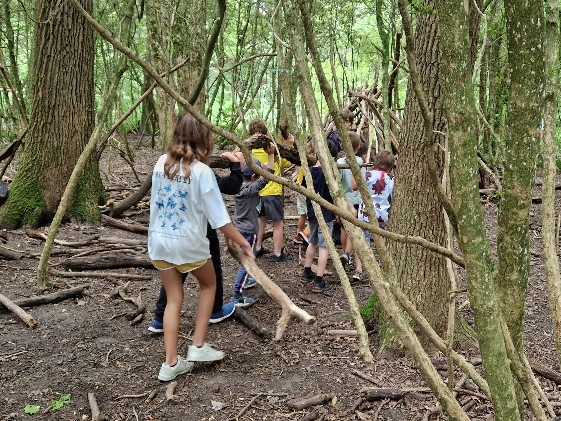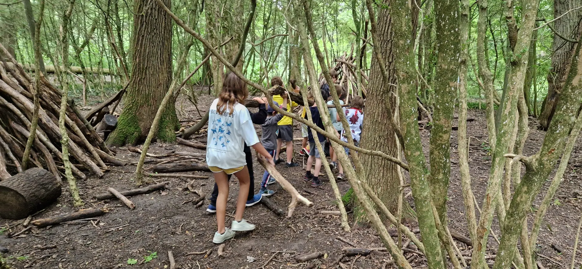 Les enfants plongent dans la vie des Hommes préhistoriques à travers une promenade dans la forêt au sein d’un domaine protégé: Le Guidou.