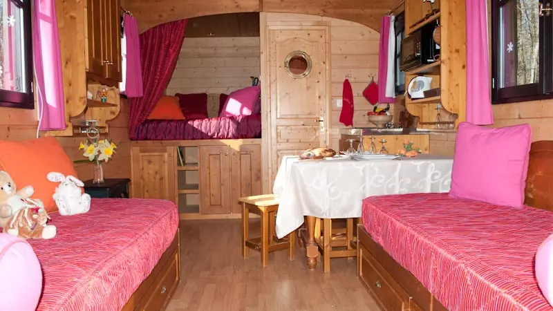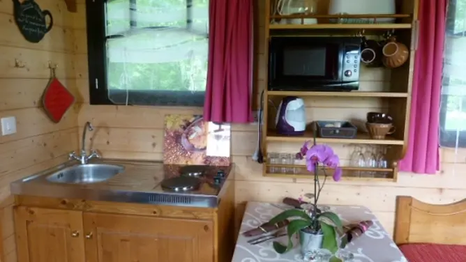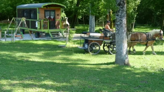 Dépaysement assuré ! Superbe roulotte dans un cadre magnifique. Le propriétaire Gilbert est charmant et vous propose de découvrir ses balades en calèche. Un lieu insolite en Haute-Savoie, à mi-chemin entre Aix les Bains et Annecy, entre lac et montagnes.