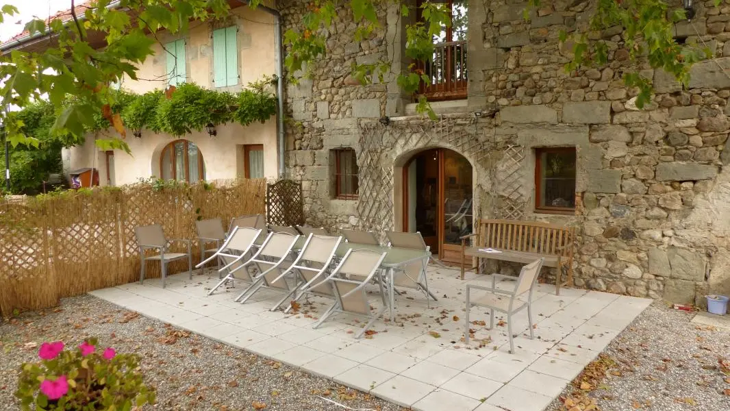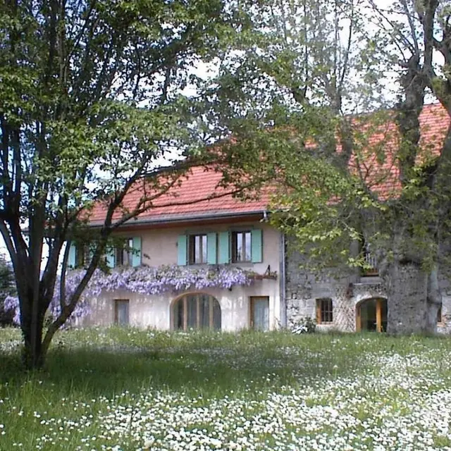 Au cœur de l'Albanais, entre Annecy (15km) et Aix les Bains (20km), gîte de 190m² dans une ferme restaurée, mitoyen avec le logement des propriétaires. Rez-de-jardin : cuisine / salle à manger accès à la terrasse. 1er étage : salon, chambre 1 (1 lit 160 + 1 lit 90 - salle d'eau, wc), chambre 2 (1 lit 160 + 1 lit 90 - salle de bain, wc), chambre 3 (1 lit 160 - salle de bain, wc). Au 2ème étage : chambre 4 avec partie salon (1 lit 160 - salle de bain, wc), chambre 5 avec partie salon (lit 160 en mezzanine - salle de bain/wc). Entrée indépendante par le 1er étage. Terrasse avec salon de jardin et barbecue, terrain commun. Gîte non fumeur.
