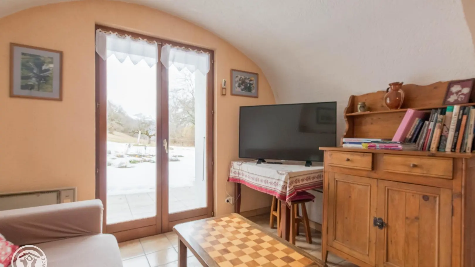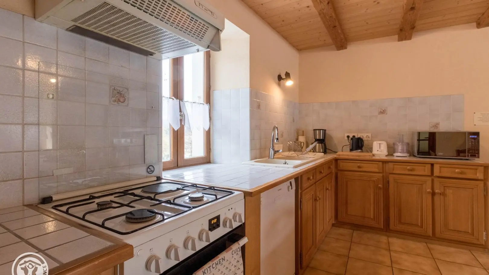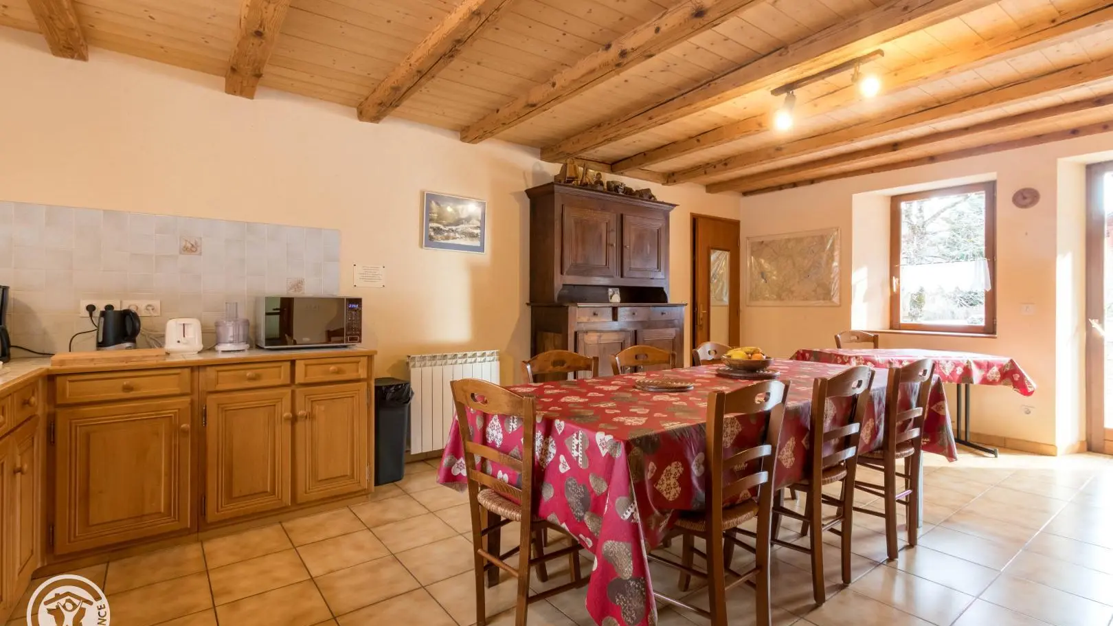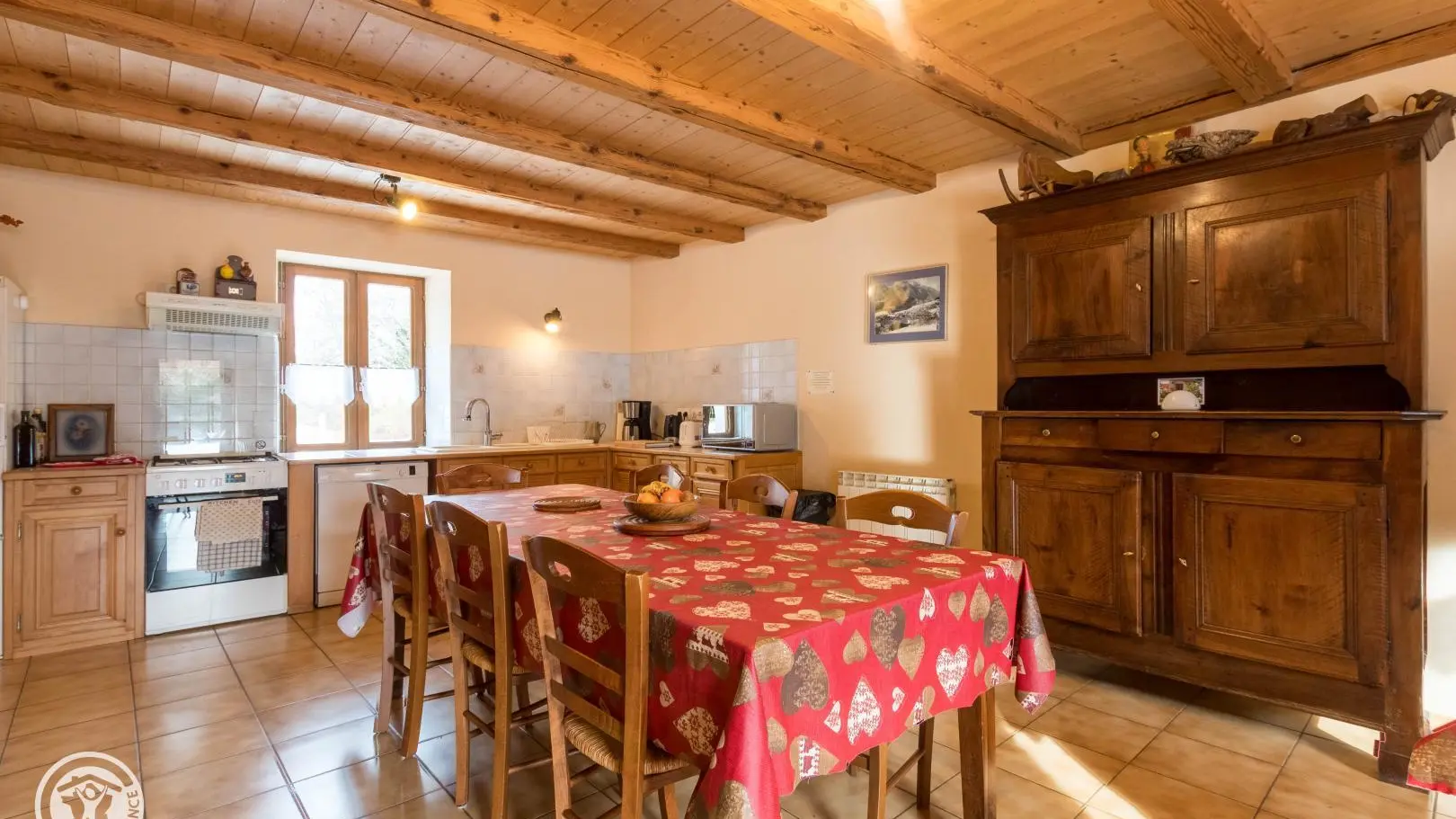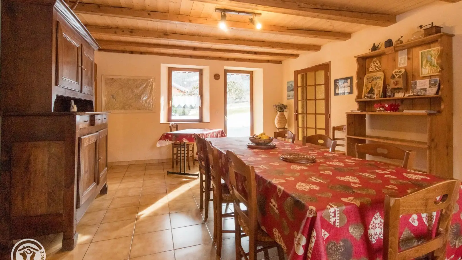 Au pied de la Sambuy, aux portes du parc du Massif des Bauges, ancienne maison mitoyenne comprenant 2 gîtes. Gîte de 108 m2. Hall, coin-cuisine dans salle à manger, salon voûté avec 2 canapés et TV écran plat, WC. 1er étage : Chambre 1 (1 lit 140cm), Chambre 2 (4 lits gigogne 90cm), Chambre 3 (1 lit 140cm), salle d'eau/ WC. Buanderie/ cave commune avec lave-linge et sèche-linge. Balcon-terrasse couvert. Grande terrasse extérieure carrelée. Gîte situé au calme. Ski: stations des Aravis 35Km (La Clusaz, le Grand Bornand, La croix Fry Merdassier), foyer de ski de fond des Combes 3 km. Fort et Abbaye de Tamié 6 km, lac d'Annecy et plage de Doussard 13 km. Regroupable avec 270011.