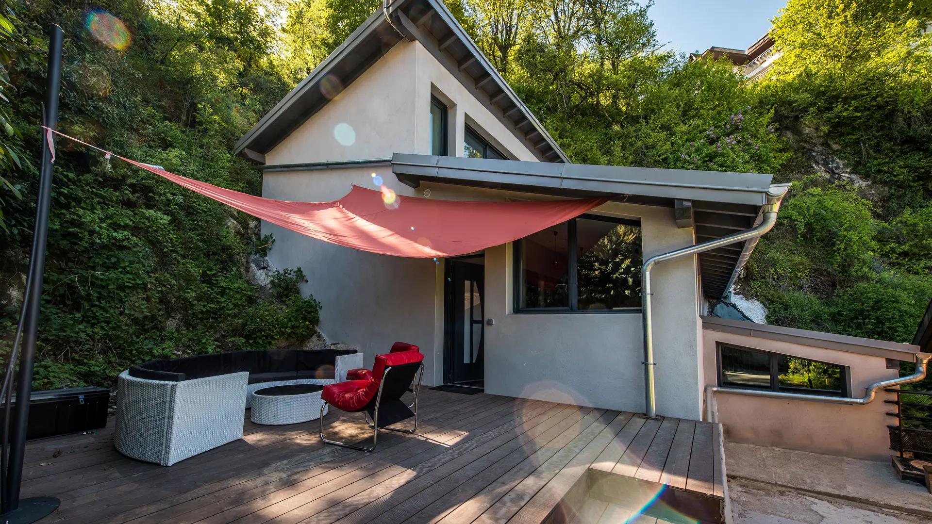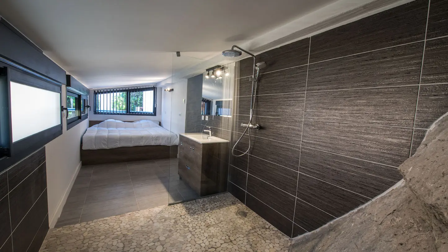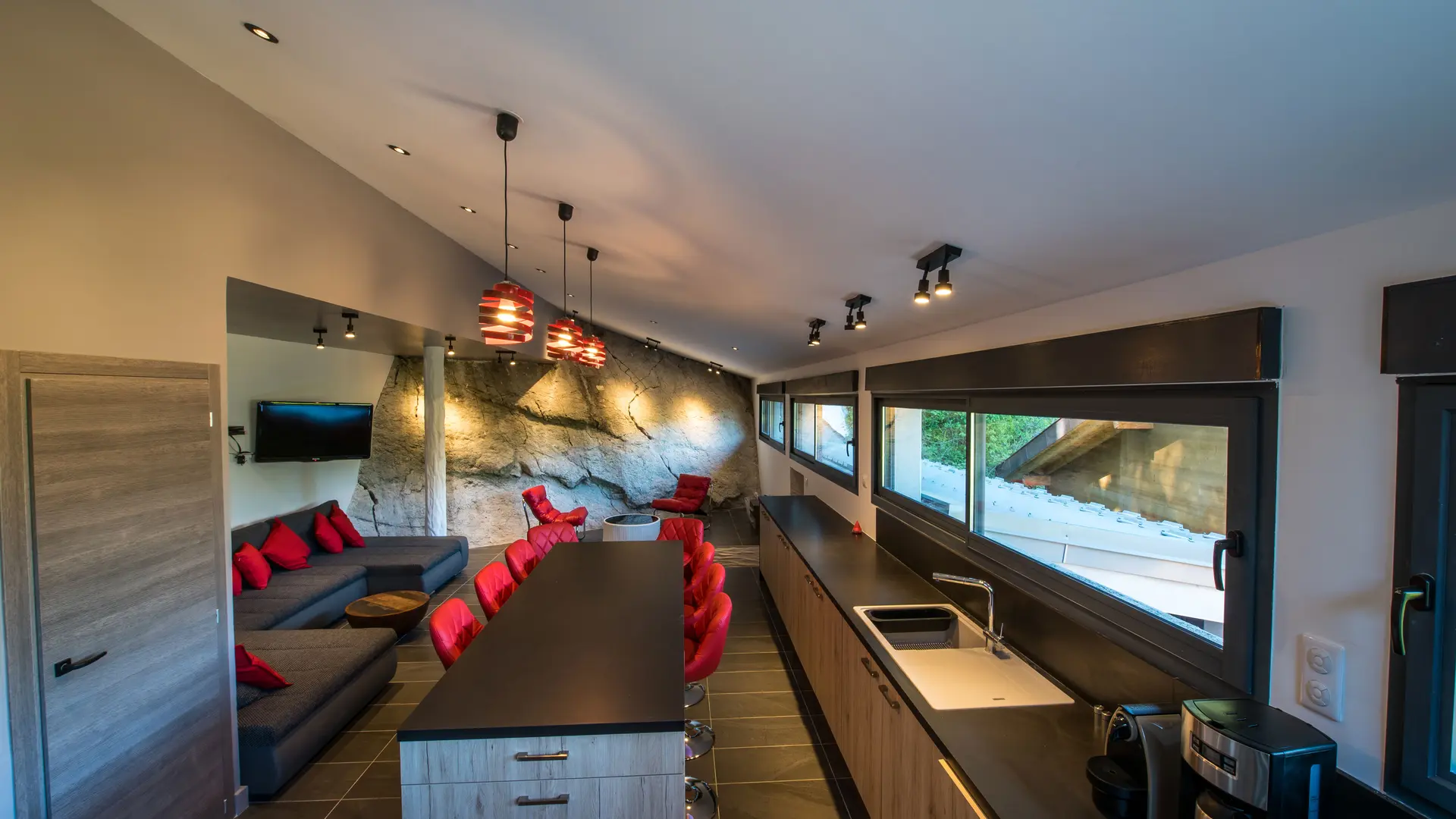 Les beaux volumes intérieurs s'organisent autour d'un pan de falaise et d'une décoration contemporaine. La combinaison architecture moderne, mobilier design et le confort des équipements en font le logement idéal pour vos vacances.