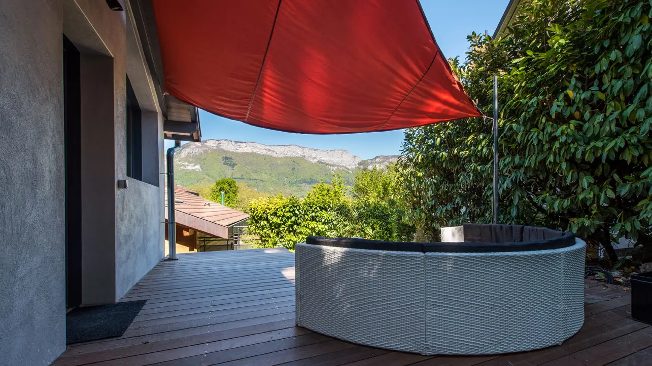 Il dispose de 6 véritables couchages et 2 d'appoints. Ouvertures vitrées sur l'extérieur et petite terrasse ombragée vous feront profiter au mieux des beaux jours et de la vue qui donne sur le massif des Bornes.