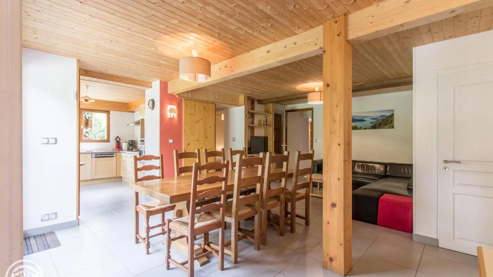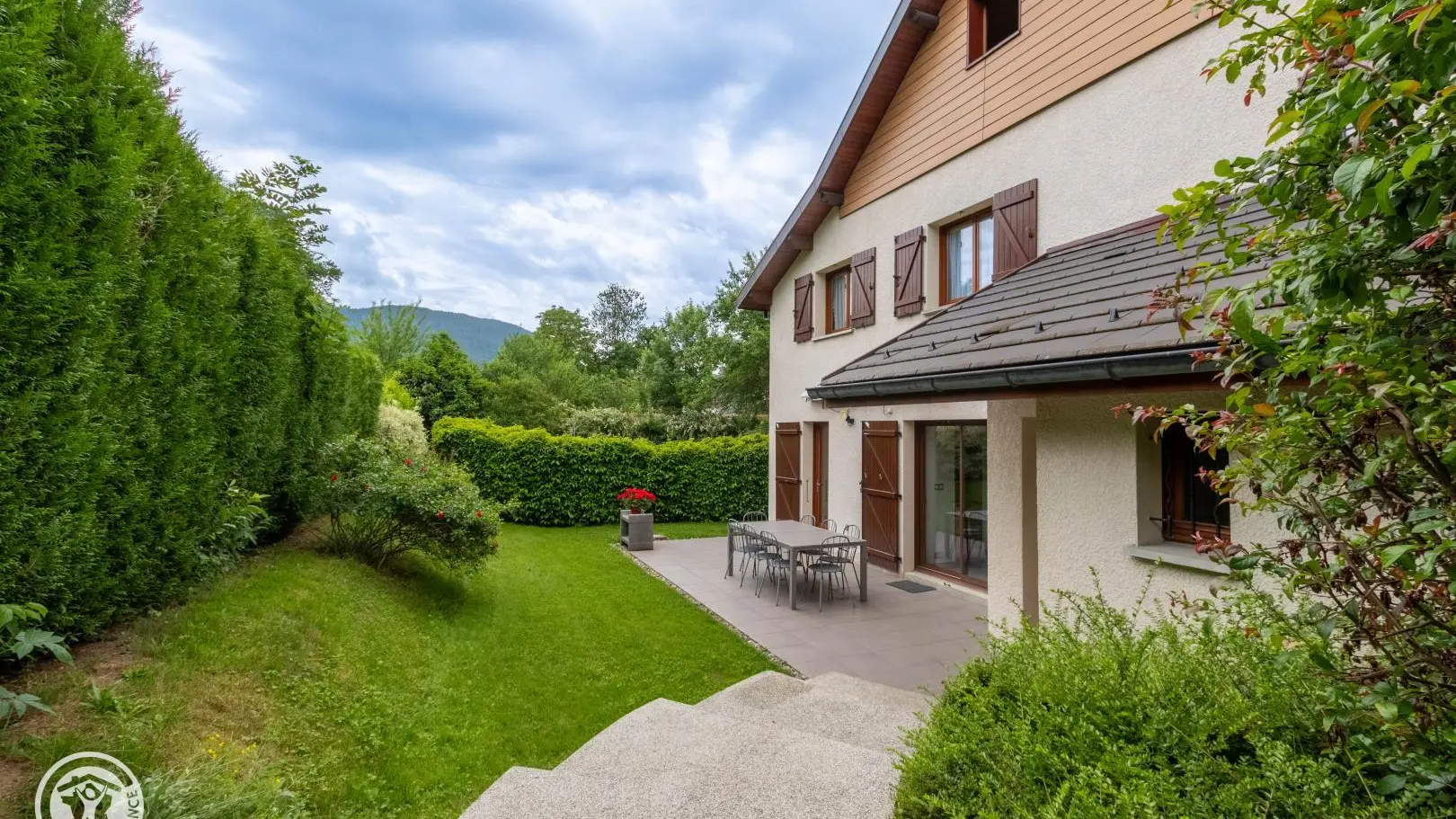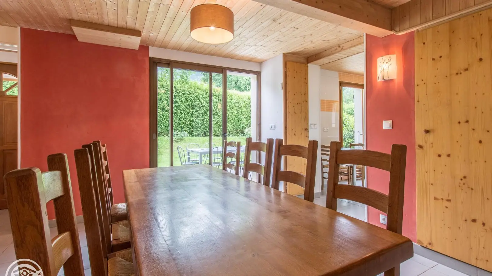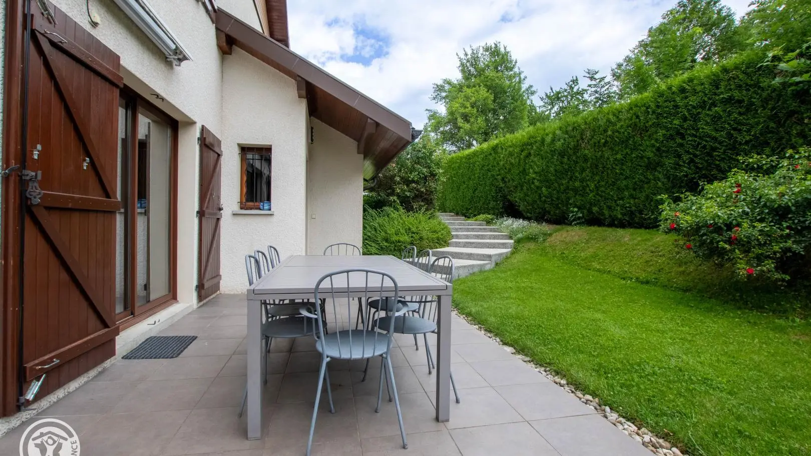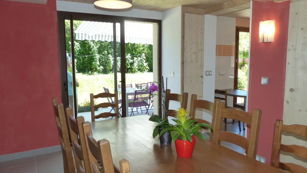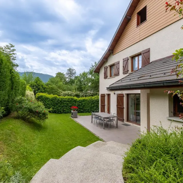 Dans secteur calme, gîte (113m²) aménagé sur 2 niveaux dans la maison des propriétaires. Entrée indépendante. Rez-de-chaussée: cuisine, séjour - salle à manger, accès à la belle terrasse et jardin, cellier, WC indépendant, Chambre 1 (2 lits 90, salle d'eau), Chambre 2 (2 lits 90, 2x90 superposés, salle d'eau, WC indépendant). A l'étage: Chambre 3 (1 lit 90, 2x90 superposés), Chambre 4 (2 lits 90), salle d'eau, WC indépendant. Les lits 90x200 (hors lits superposés) sont jumelables permettant de créer un lit double 180x200 dans chambres 1, 2 et 4. Si lits doubles, linge de lit 180cm fournis. Salon de jardin, transats, barbecue. Parking privé. Annecy, son lac, plages, casino, vieille-ville 9km. Ski: Aravis (La Clusaz, Grand-Bornand, Manigod) ou station familiale du Semnoz (piste, fond, raquette, parapente) 27km, ski de fond au Plateau des Glières 24km. Parapente au Col de la Forclaz 20km. Genève 40km. Nombreuses randos à proximité.