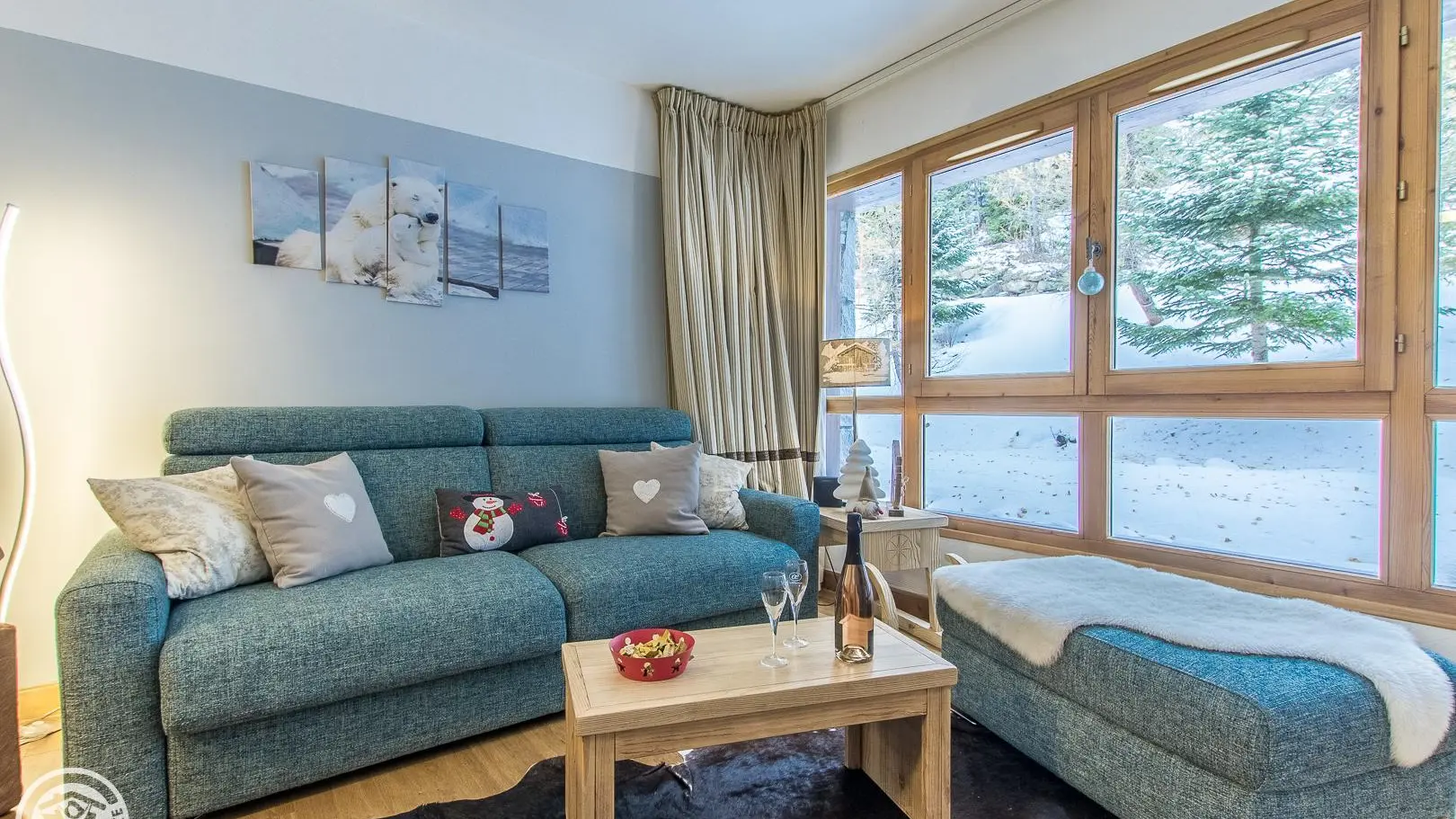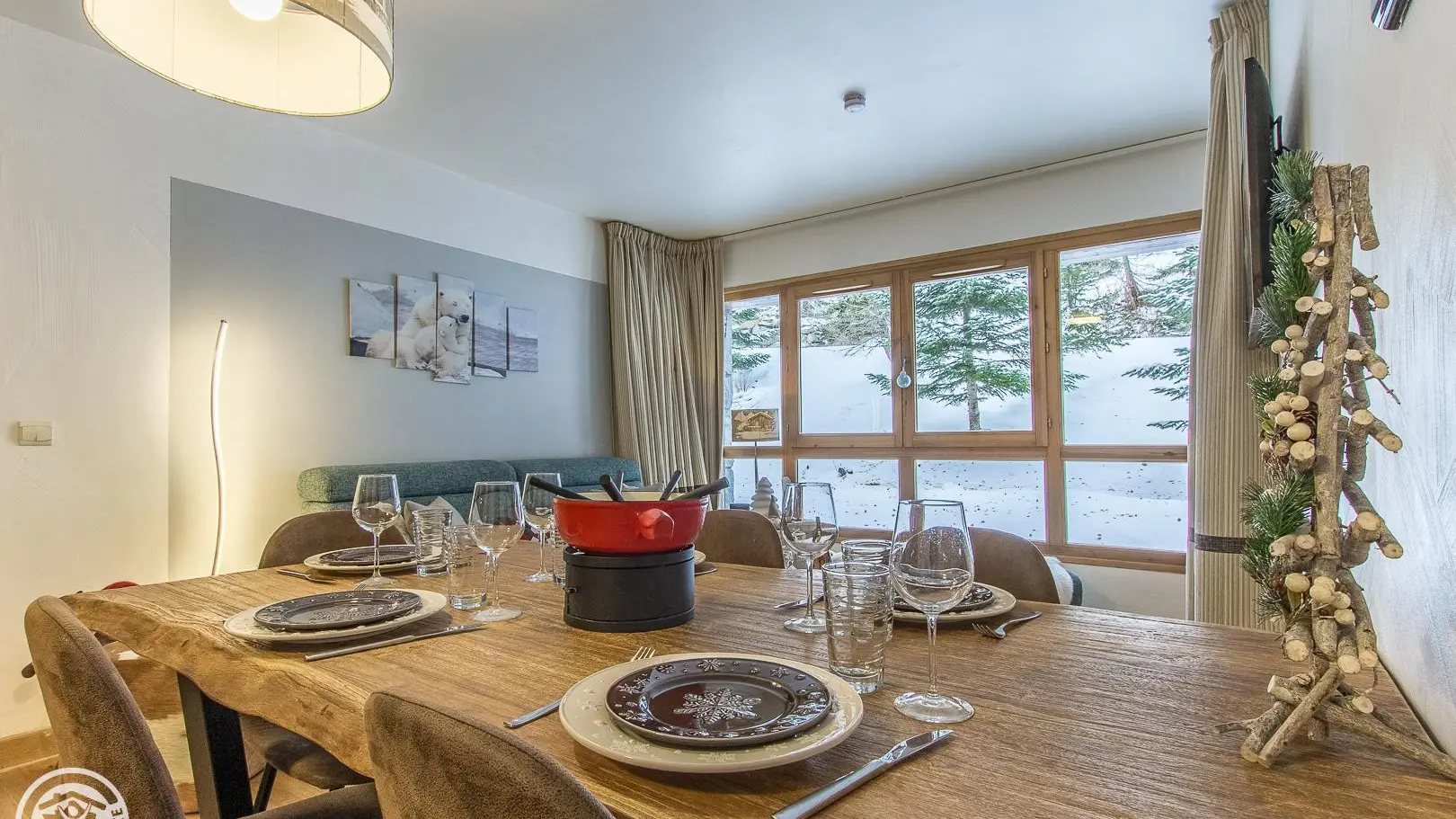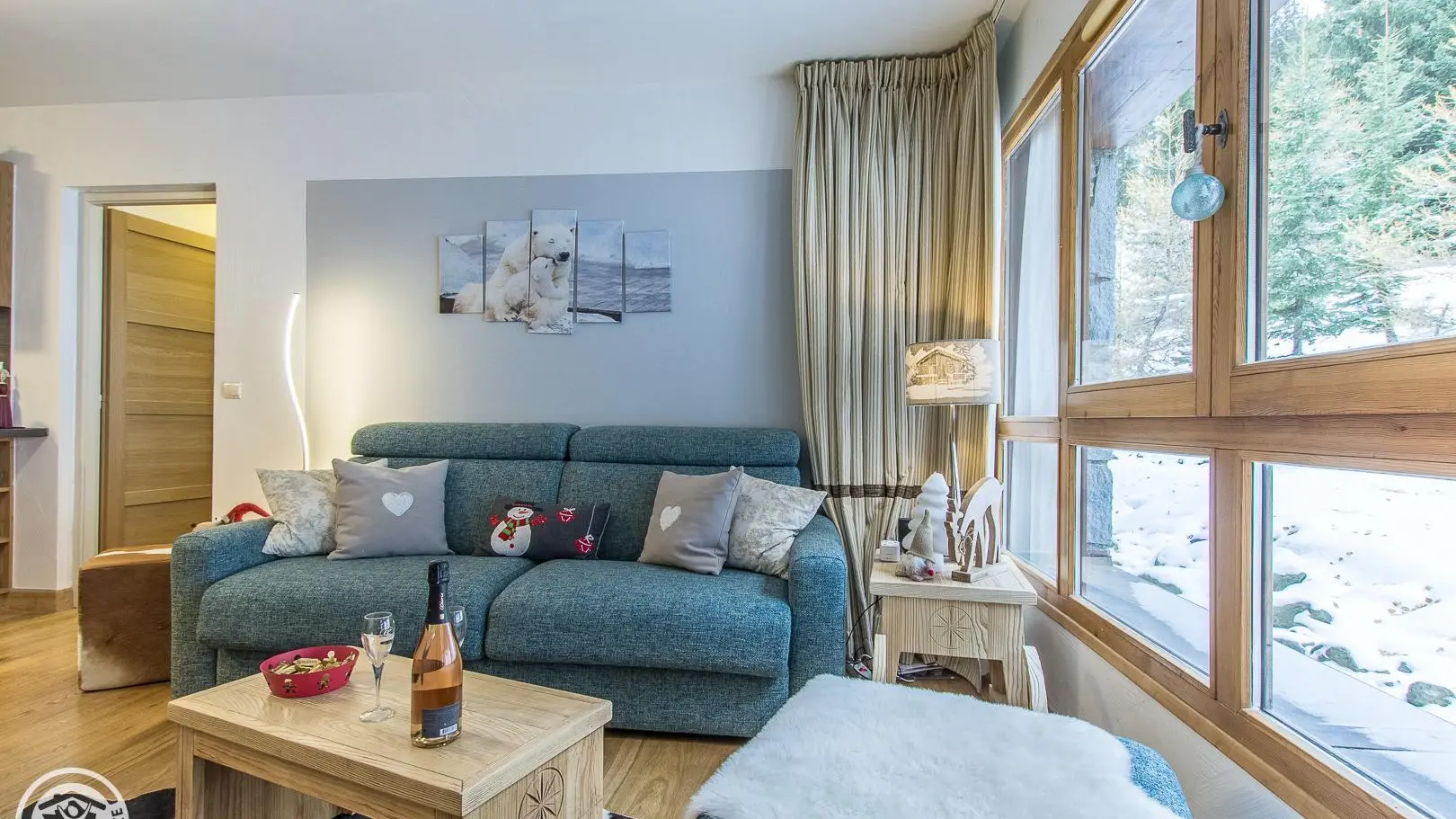 L'appartement est situé dans une résidence de tourisme de standing entourée de sapins, et nichée à 1750m d'altitude.