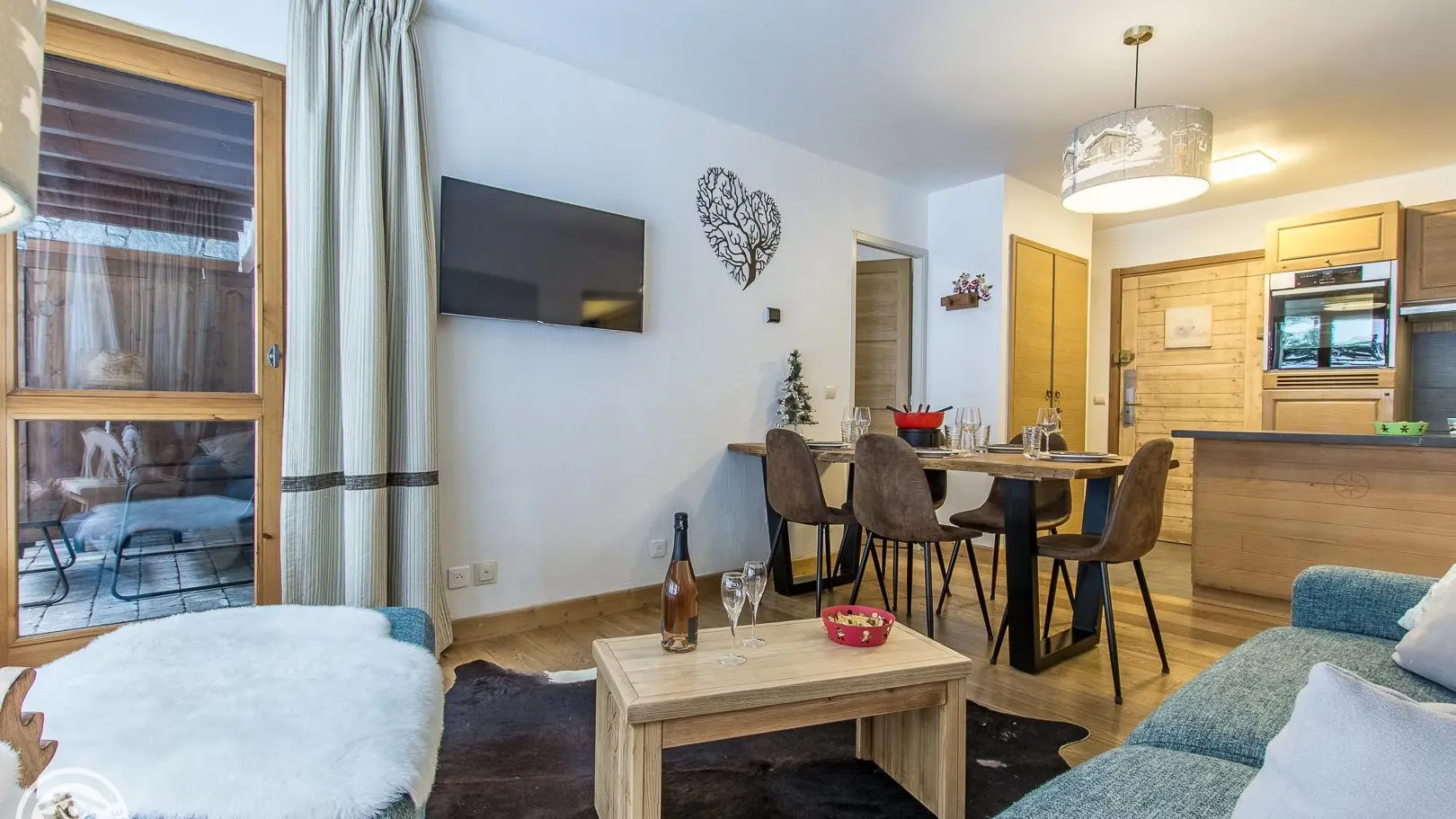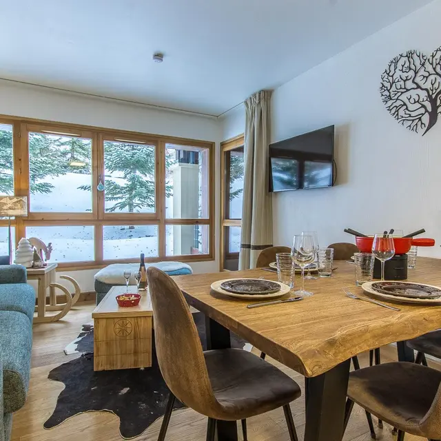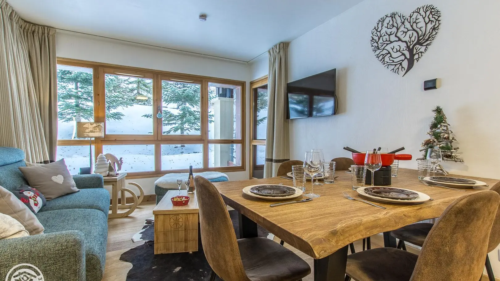 L'appartement est situé dans une résidence de tourisme de standing entourée de sapins, et nichée à 1750m d'altitude.