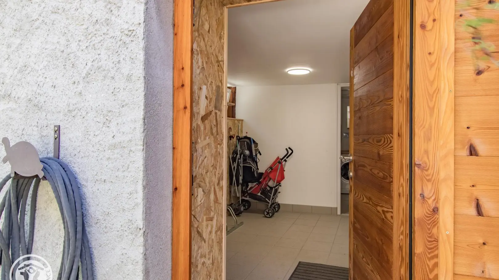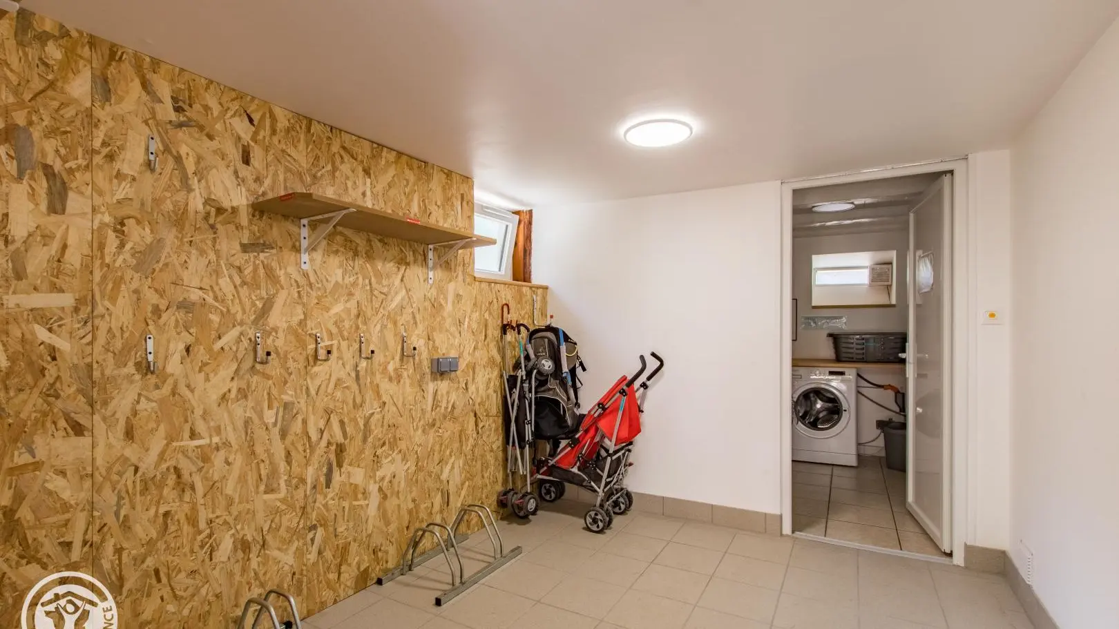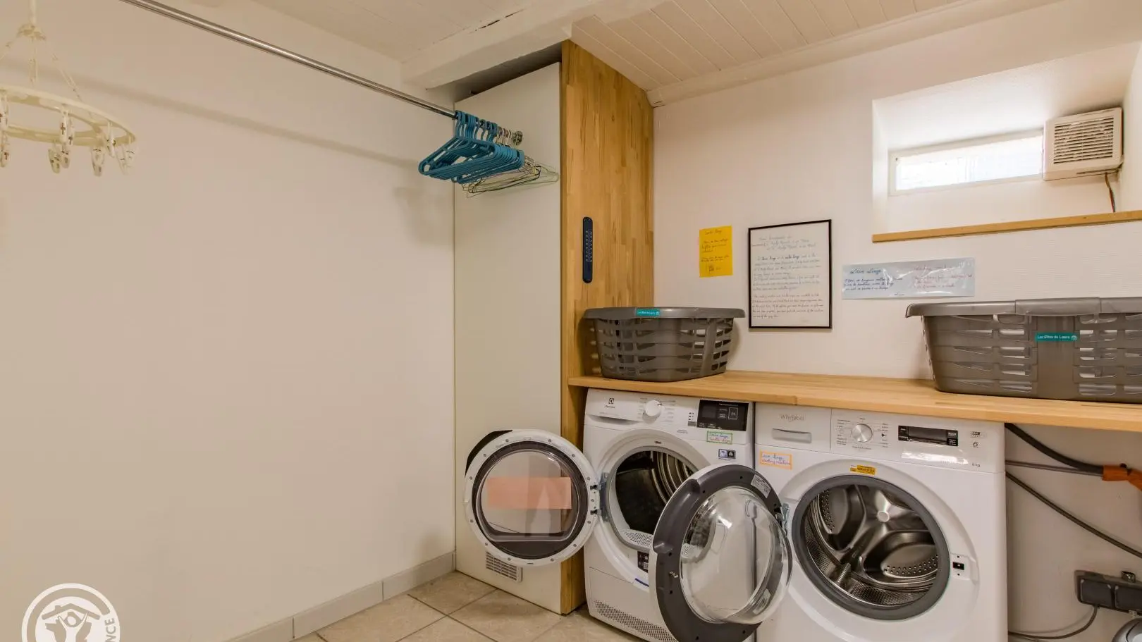Local commun aux 2 gîtes avec lave-linge et sèche-linge, rangement pour vélos, skis, etc.
