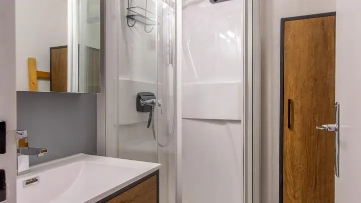 Dans l'appartement : coin cuisine intégré ouvert sur la partie séjour/salon (Tv, canapé convertible de type rapido offrant un confortable couchage 140x190cm, volets roulants), salle d'eau (cabine douche), wc indépendant.