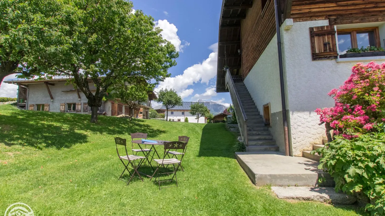 Jardin commun avec mobilier de jardin et barbecue (privatifs). Stationnement dans la cour commune, ou derrière la maison. Centre village de Megève et Palais des Sports à 3,5km (piscine, patinoire, bien-être, tennis...). Centre de Combloux et plan d'eau biotope à 2,5km (baignade estivale face au Mont-Blanc).
