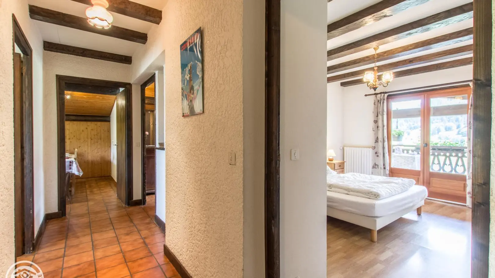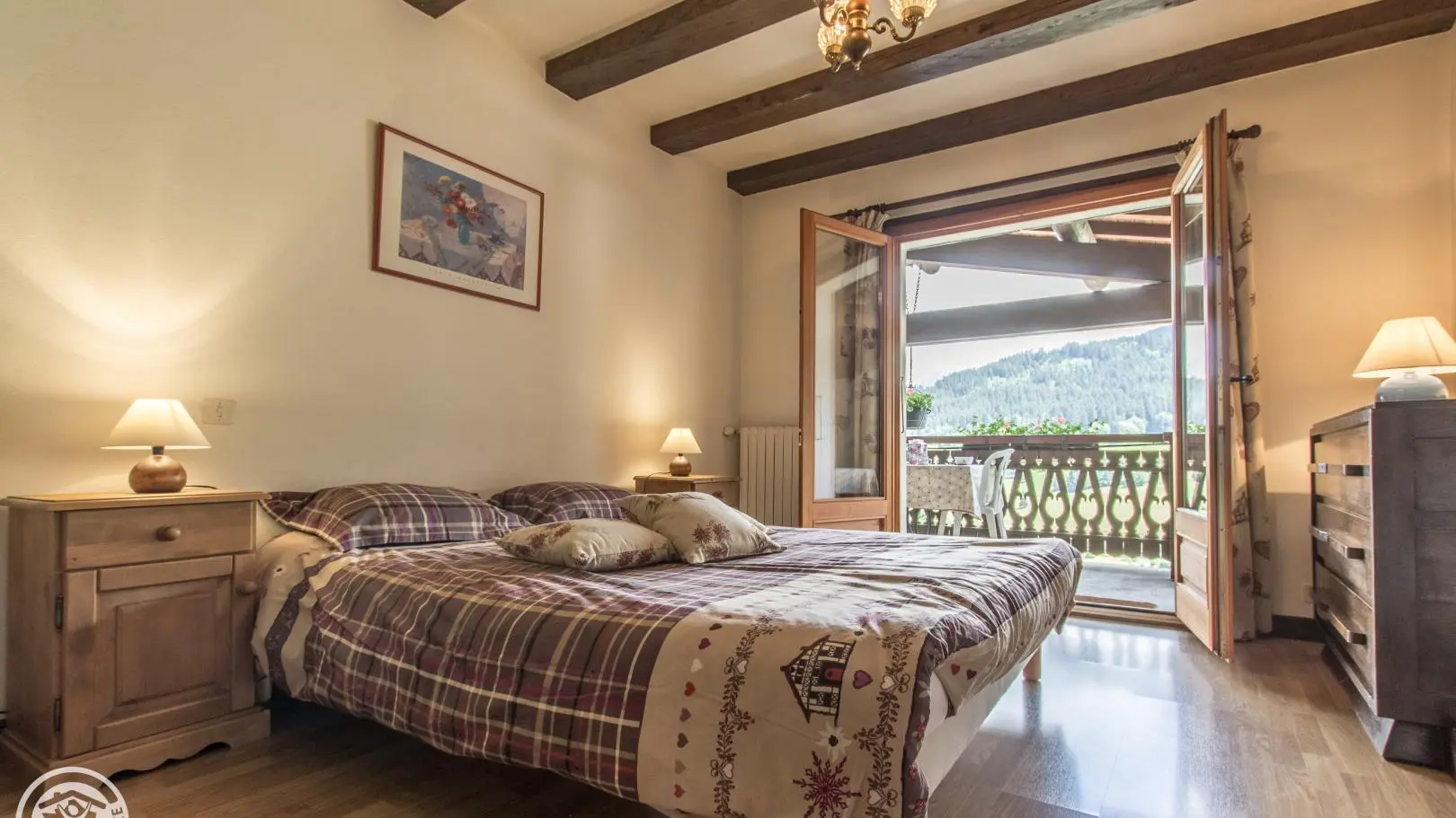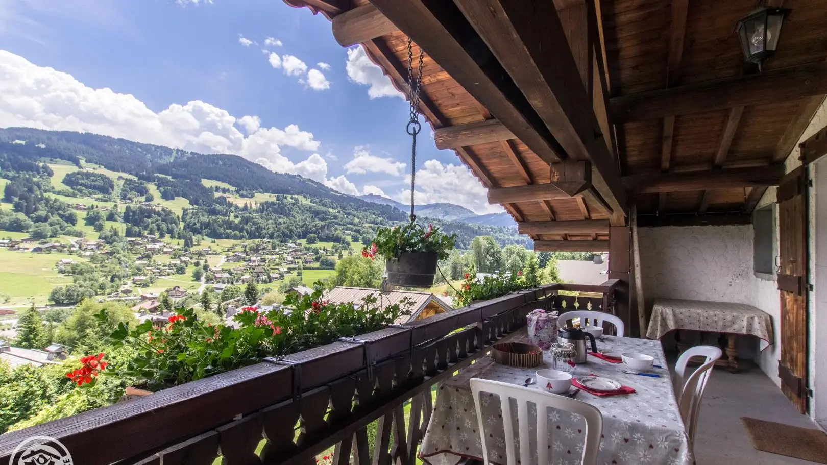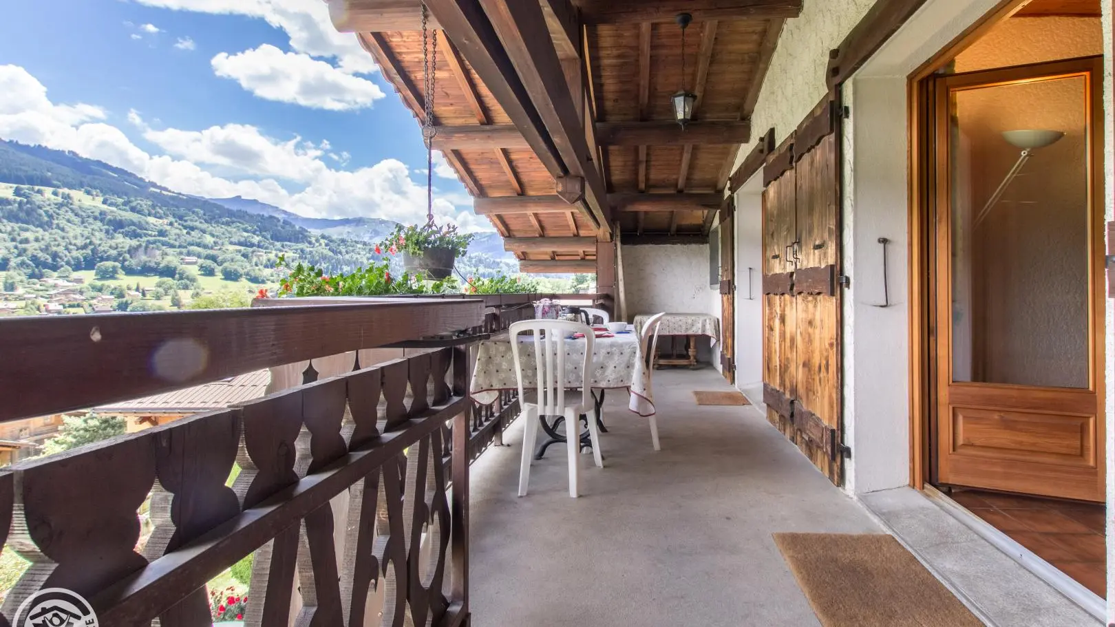 Très bel espace balcon/terrasse (table et chaises), accessible depuis la chambre et le séjour, et offrant une vue à 180° sur le Mont-Blanc et les montagnes environnantes. Internet wifi. Possibilité de louer les draps et le ligne de toilette. Local à skis.