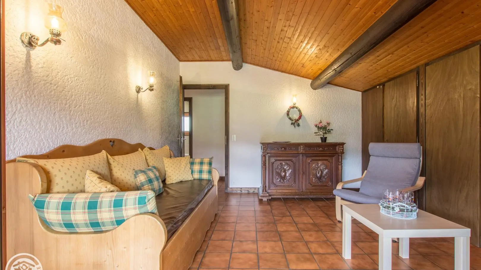 Appartement de 60m2 aménagé au 2ème étage d'une maison de type chalet comprenant également un autre gîte (au rez-de-chaussée), ainsi qu'un logement propriétaire (au 1er étage).