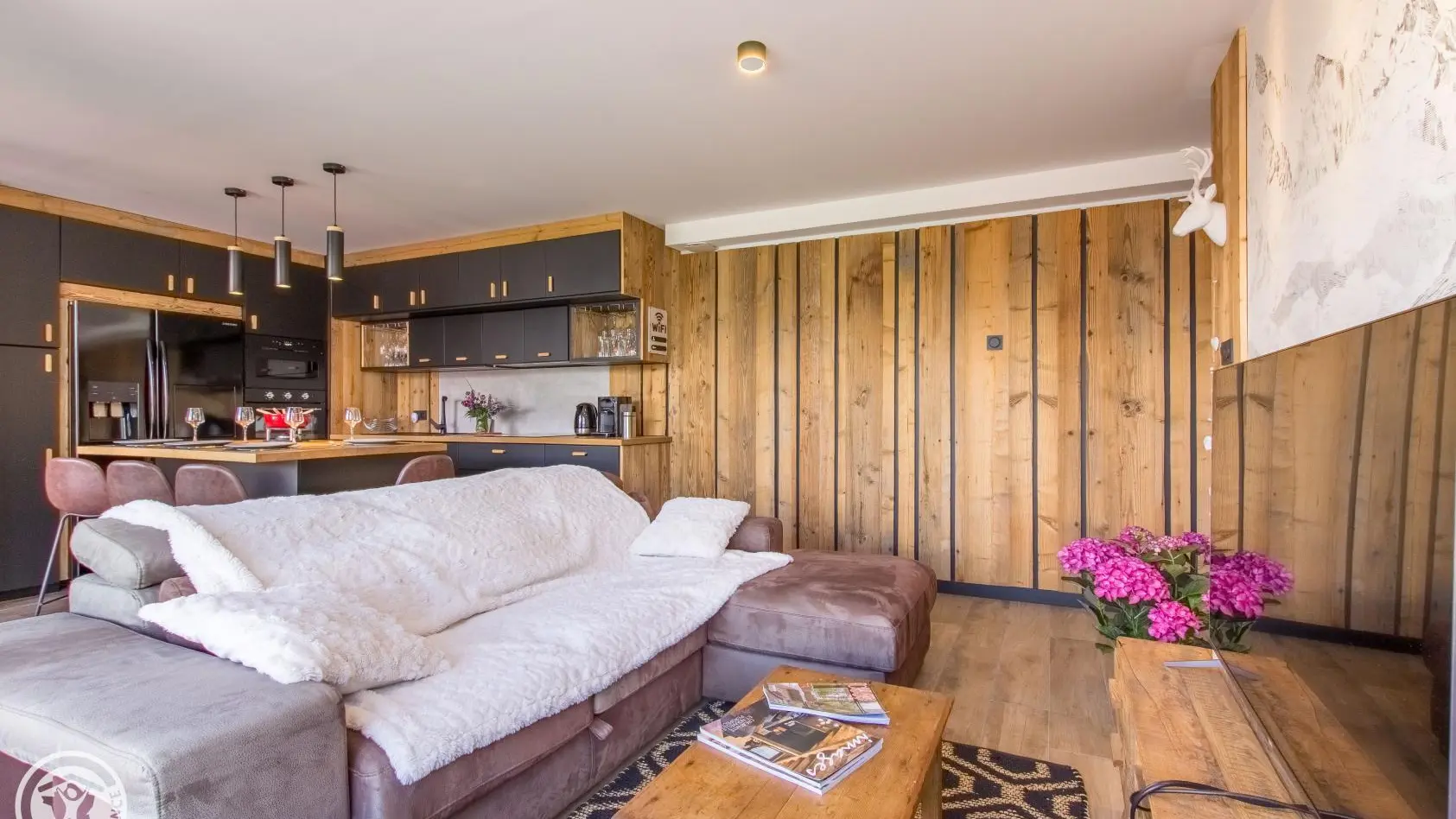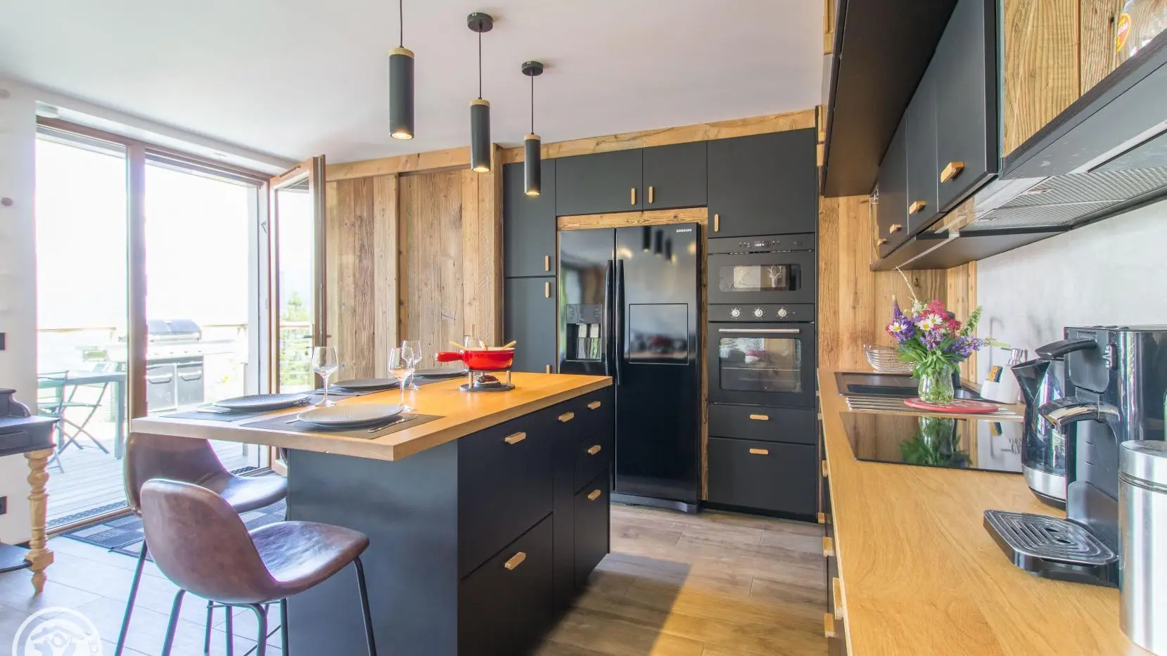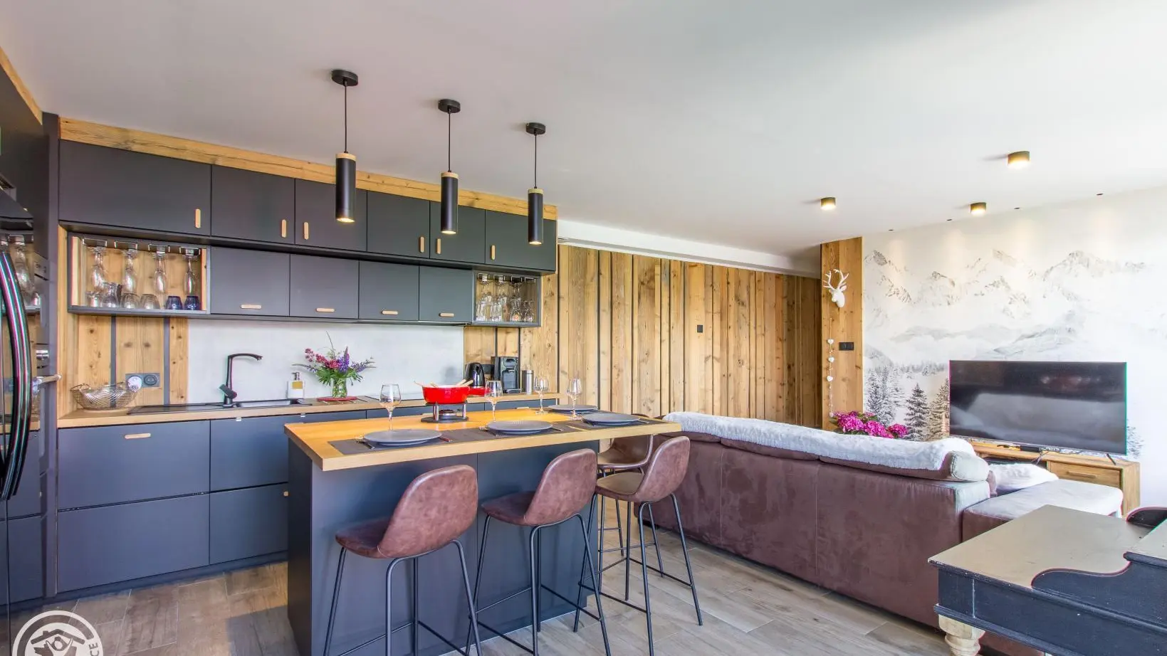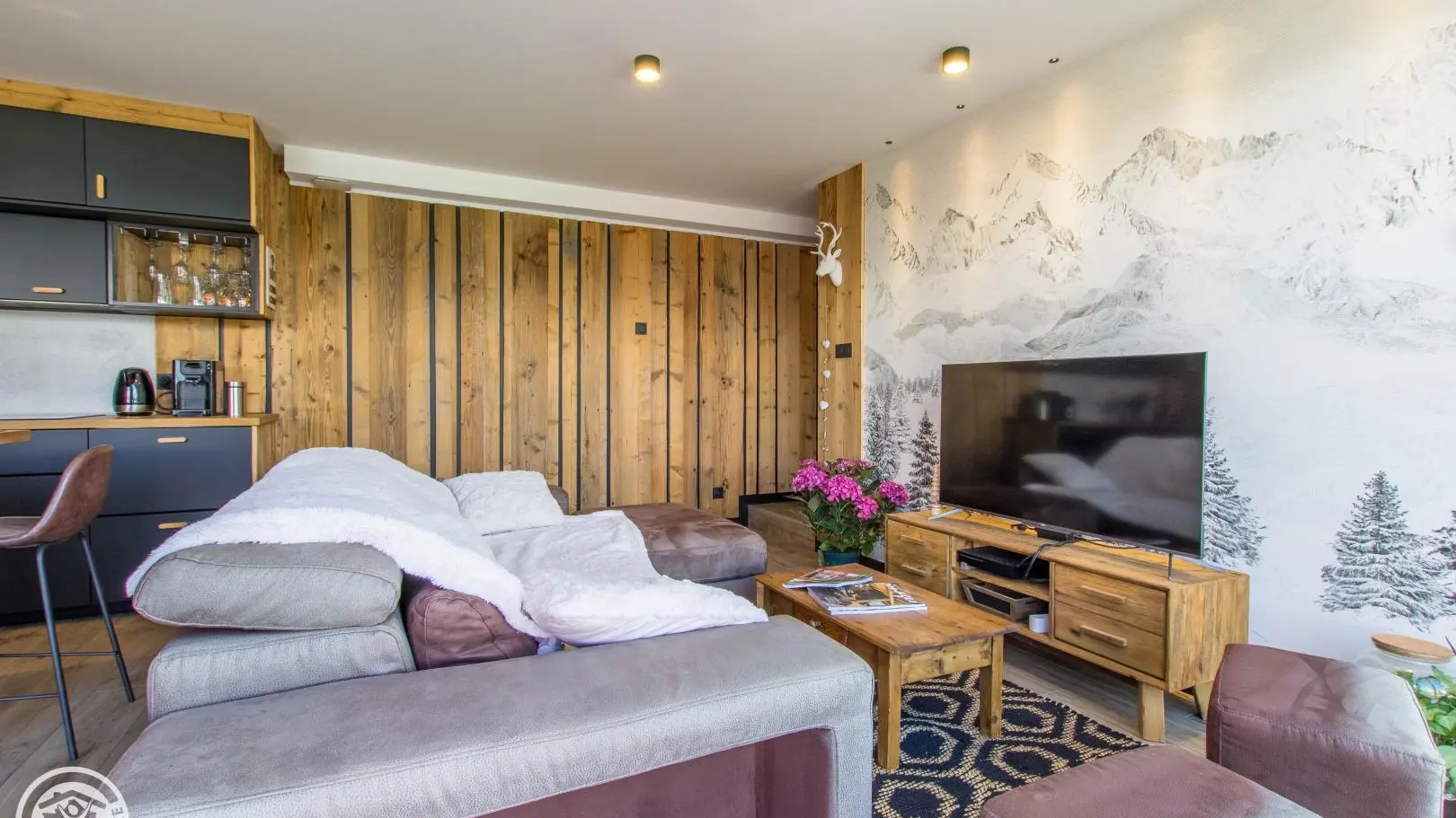Dans un cadre naturel d'exception, face à la chaîne des Aravis : gîte indépendant de 55m2 aménagé sur un seul et même niveau, au sein d'une ancienne remise entièrement rénovée dans très bel esprit chalet.