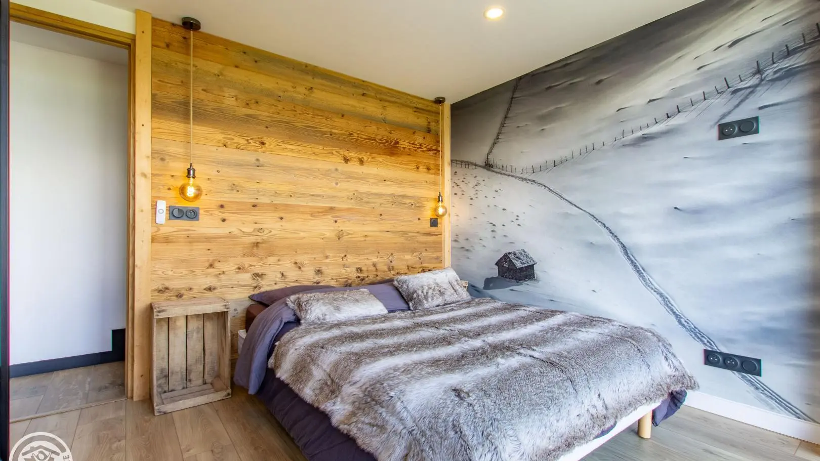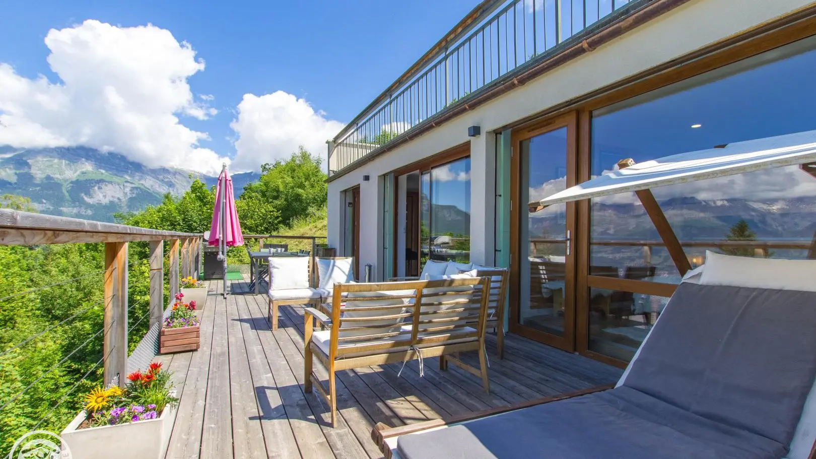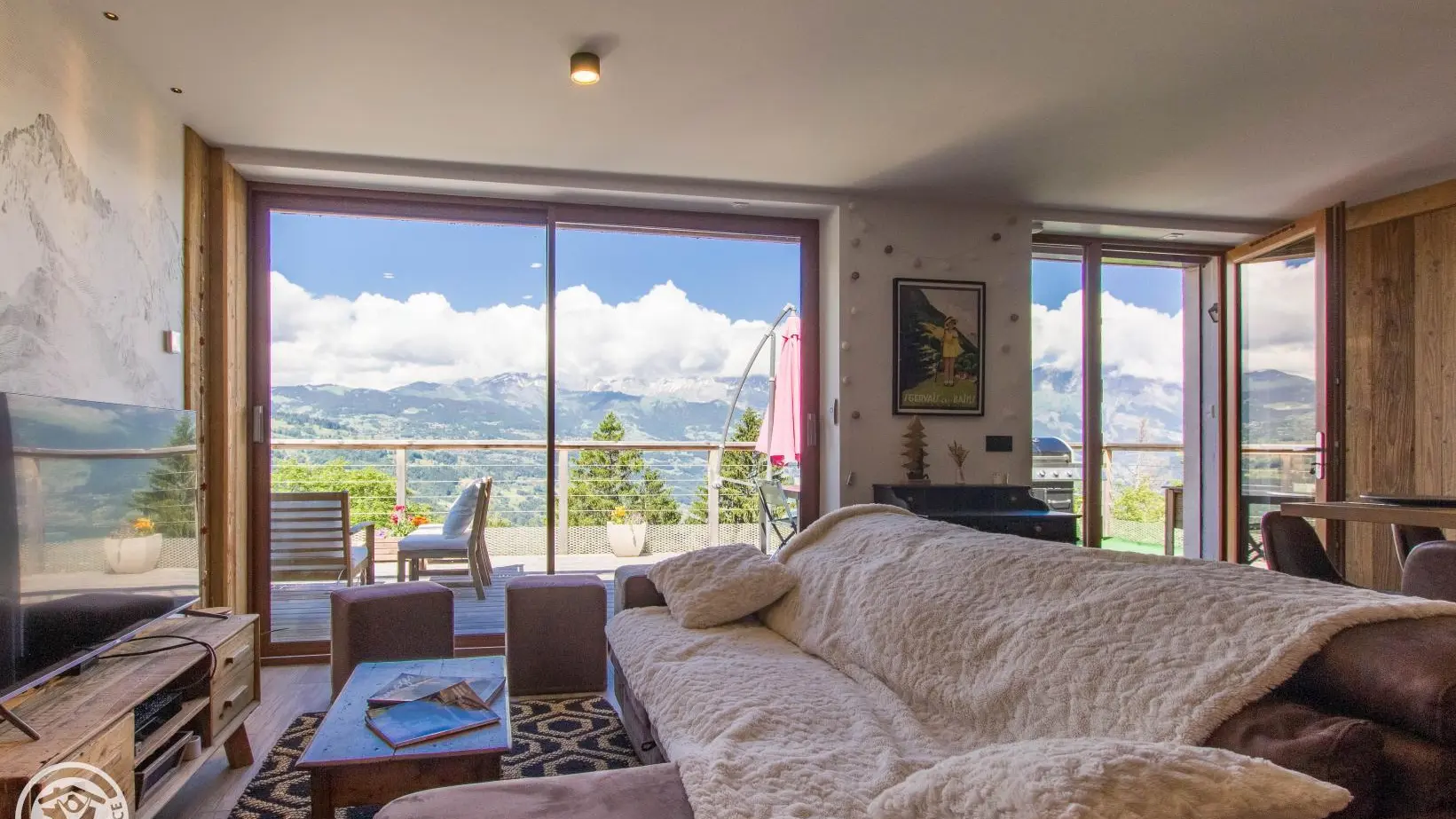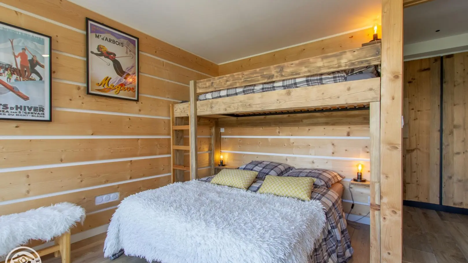 Aménagé dans la pente de la montagne, le gîte surplombe la vallée, et offre une vue panormique exceptionelle sur la chaîne des Aravis et la cime des arbres. Le gîte est composé d’une belle pièce à vivre avec cuisine intégrée ouverte sur la partie séjour/salon (Tv, canapé), chambre 1 (1 lit 140x190cm), chambre 2 (1 lit 140x190cm + 1 lit 90x190cm superposé), salle d'eau (douche), wc indépendant.