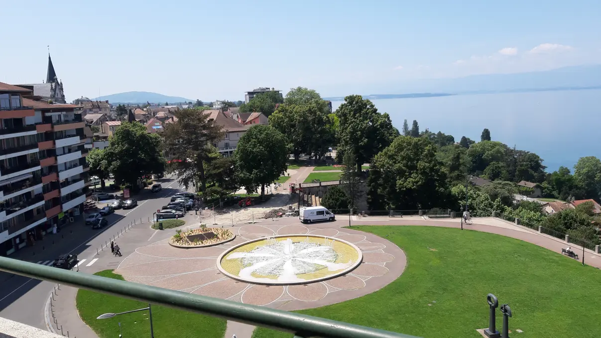 Situé en centre ville, beau 2/3 pièces traversant de 70m² avec balcon et vue panoramique sur lac et les montagnes. Proche de tous commerces, 15 min à pied des thermes et 10 min du port de plaisance . Idéal pour cure thermale. Parking public à 20 mètres