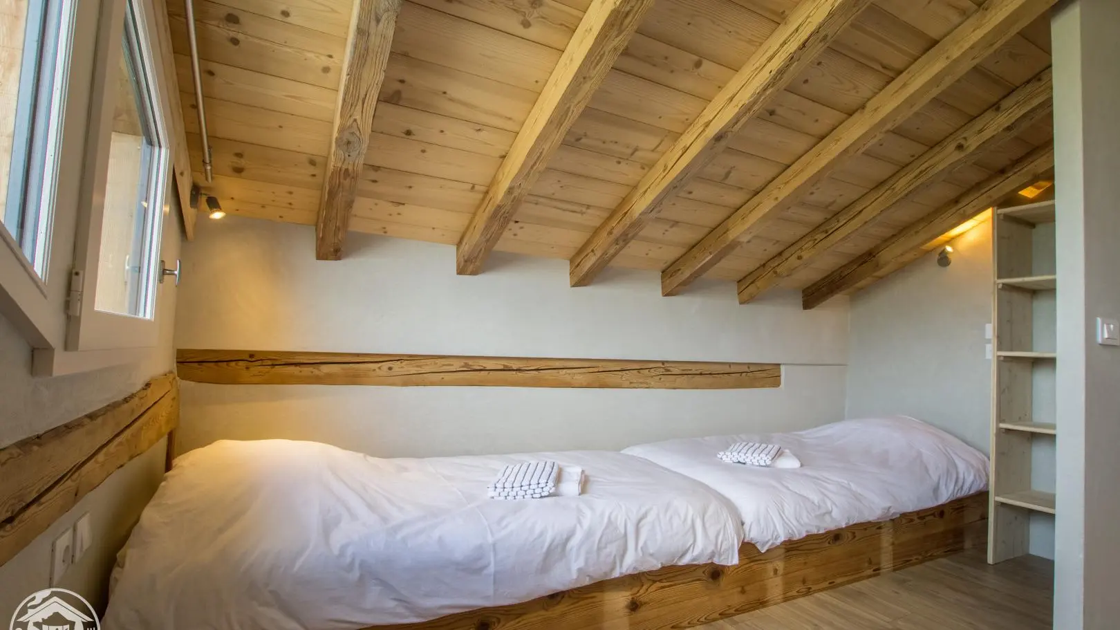 Au 2ème: chambre avec 2 lits 80x200cm (jumelables en lit 160cm) + 2 lits 90x190cm. Tout est inclus: draps, serviettes, et ménage de fin de séjour. Internet wifi.