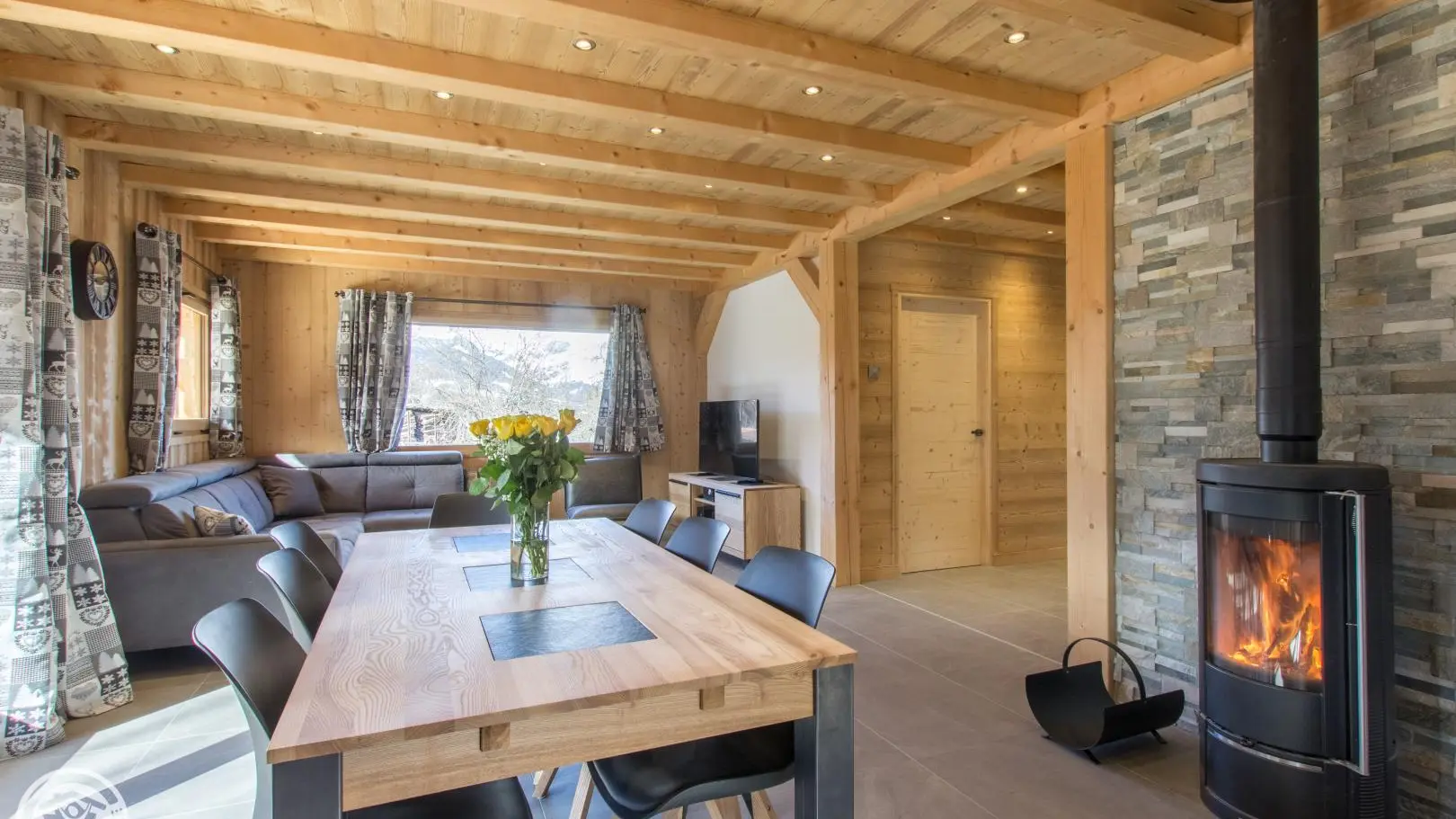 Les draps sont inclus, et les lits faits à votre arrivée. Vaste garage double, et possibilité de stationner à côté du chalet.