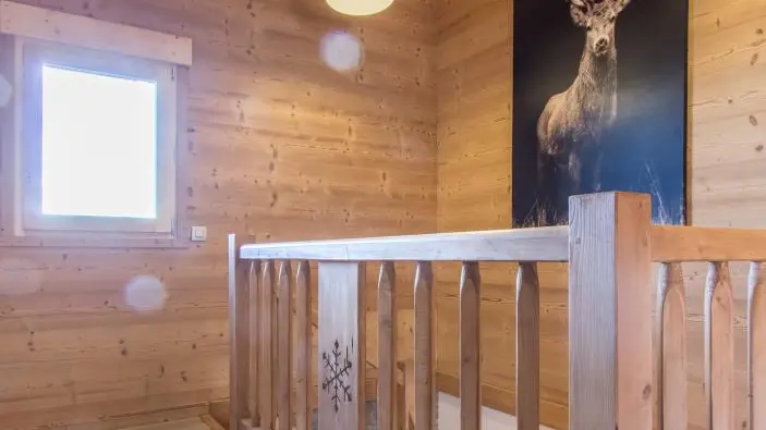 L'escalier menant à l'étage comporte des marches étroites ainsi qu'un important limon central bois.