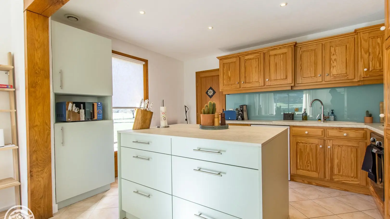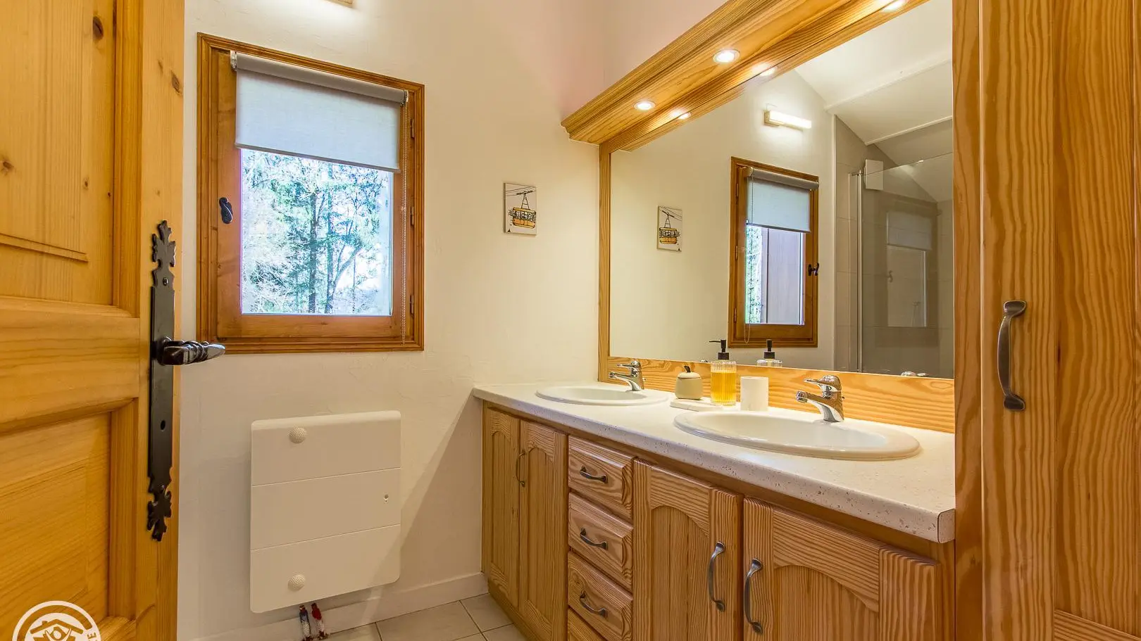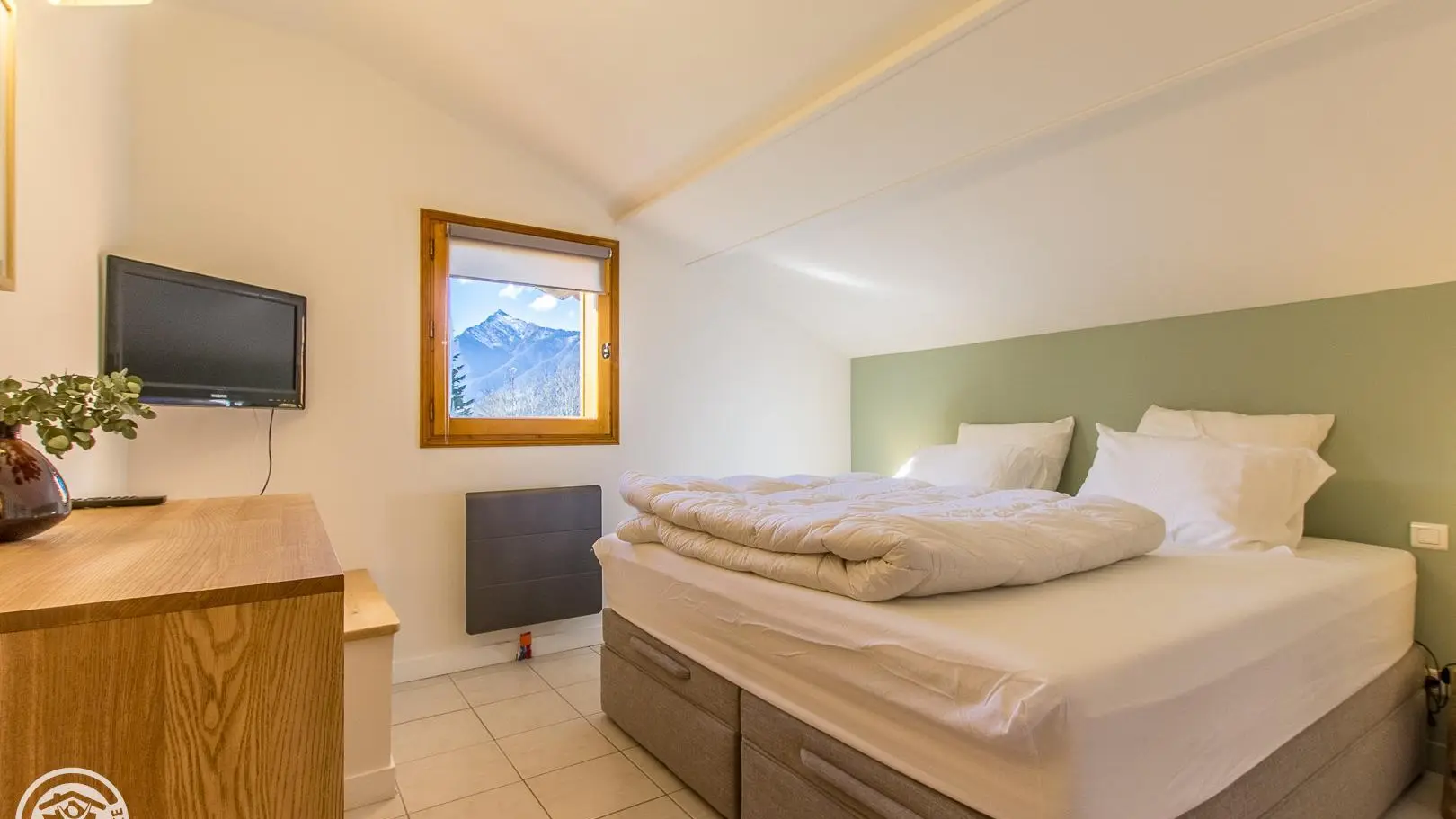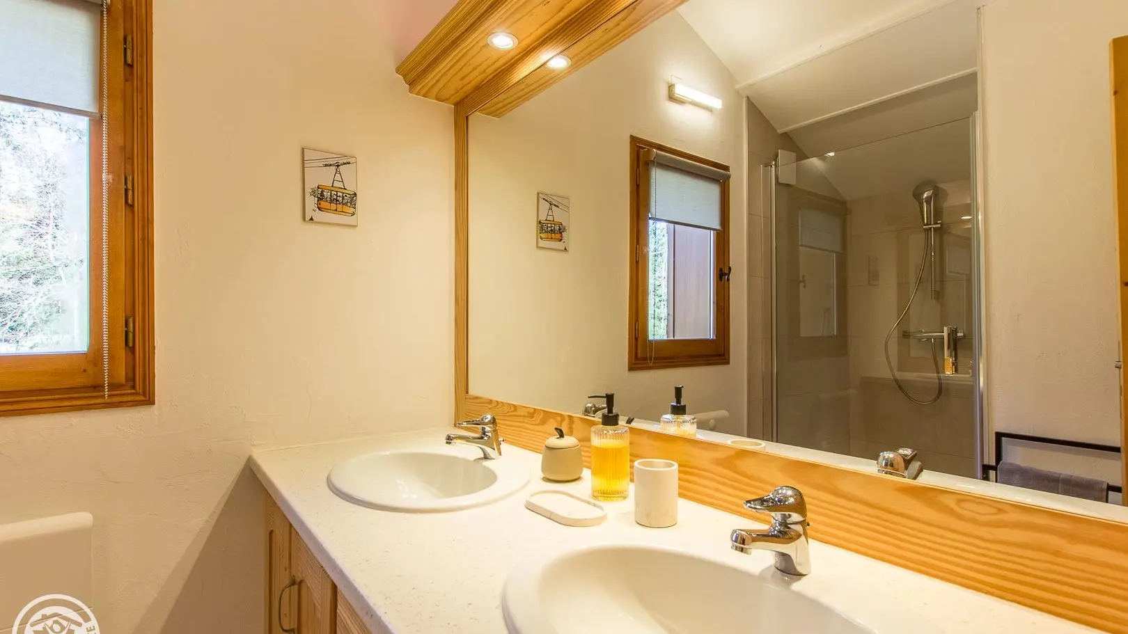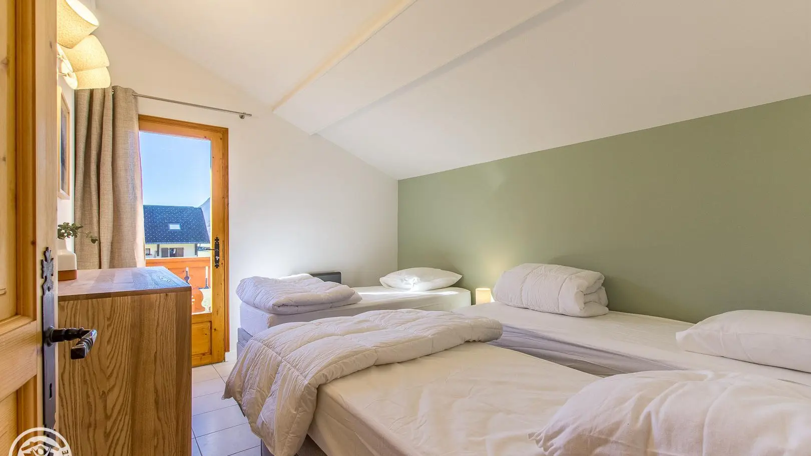 Au 1/2 niveau supérieur : salle de bains (baignoire d'angle), chambre 1 (1 lit grande dimension 180x200cm, Tv). Au 1er étage : chambres 2 et 3 avec pour chacune : 3 lits 90x200cm, chambre 4 (1 lit grande dimension 180x200cm, Tv), salle d'eau (douche), wc indépendant.