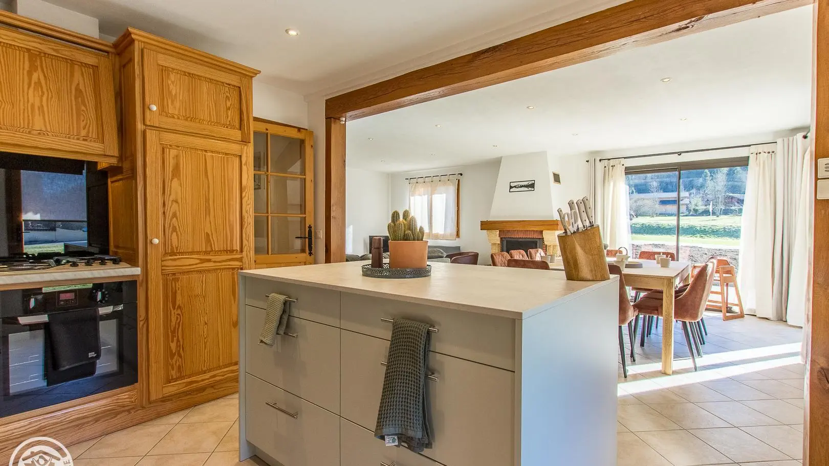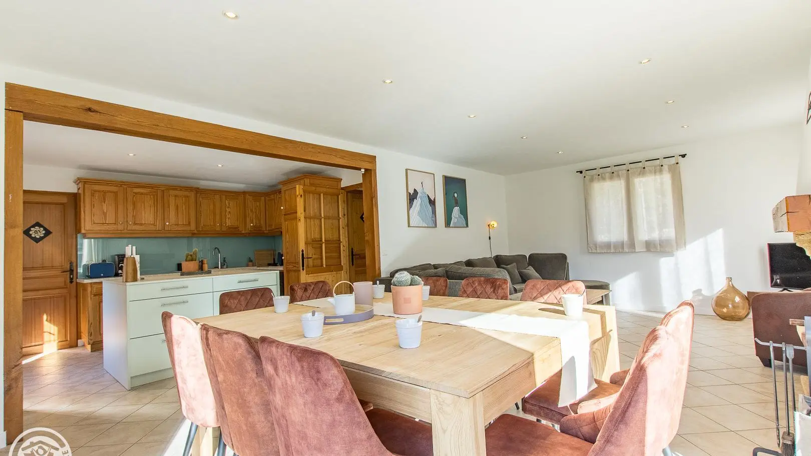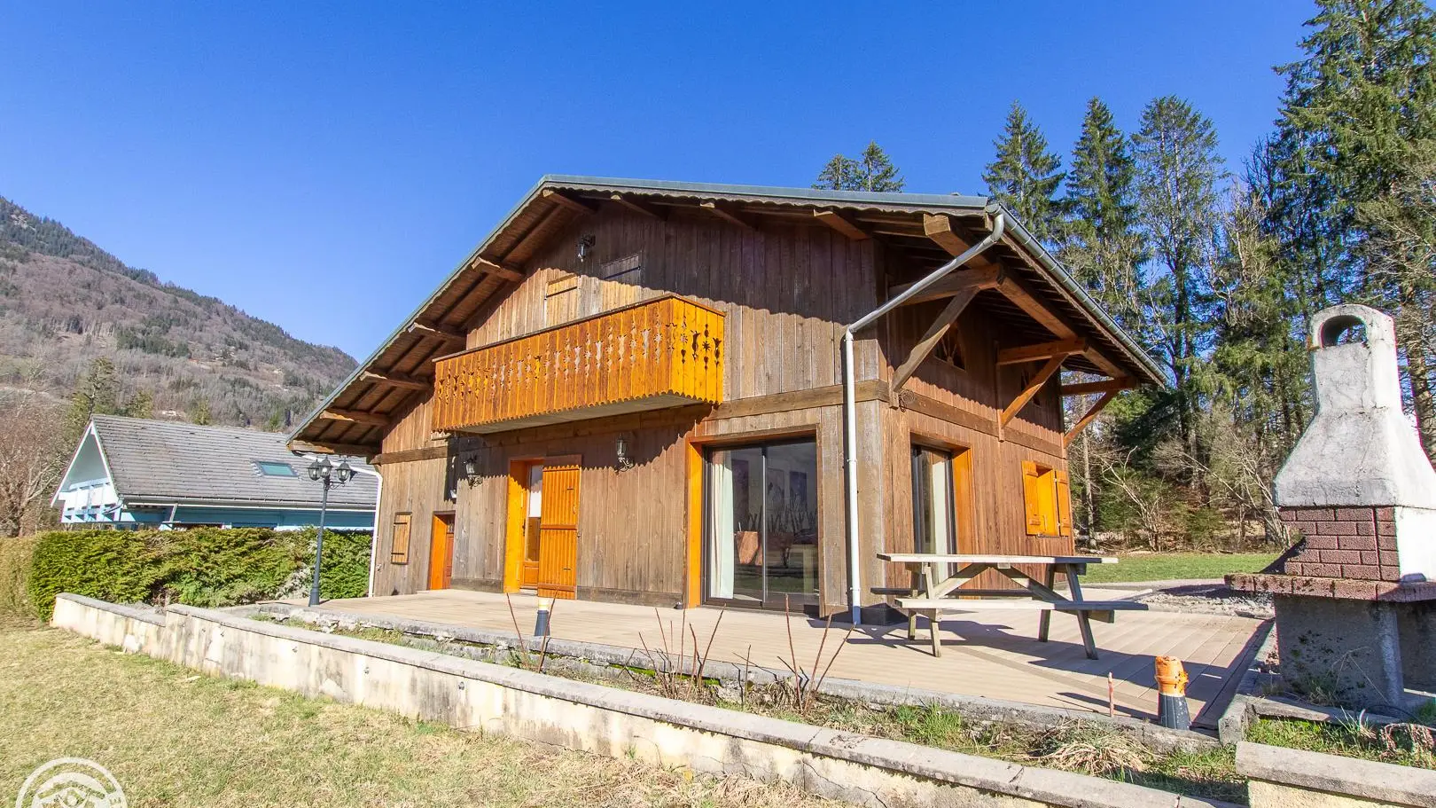 Chalet individuel de 110m2 aménagé sur 2 niveaux, idéalement situé à l'entrée de Morillon, et proximité de la télécabine et de la base de loisirs du Lac Bleu. Au rez-de-chaussée : hall d'entrée, coin cuisine intégré ouvert sur la partie séjour/salon (cheminée, Tv, canapé), wc indépendant.
