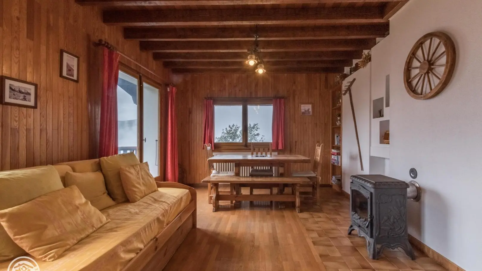 Gîte de 61 m2. 1er étage: Cuisine, séjour (1 lit gigogne 2x90cm + 1 lit 90cm), chambre (1 lit 140). S.d'eau, wc. Chauf. central. Balcon, terrain (s.d.j), belle vue montagnes. Loc° draps et linge de toilette, linge de maison fourni. Séjour 3 sem. -10%. Hiver/site nordique : ski de fond/skating (école), pistes luge/raquettes, chiens de traineaux. Eté/alpages: rando., VTT, murs d'escalade, spéléo, visite des fermes (vente de produits). Restaurants, Monument de la résistance, Maison du Plateau (infos, locat° matériel).