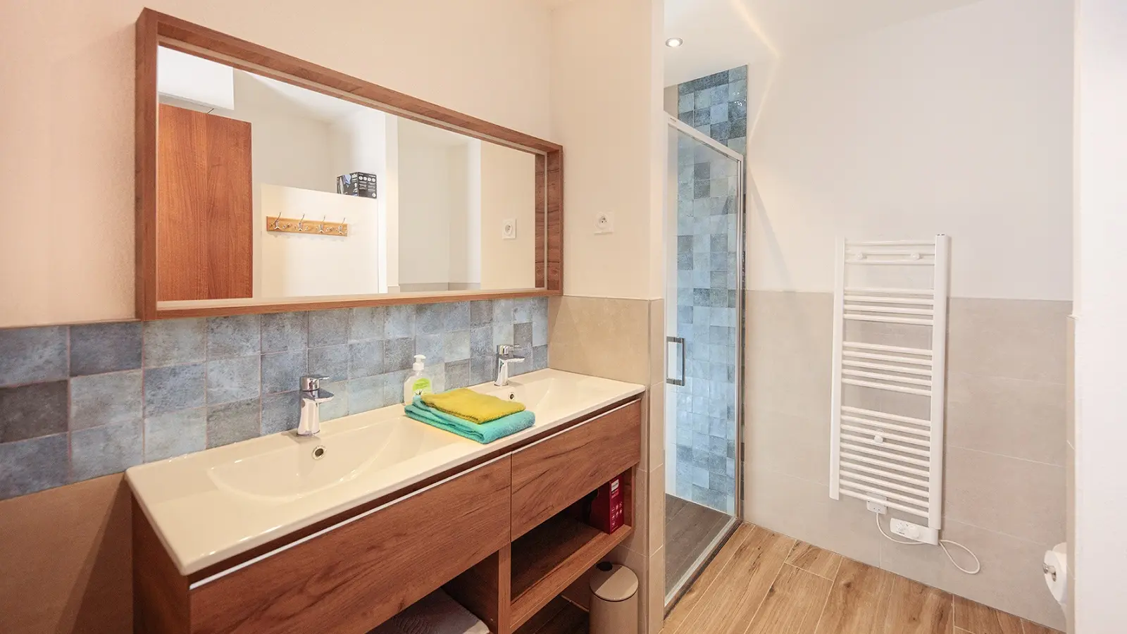 - 1 salle de bain avec lavabo double vasque / douche / wc