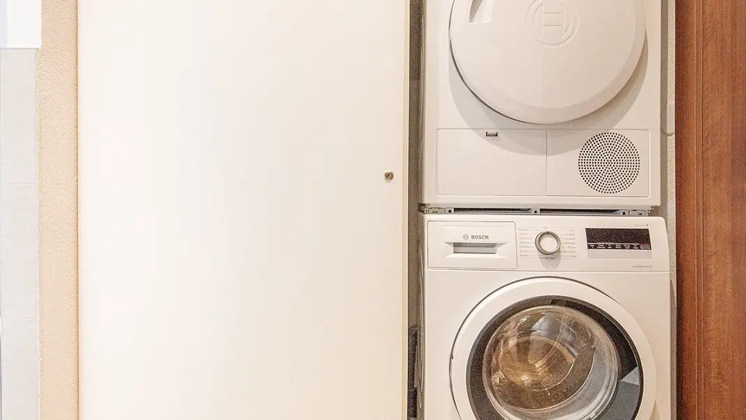 Plaques de cuisson à induction, four électrique à pyrolyse, four à micro-ondes, lave-vaisselle, réfrigérateur / congélateur, lave-linge, sèche-linge, TV grand écran plat Led.