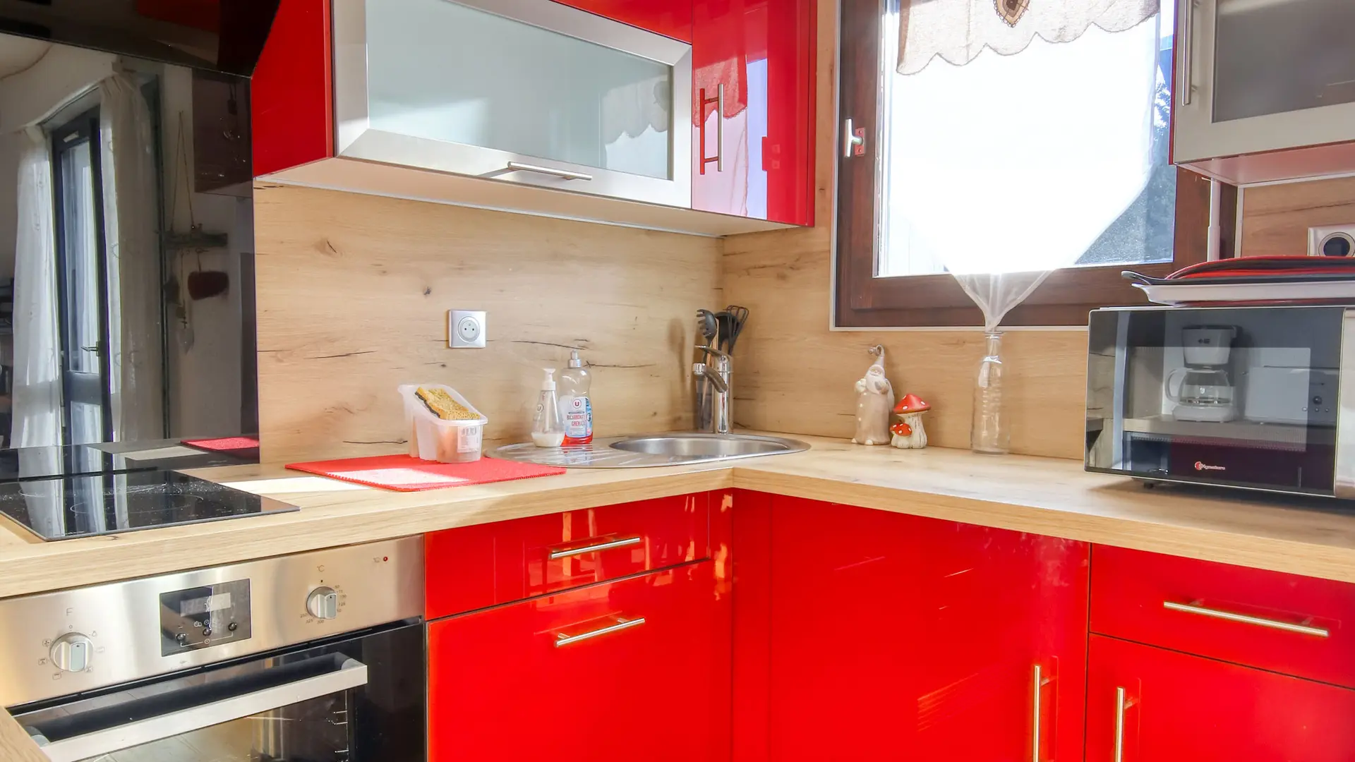Coin cuisine dans le séjour.4 feux électriques. Four. Micro-ondes. Frigo avec partie conservateur.
