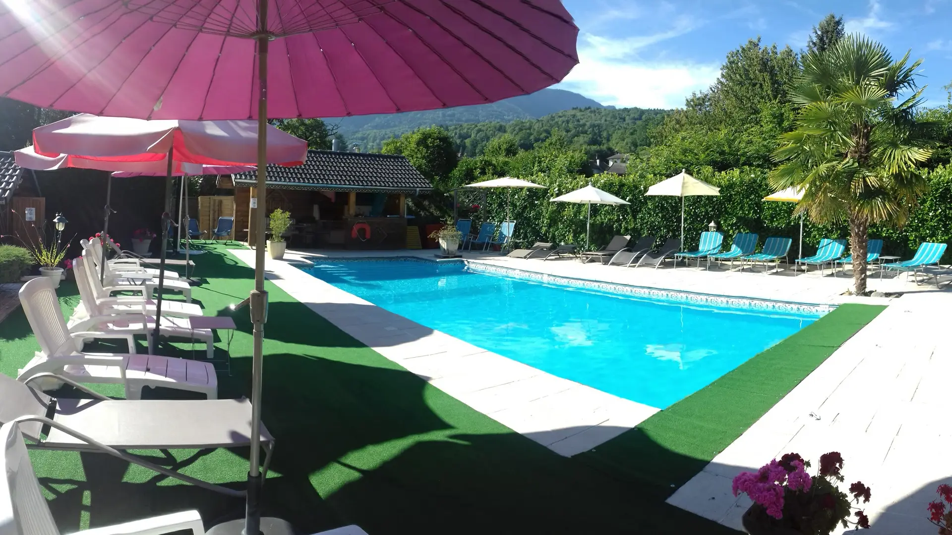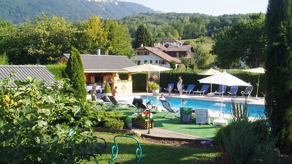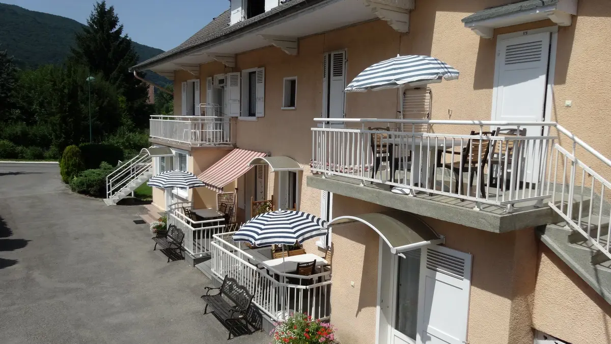 Petite résidence de vacances avec piscine, 14 appartements, proche lac. Location vélos sur place.